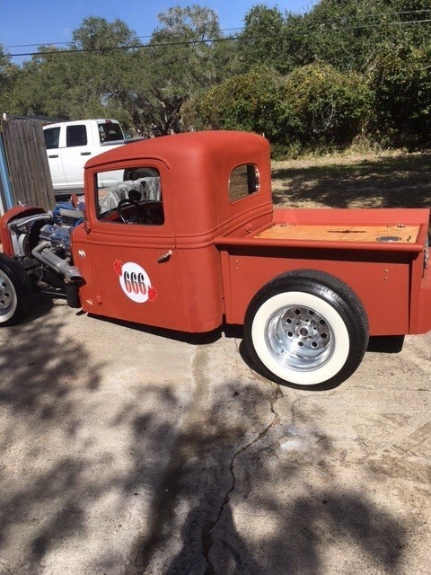 1935 International PickupToyota FrameDisc brakes front and rearTires like newWeld chrome rims350 cubic inch/.30 over cam with650 Holly CarbVortex HeadsNew MirrorsNew TechNew Fuel GaugeNew Electric Fuel PumpNew BatteryLots of new chromeNew Fan and RadiatorNew Horn, Wipers, Turn signalsDecals on door peel off inside and outDual mufflers or straight pipes350 Turbo TransmissionAll new insulation in cabNew bomber seatsPush button startQuick disconnect steeringPhone adapter plugRoll up glass in the doors3/4 maple deck lid bi-fold