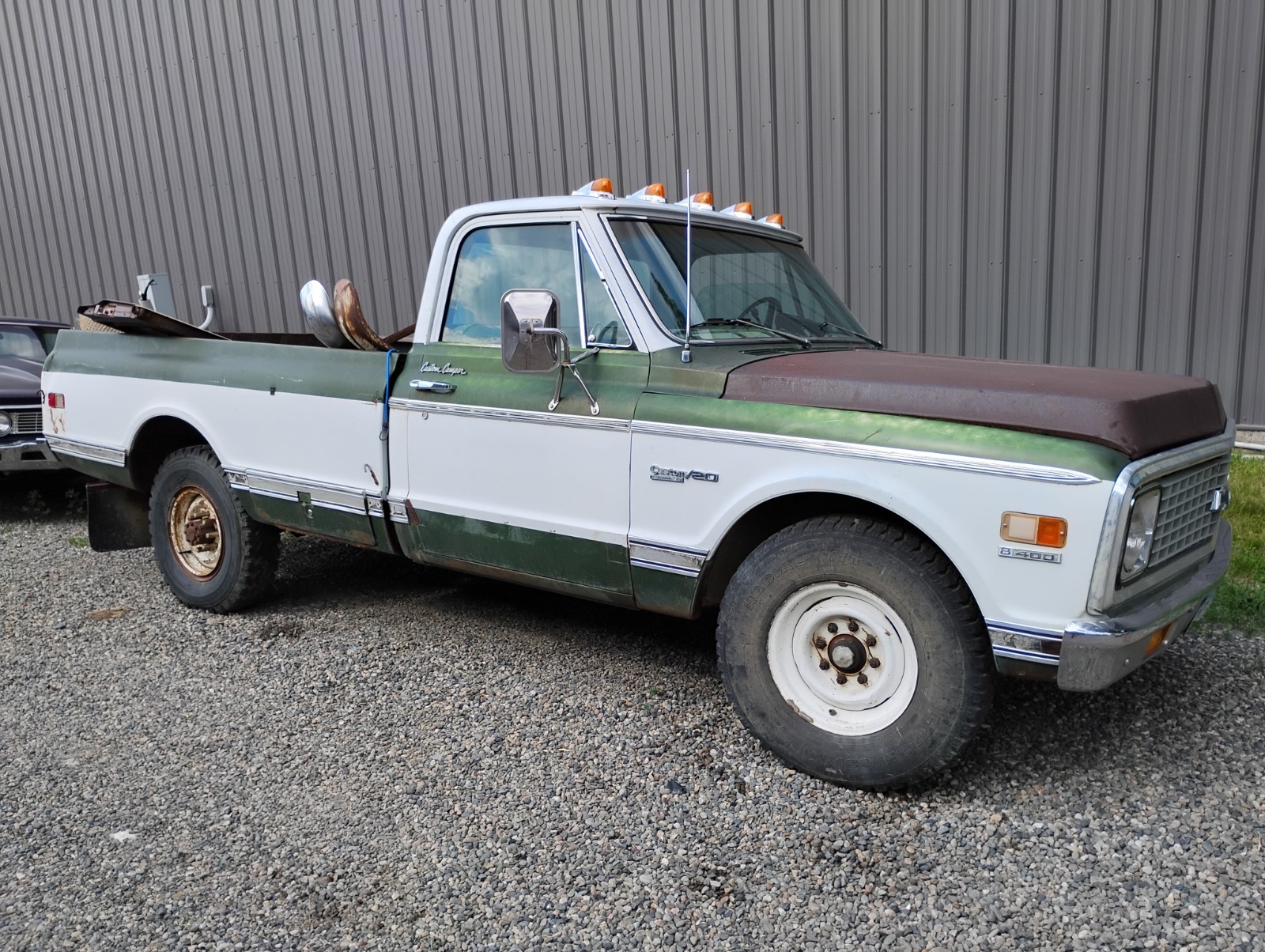 Top of the line pick up for 1972; Custom Deluxe Custom Camper. Good original condition with 400 big block automatic two wheel drive.Power steering, air condition and front disc brakes. Runs and drive well.