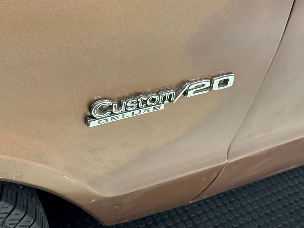And here's where sleeper status comes in to play as this Burnished Gold single stage paint shows what many consider desirable patina. The unassuming color is not even with blotches of a darker brown in areas, awesomely rough but just clean enough not to upset the HOA. Dark tinted windows add an air of coolness to the long lines and 16-inch wheels painted white provide nice contrast and are wrapped in LT rated tires. An eggcrate grille is fully intact between the round LED headlights in square bezels and the modest rectangle tail lights are the highlight of the rear along with the vintage California plate and decals that document its cross country trip. At the shoulder line, a white trim piece encircles the cab, just above a tan pinstripe, both adding some visual interest to this slab sided people carrier. There's a dent on the left fender we probably wouldn't touch, some bubbling, scratches, and a bent pinch weld under the rocker panel.
