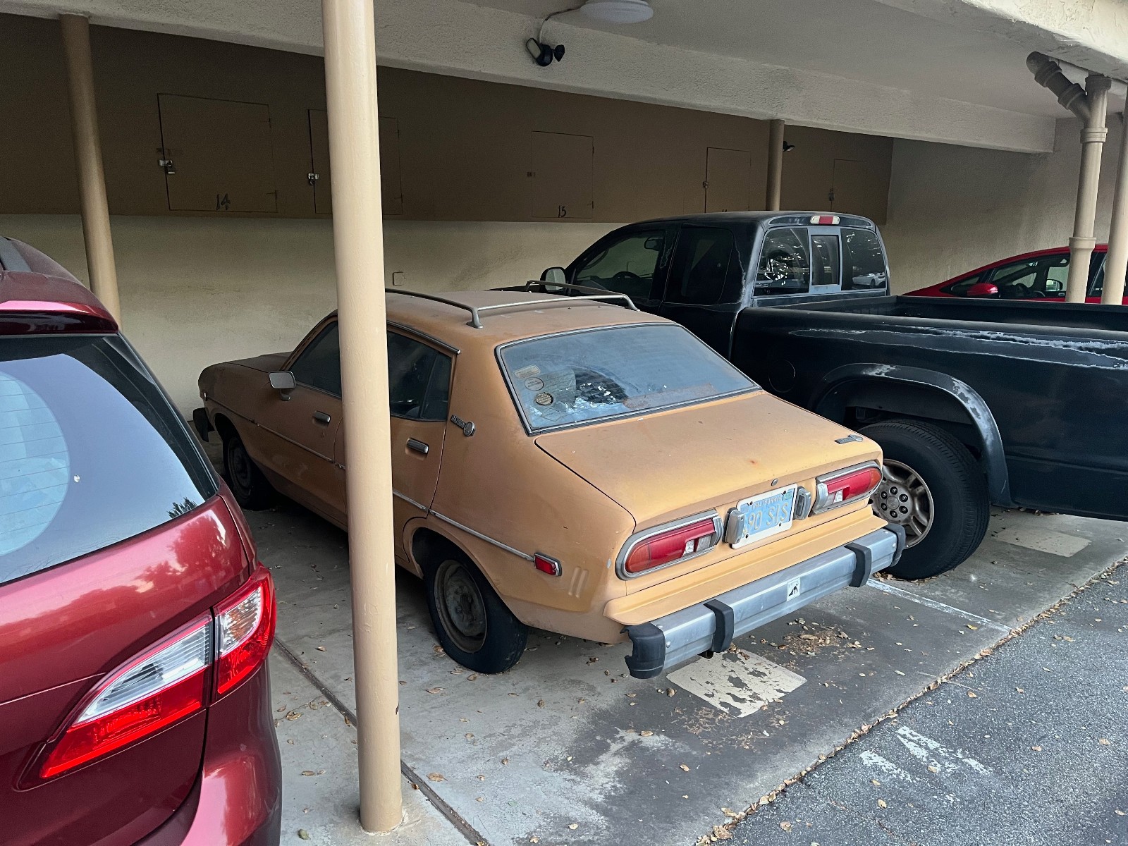 1977, Datsun B210. Doesn't quite start because it needs carburetor work. Interior in poor condition. Has about 125,000 to 150,000 miles. It is more than a salvage junk, so I picked "fair" but "fair is generous.