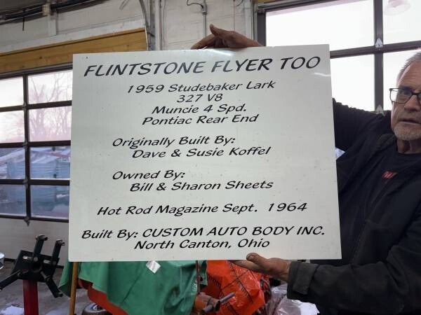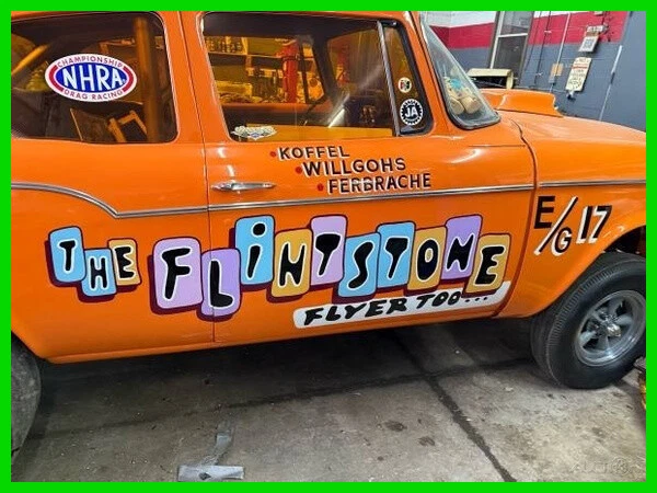 1959 Studebaker “Flintstone Flyer Too” Classic Race Car w/ Memorabilia for Sale in Clinton, OH 44216 Features/Owners Description 1959 Studebaker Lark “Flintstone Flyer Too” – Iconic Vintage Gasser This is a rare opportunity to own a true piece of drag racing history—the second of three legendary Flintstone Flyer race cars campaigned by Dave Koffel during the early to mid-1960s. Restored to its original glory, this 1959 Studebaker Lark made waves at local tracks and was a crowd favorite at the 1964 Indy Nationals. Built with an all-steel tilt front end and body, this showstopper features eye-popping vintage graphics, orange-
