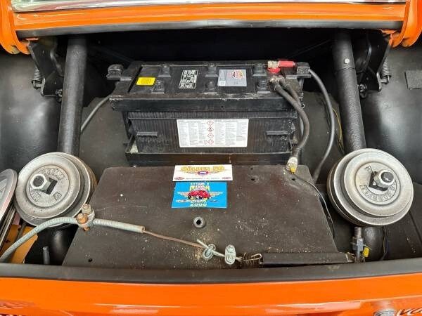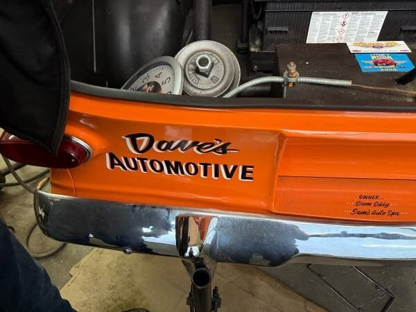 Built with an all-steel tilt front end and body, this showstopper features eye-popping vintage graphics, orange-tinted windows, and a Muncie 4-speed transmission. Under the hood: a 327 V8, topped with classic Hilborn fuel injection—a nod to the golden age of drag racing.