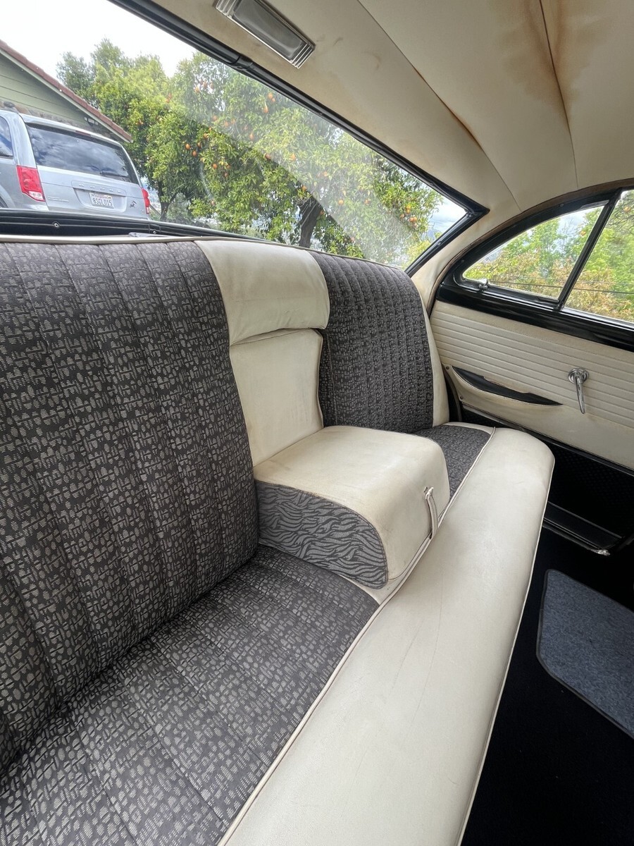 The interior is all original except for the carpet which was replaced about 8 years ago. The front seat needs to be reupholstered. The headliner is original and still intact – see picture.