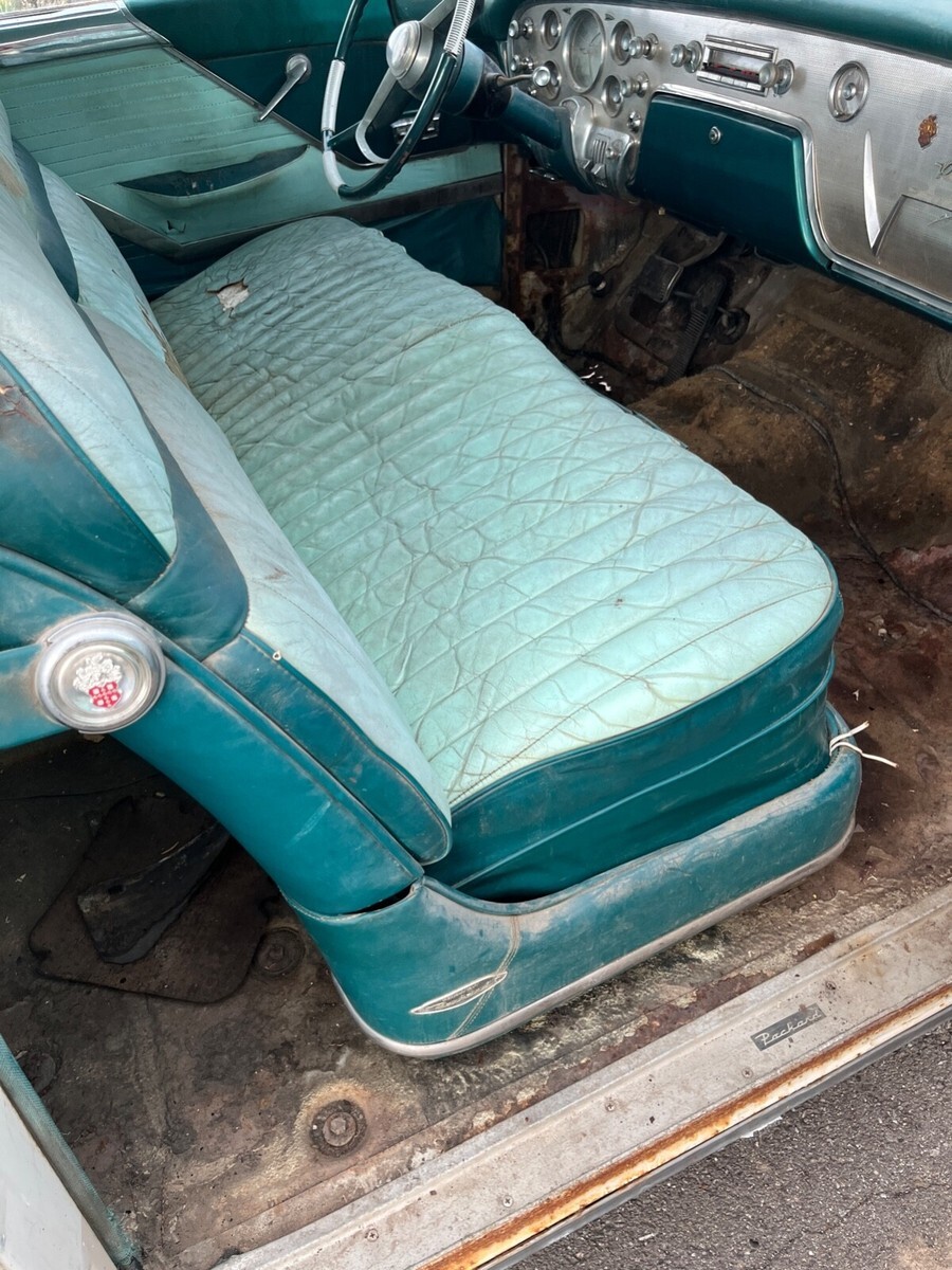 1955 Packard 400. Packard was in the same class as Cadillac and Lincoln from the 1930 to the late 1950s. The Packard 400 was the top of the Packard models in 1955. In Packard sales ads, it was described as the "Gentleman's Hotrod. "My 1955 Packard 400 is a running and driving project. I have a clean Utah Title in my name. I'm proud of my EBay score with over 1200 positive feedbacks and no negative strikes on EBay, With EBay's score in mind, I will outline both the Positive and Negative aspects of my 1955 Packard 400. First the Positives: This is a completely original Packard. From the good running 352 V8 engine to the rear differential, the drivetrain is factory original and works well. The engine starts easily, and the transmission shifts smoothly. As a top of the line car, my Packard came with Power steering, Power Brakes, Power Windows and a Power front seat. The leather interior is complete, but needs attention. The chrome headliner bars are in place. The body is straight and the hood, trunk, and doors open and close properly. The headlights, dome lights work, and the power windows on the passenger's side work properly. Please look closely at all of the photos. The Negative: The Packard sat for several years in a garage. When the third owner bought it, in a hurry to get it running, they sucked the bad gas into the carburetor and fuel pump. This caused the Packard to not run. I rebuilt the carburetor and installed a new fuel pump, and purchased a complete new 55 Packard gas tank. Currently, the Packard starts easily, runs and shifts smoothly with the new fuel system. I also purchase a new 1955 Packard gas tank and filler pipe that still need to be installed. These new parts come with the Packard. The Packard came with dual exhaust and one side is missing the muffler and tailpipe. The original owners purchased a clear plastic seat cover set for the Packard to protect the original leather seats. Over the years heat from the sun melted the plastic which stuck to the leather seats. Most of the plastic came off easily and served well protecting the original seats, but some is still stuck, but come off with a little elbow grease. Again, please check the photos.The trunk is filled with parts. It has the original jacks, two spare tires and rims, as well as chrome trim parts.The Original rear fender skirts are in the trunk. It is missing the hood ornament, but the trim is in the trunk. The body needs some work. The driver's side front floor has rust, and there are scratches and dings that have surface rust, but nothing serious. The front and rear windshields are in good condition. With the exception of a crack in the passenger's side door window, the glass is good. The passenger's side power windows work, but the power window system needs a good cleaning. All of the dash gauges are in place and appear to work properly. The original trunk floor mat and side panel are in place, but show the wear from sitting for years. The spare tire well is in good condition and not rusted. I could go into more detail, but it might be better if you called me with any unanswered questions. (801) 745-5835. I enjoy talking about classic cars and will gladly answer any questions. The Current "Old Cars Price Guide" places a restored Packard 400 at $33,000 and Hagerty Car Values places a "good" Packard 400 at $19,800. I will work with you, if you want a "buy now" offer price. I'm 84 years old and I have three old car projects and need to sell two of them. I will keep the Packard securely stored until you arrange the pick up or shipping. I prefer a bank funds transfer for the purchase payment. I bank at Wells Fargo or PayPal if you will share half of the PayPal fees. Good luck, Bob