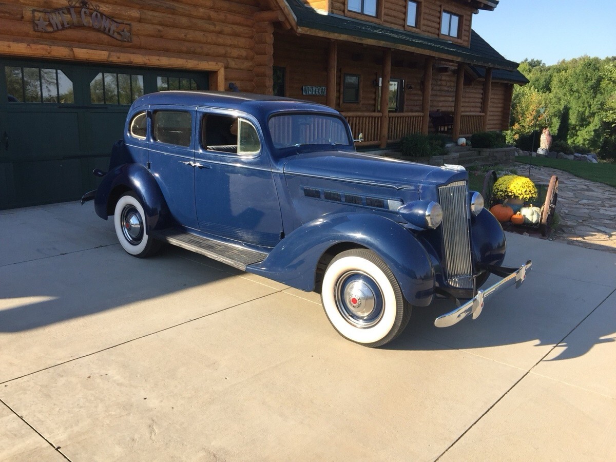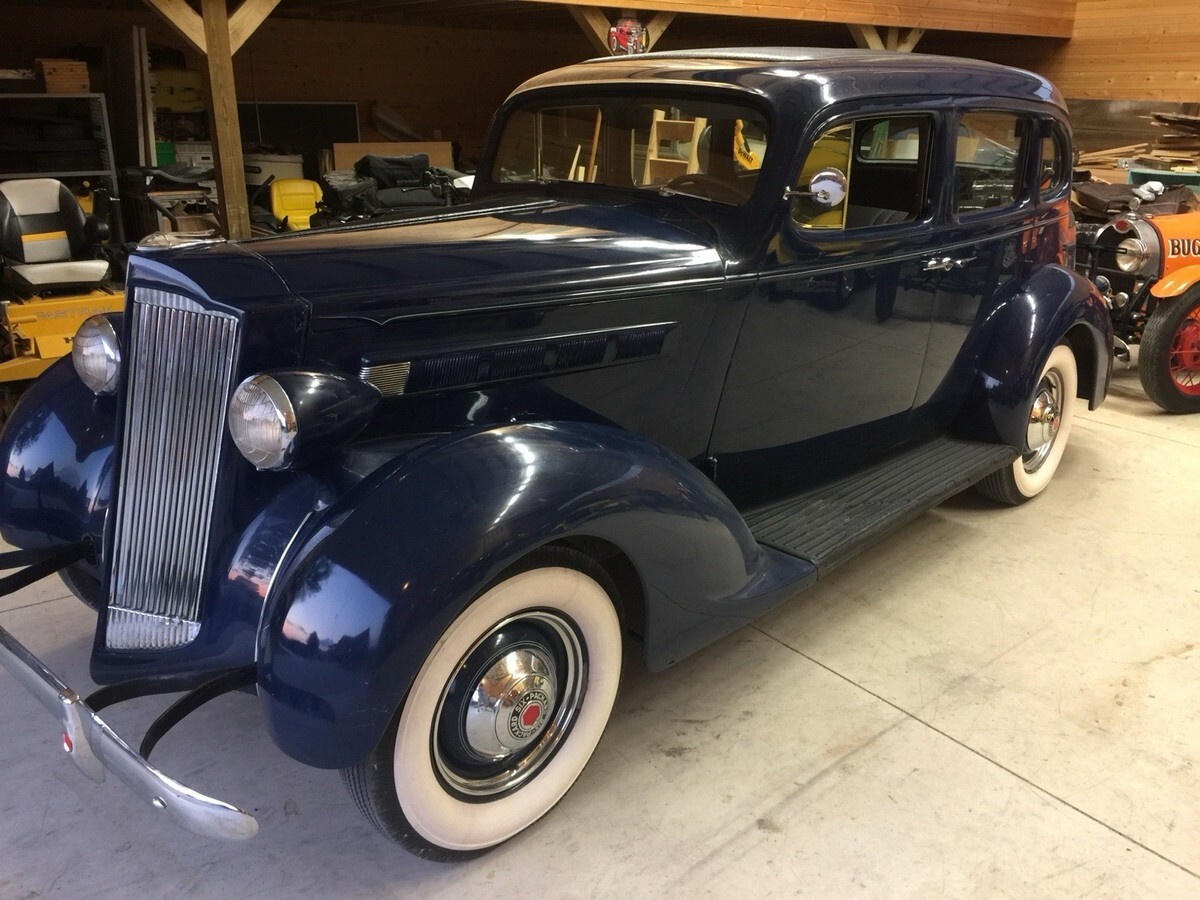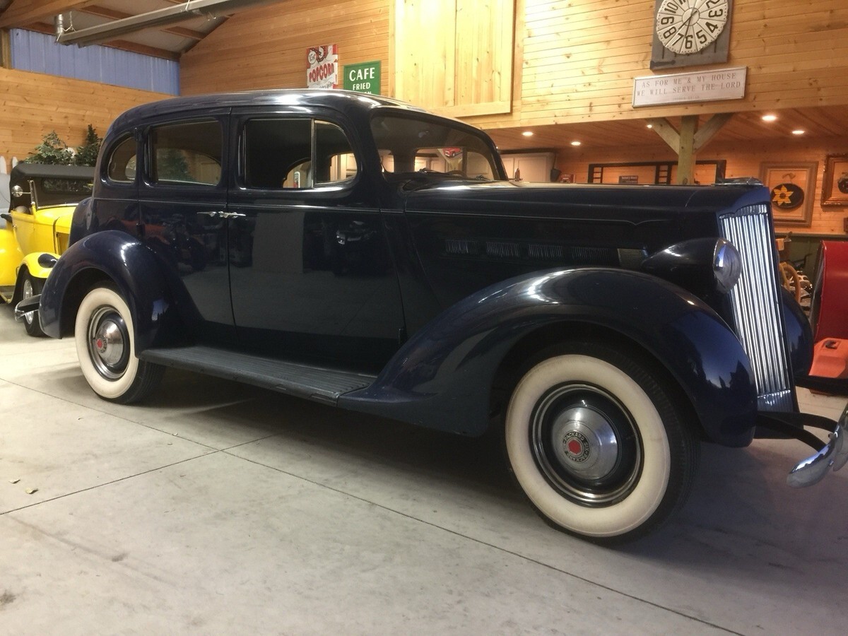 1937 Packard Touring Sedan 115-C Overall2134``Body is Very Solid BUT needs a paint job. Scratches throughout. Could use new rubber on the running boards.Missing 1 hub cap on the passenger side. New Interior, New Whitewall Tires but are dated. Please note the listing that the previous owner did. Looking at it will show I purchase the vehicle with 47,650 miles on it and currently has only 47,812, I drove it only 162 miles. Runs great, starts easy. I was purchasing a number of vehicles back in 2018 but never drove them. Selling due to health reasons. Currently listed locally also listing could end early. PLEASE NOTE THE PREVIOUS OWNERS LISTING ABOVE IN THE PICTURES. I have not done anything to it except put a new battery in it last week, started right up. Any questions please contact me. Thank you.