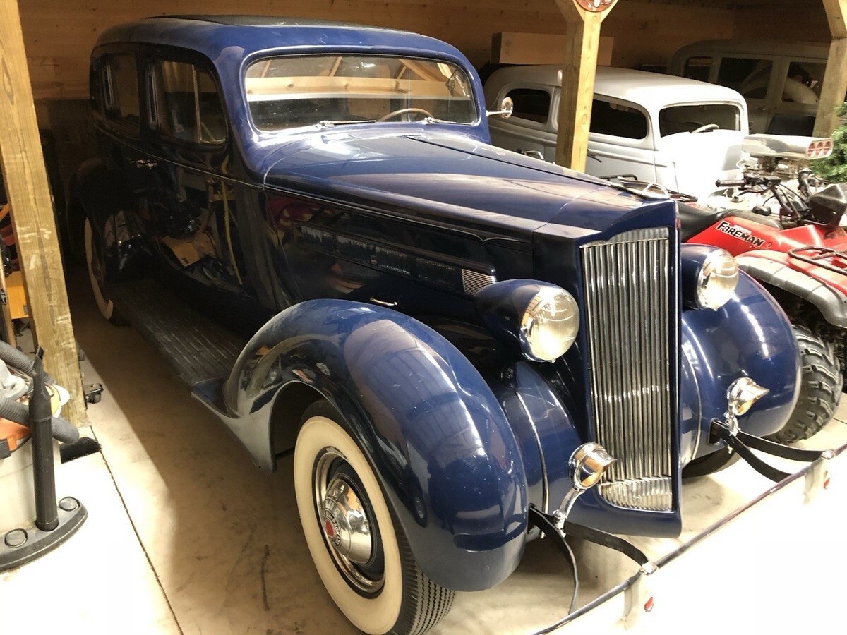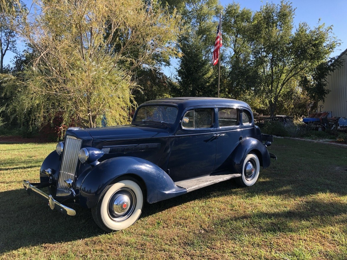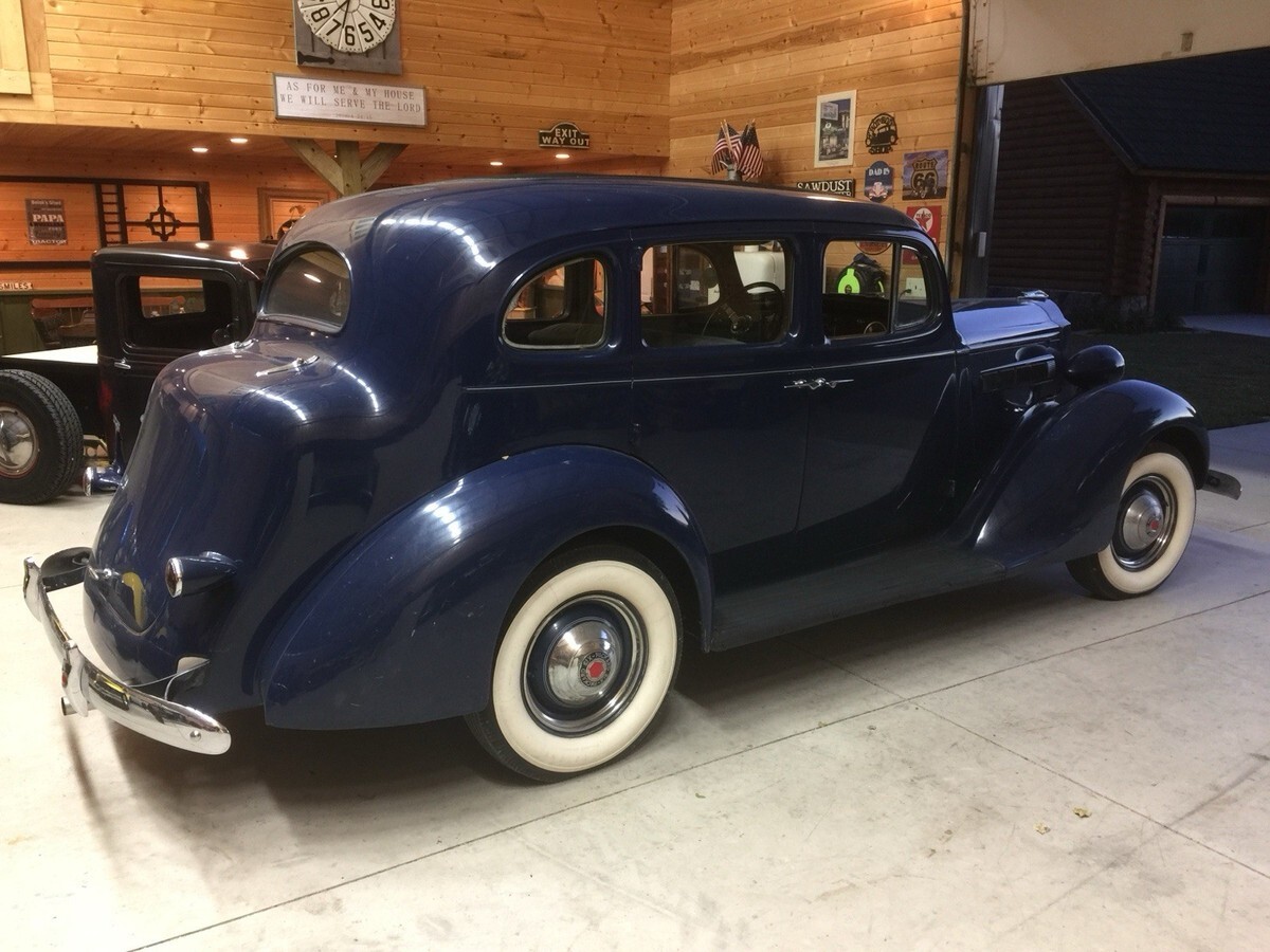 1937 Packard Touring Sedan 115-C Overall2134``Body is Very Solid BUT needs a paint job. Scratches throughout. Could use new rubber on the running boards.Missing 1 hub cap on the passenger side. New Interior, New Whitewall Tires but are dated. Please note the listing that the previous owner did. Looking at it will show I purchase the vehicle with 47,650 miles on it and currently has only 47,812, I drove it only 162 miles. Runs great, starts easy. I was purchasing a number of vehicles back in 2018 but never drove them. Selling due to health reasons. Currently listed locally also listing could end early. PLEASE NOTE THE PREVIOUS OWNERS LISTING ABOVE IN THE PICTURES. I have not done anything to it except put a new battery in it last week, started right up. Any questions please contact me. Thank you.