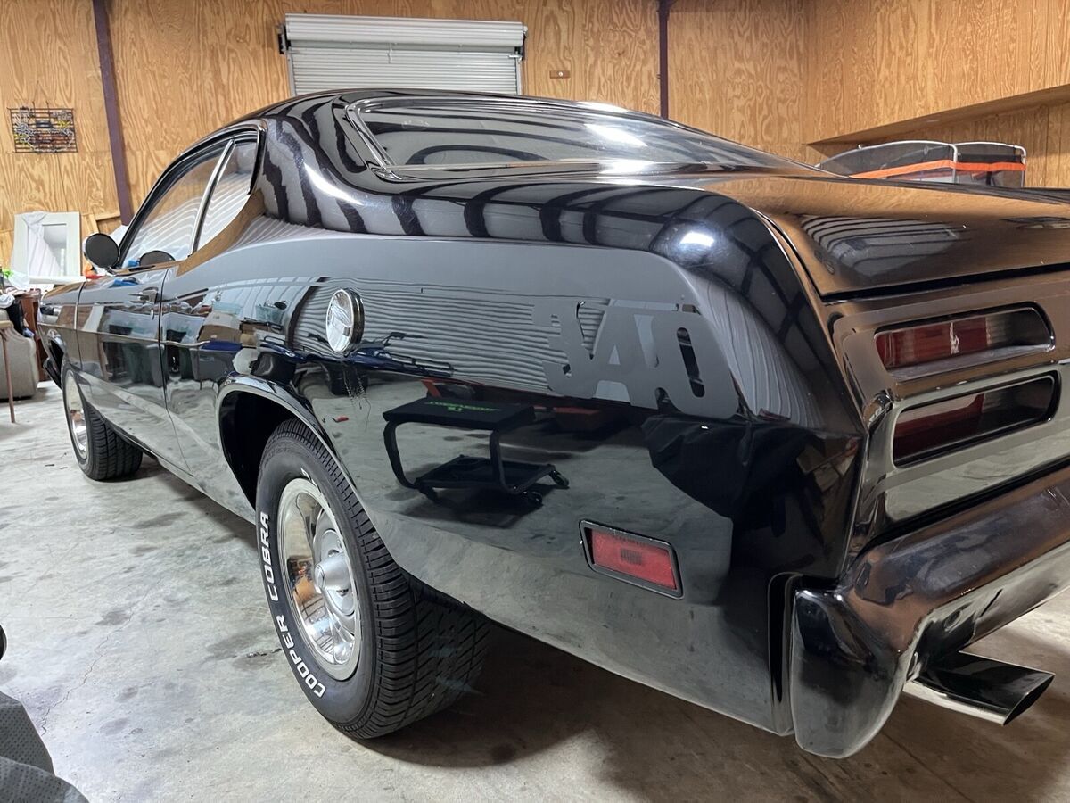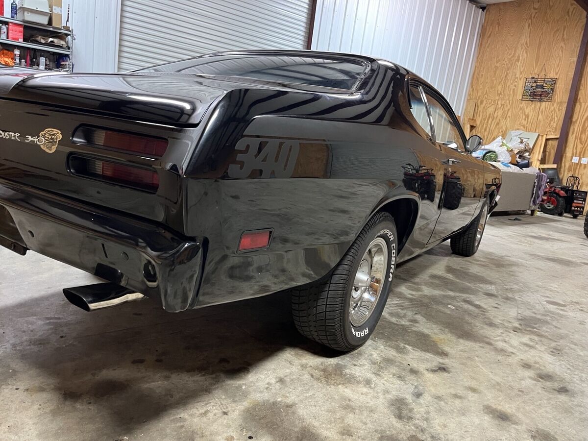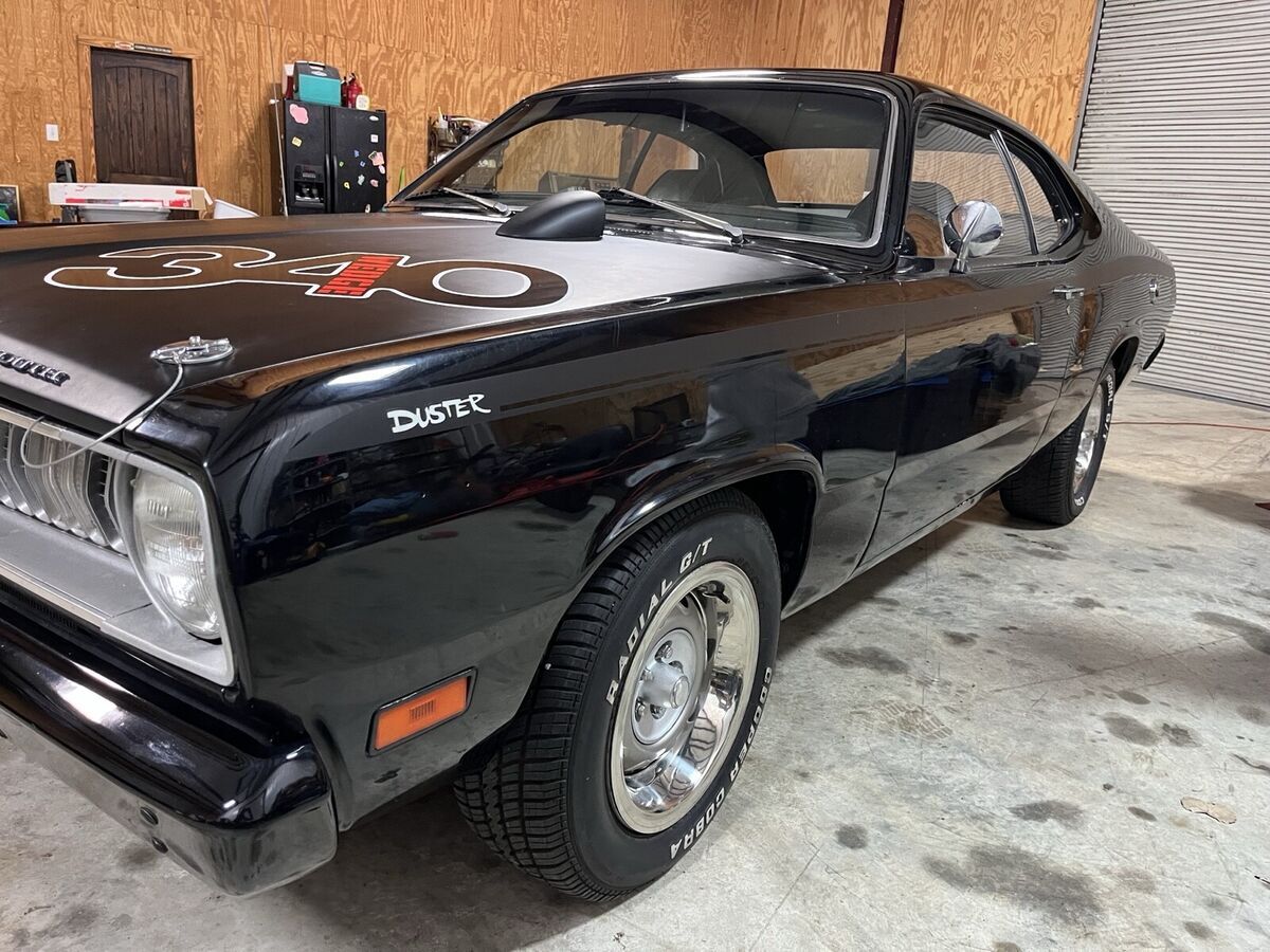71 duster with 71 340 engine,steel crank, J heads, new 750 carb., new headers with dual exhaust/chrome tips. Black exterior paint with no rust paint is driver qualit, not show.