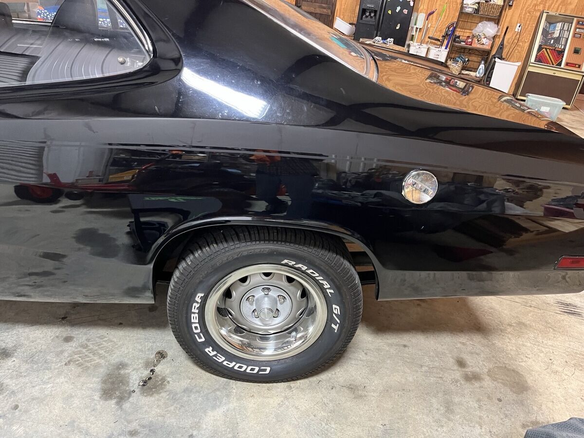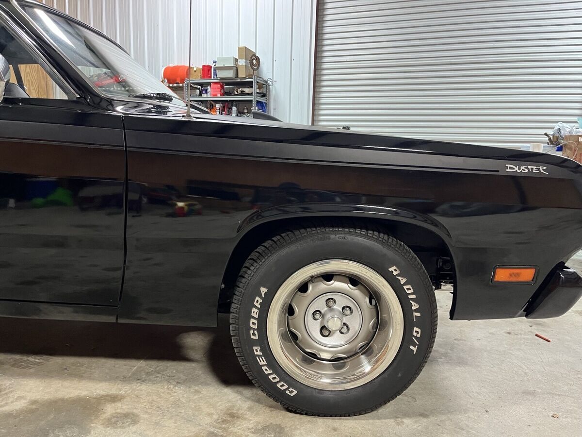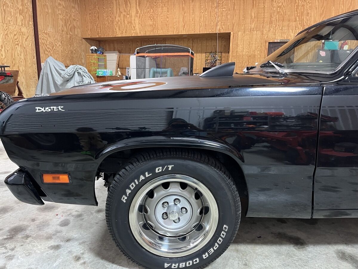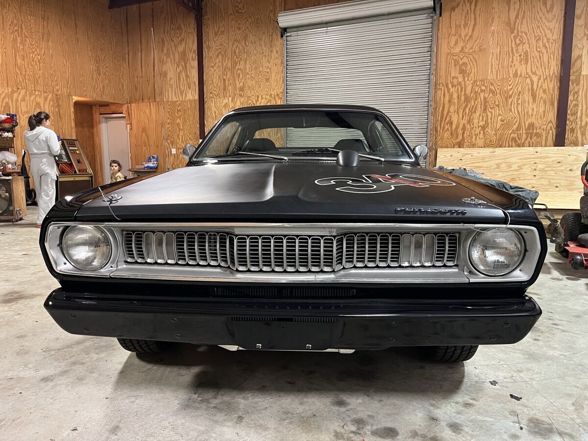 71 duster with 71 340 engine,steel crank, J heads, new 750 carb., new headers with dual exhaust/chrome tips. Black exterior paint with no rust paint is driver qualit, not show.