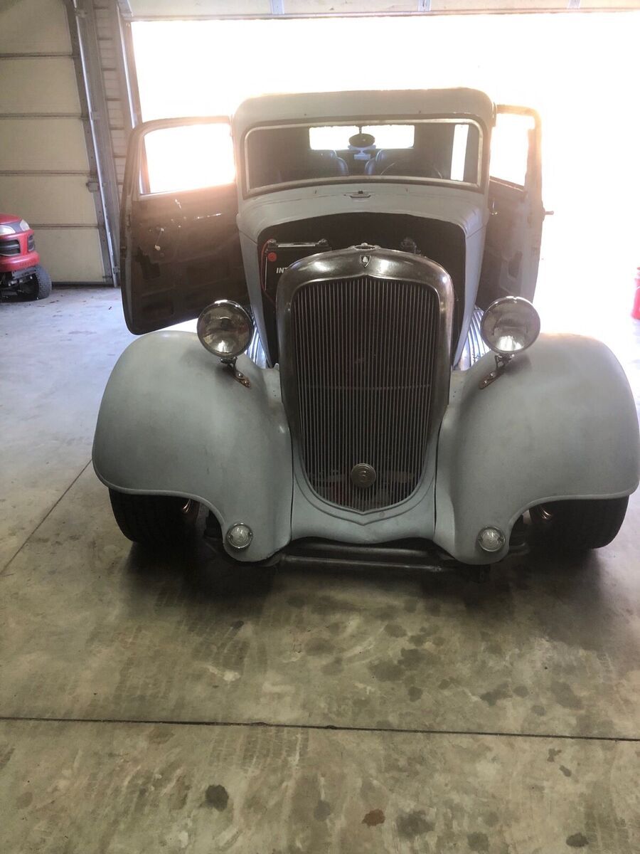 All steel, 34 car,33 front fenders,doors latched tight,Muncie 4 speed m-20 and been rebuilt.1969 327 engine rebuilt, with 2.02 vette heads.body man special,dings and small dents 33 hood is not mounted,76 VOLARE front clip, disk brakes, rear end VOLARE rear en, not posi .all guages, lights work, new 14 gallon steel gas tank. Original ply. Brass copper radiator with gm. Fittings. Drive any where as you complete body work and paint,may deliver as I have 4 wheel trailer, buyer pays for gas or toll, question welcome.all new glass, but not the doors.bottom of doors no rot, still retains original drain holes, trunk is not latched. New 600 holly carb.