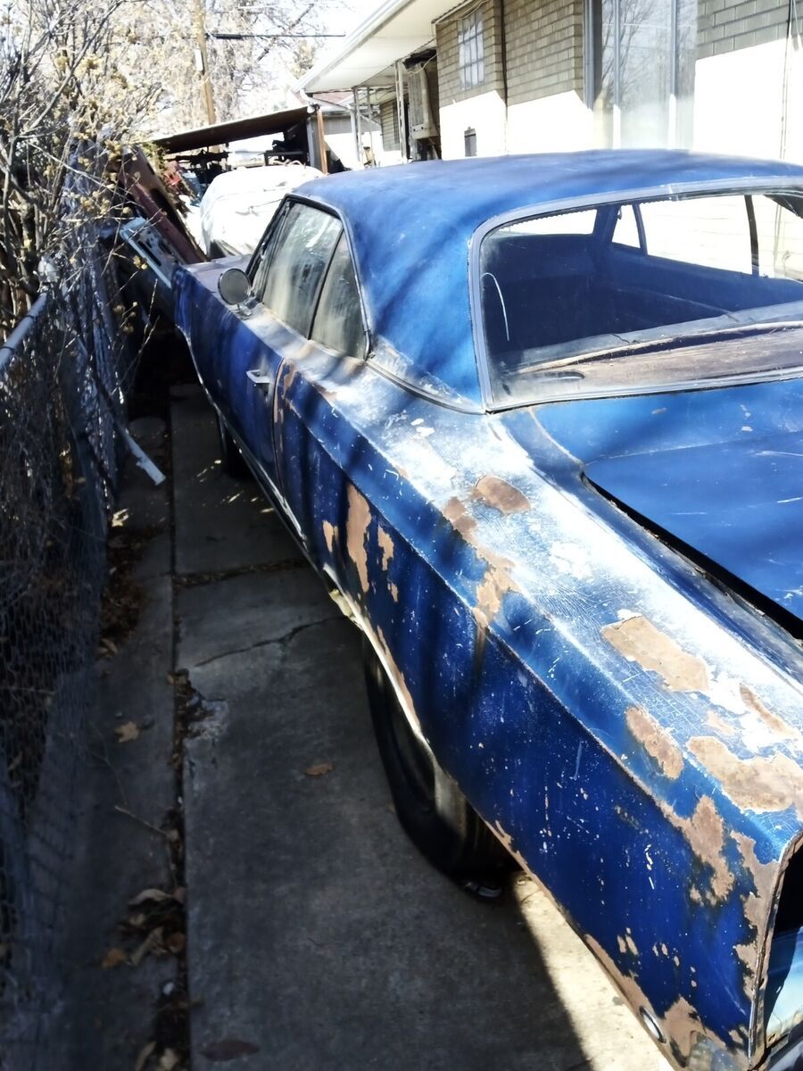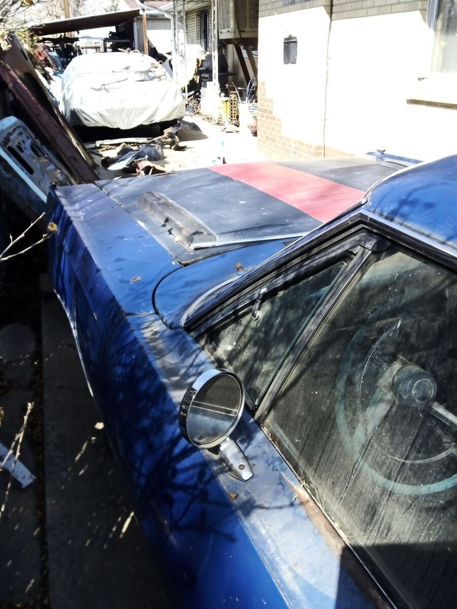 TIHS IS A PROJECT CAR THAT COMES WITH NEW QUARTERS AND EVERY BODY PART FOR THE TRUNK AREA. THE FLOOR WHEEL TUBS TRUNK EXTENSIONS ALL OF IT. CAR WILL NEED CABIN FLOORS. THE REAR AND FRONT RAILS ARE GOOD BUT THE ROCKERS HAVE RUST HOLES IN AREAS. THE HOOD IS BENT, ONE OR 2 OF THE ROD TENSION SUPPORTS IS BAD AND WILL NEED TO BE REPLACED THATS WHY THE TRUNK LID WONT CLOSE. HAS A CLEAR TITLE SIGHNED BY THE PREVIOUS OWNER, NO DRIVETRAIN BUT YOU CAN BUY A 727 THAT I HAVE ON EBAY. I WILL PLACE THE QUARTERS IN THE CAR WITH OUT THE BOX AND THE RESET OF THE SHEETMETAL. AGAIN ITS A PROJECT SO EXPECT TO PAY OR WORK TO GET IT DONE. IT ROLLS AND STEERS FOR TRANSPORT.