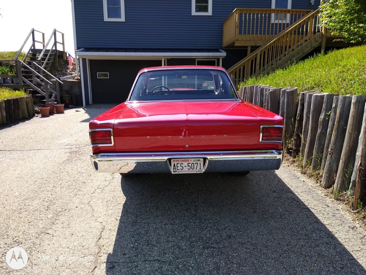 YOUR BIDDING ON A 1966 PLYMOUTH BELVEDERE I  , ,NEEDS NOTHING,,440 C.I. WEDGE MOTO, BALANCED AND BLUE PRINTED,THIS WAS A MANUAL FROM THE FACTORY, A833 18 SPLINE 4 SPEED TRANSMISSIO, DANA 60 REAR END WITH 4:10 GEAR, NEW STEEL RIMS WITH NEW MICKEY THOMPSON ET STREET RADIAL DRAG TIRES P255/60R15 ON THE REAR AND NEW MICKEY THOMPSON SPORTSMAN S/T PERFORMANCE RADIAL TIRES P215/70R15 ON THE FRONT WITH NEW PLYMOUTH DOG DISH HUB CAPS .ENGINE & TRANSMISSION AND NEW :440 C.I. BALANCED AND BLUE PRINTED10.5:1 FORGED PISTONS ( RUNS ON PREMIUM PUMP GAS WITH A BOOST ) RACER BROWN HYDRAULIC CAM: DURATION @ .050 " I/E 23, VALVE LIFT I/E .517EDELBROCK PERFORMER RPM INTAKE AND MAX WEDGE ALUMINUM HEADS1.6 RATIO ROLLER ROCKERSMSD BILLET DISTRIBUTORHIGH PERFORMANCE MANUAL FUEL PUMP WITH REGULATORMOROSO 8 QT. OIL PANMELLING HIGH VOLUME OIL PUMPQUICK FUEL 850 CFM CARBURETORNEW GAS TANK AND FUEL LINESEDELBROCK AIR CLEANERHEADMAN HEADERS ( COSTED )3 " EXHAUST WITH FLOW MASTER MUFFLERSTRANS IS A 4 SPEED A833 18 SPLINE WITH COMPETITION PLUS SHIFTER ( HURST )DEEP TRANSMISSION PANBODY & PAINT1966-67 SUPER STOCK PLYMOUTH FIBERGLASS HOOD SCOOP ( FUNCTIONAL )JBB MEDIUM RED PAINT WITH URETHANE CLEARNEW INSULATION THREW OUTRE-CHROMED BUMPERSNEW HOOD AND TRUNK LETTERSALL GLASS IS IN EXCELLENT CONDITIONNOS GRILLEINTERIOR NEW CUSTOM UPHOLSTERY SEATS AND DOOR PANELSNEW HEADLINERRADIO DELETE PLATEREFINISHED DASH WITH ALL STOCK GAUGES FUNCTIONING INCLUDING SPEEDOMETER,ODOMETER,TEMP,AUTOMETER SPORT COMP MONSTER TACHSUMMIT OIL PREASUR, VOLTAGE METER AND WATER TEMP GAUGESNEW CARPETNEW SEAT BELTS ( FACTORY STYLE FRONT AND BACK )ALL NEW WIRINGREBUILT HEATER ASSEMBLYCHASSIS & DIFFERENTIAL :NEW FRONT END PARTS WITH POLYURETHANE BUSHINGSDUAL MASTER CYLINDER WITH ECI DRUM BRAKESDANA 60 DIFFERENTIAL WITH 4:10 POSI GEARSMOPAR PERFORMANCE SHOCKS WITH REAR HAVING EXTENSIONSMOPAR PERFORMANCE SUPER STOCK SPRINGSRELOCATED ( INSIDE FRAME RAILS ) REAR SPRINGS FOR WIDER TIRESTHIS IS A VERY RARE FIND IN THIS CONDITION IF YOU HAVE ANY QUESTION JUST ASK,,THANKS FOR LOOKING AND GOOD LUCK BIDDING AND IF YOU HAVE ANY QUESTION 920-397-7145THIS CAR IS CLEAN AND STRAIGHT AND FAST !!!DON'T FORGET TO LOOK AT MY OTHER LISTING ALSO 2022 DODGE CHALLENGER SRT SUPER STOCK , ,,THANKS FOR LOOKING AND GOOD LUCK BIDDING !!!P.S. ALSO HAVE A 2022 DODGE CHALLENGER SRT SUPER STOCK 807H.P. WITH 6890 MILES ON IT FOR SALE ON EBA, ,,