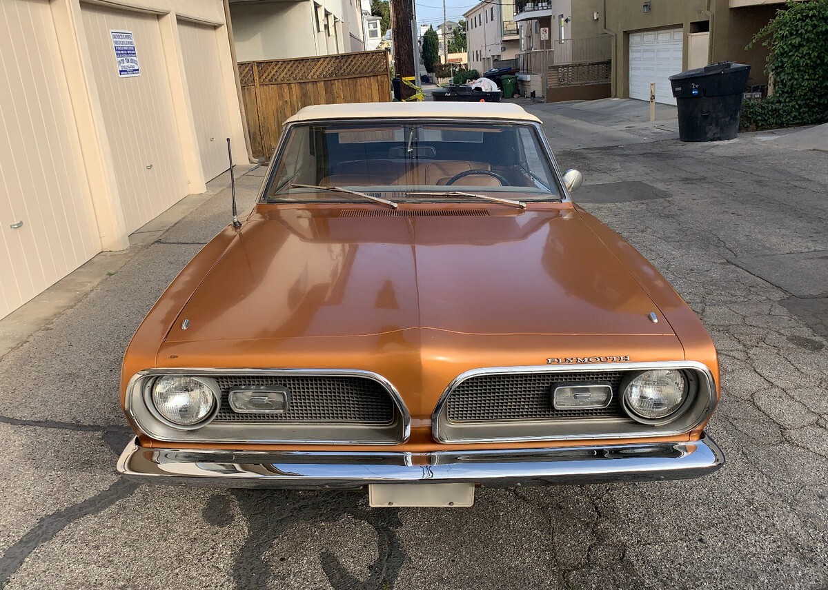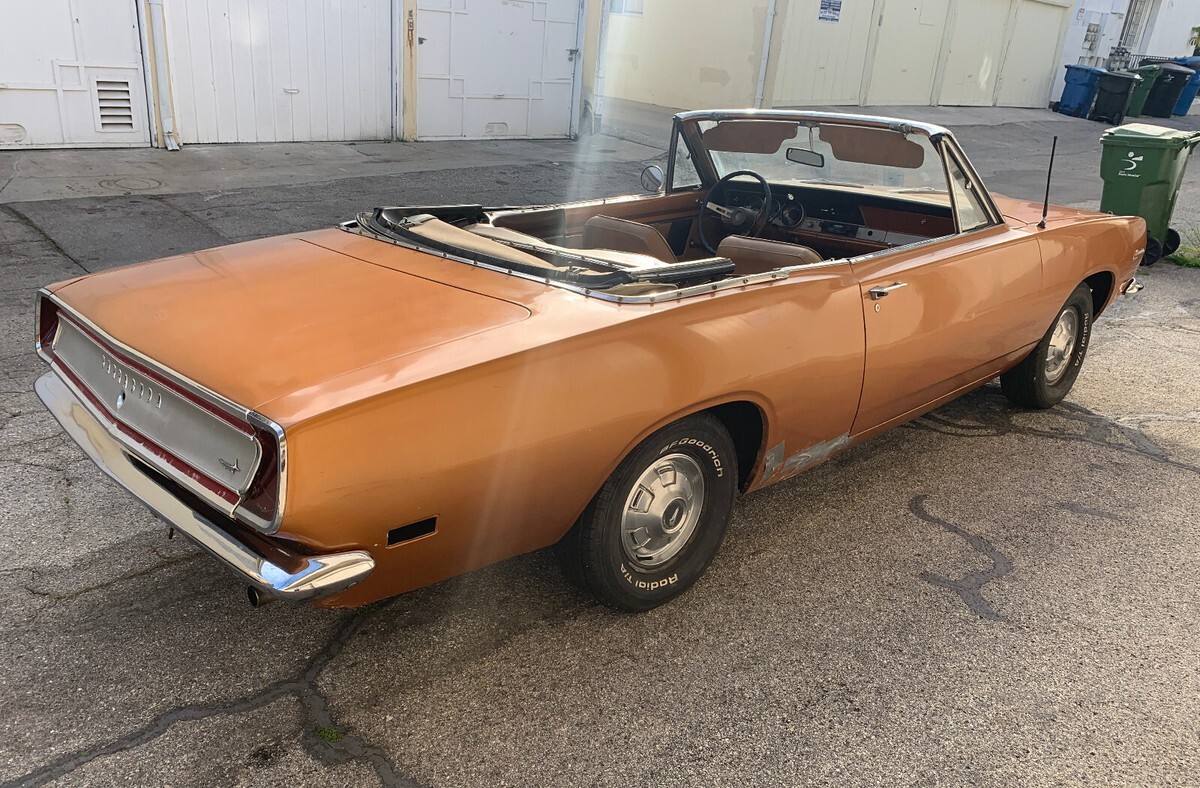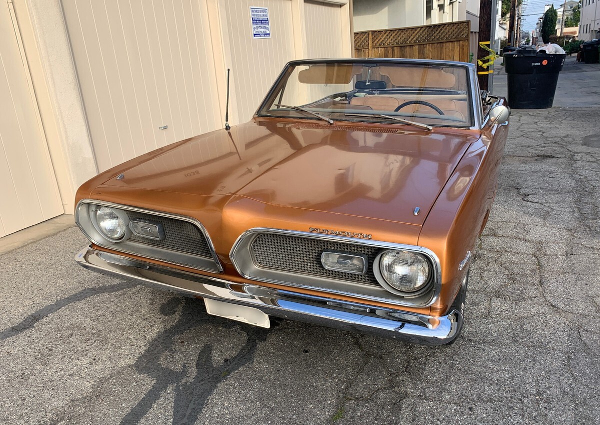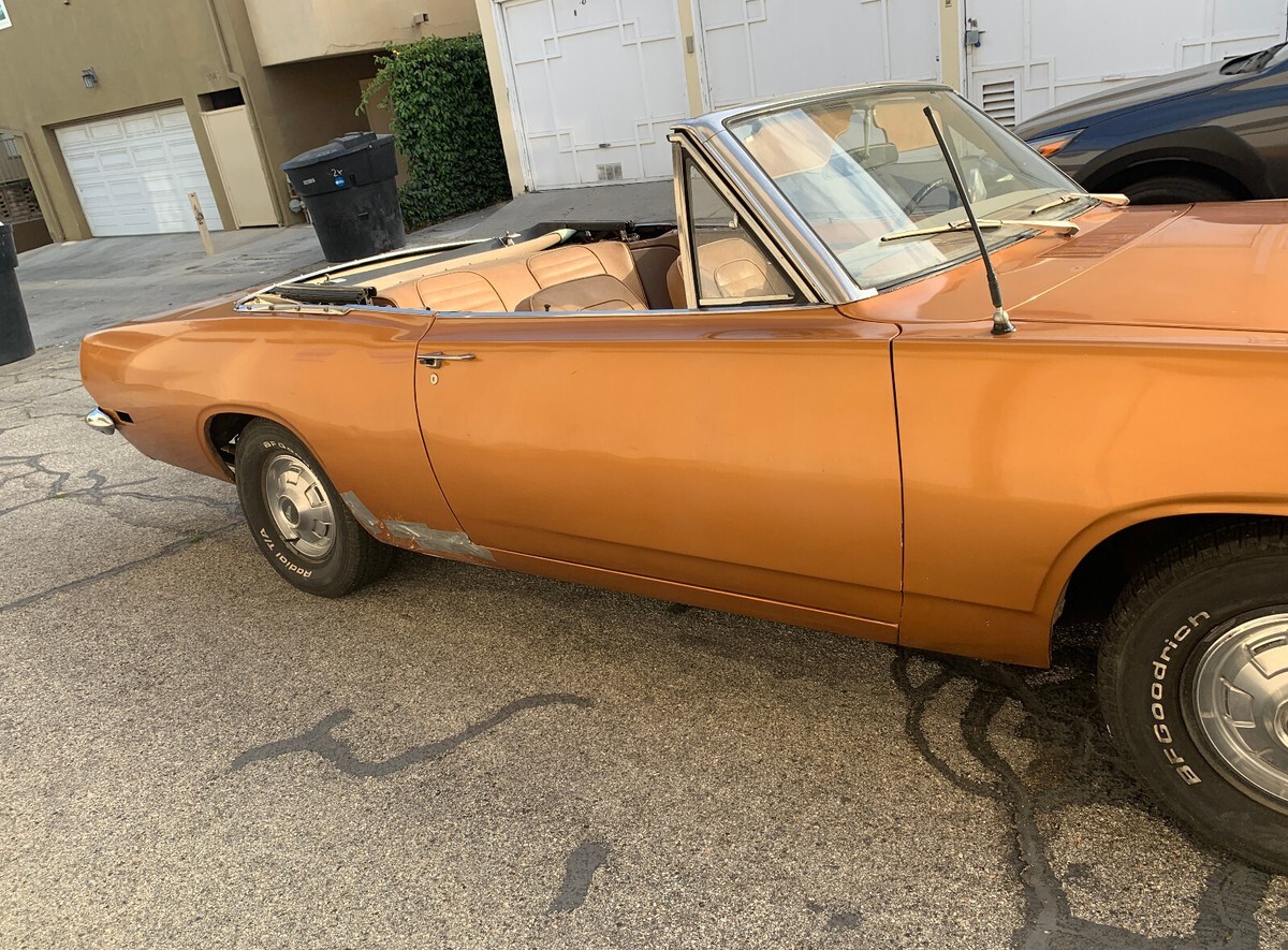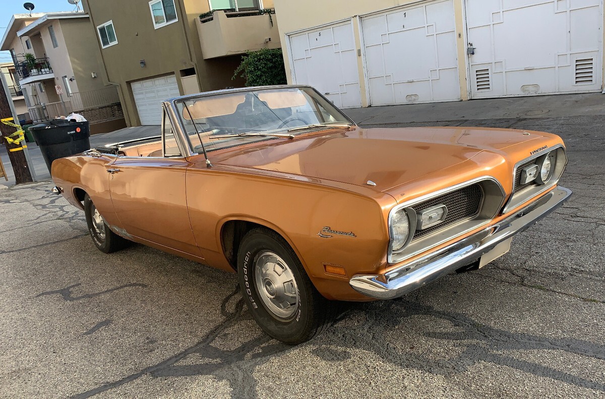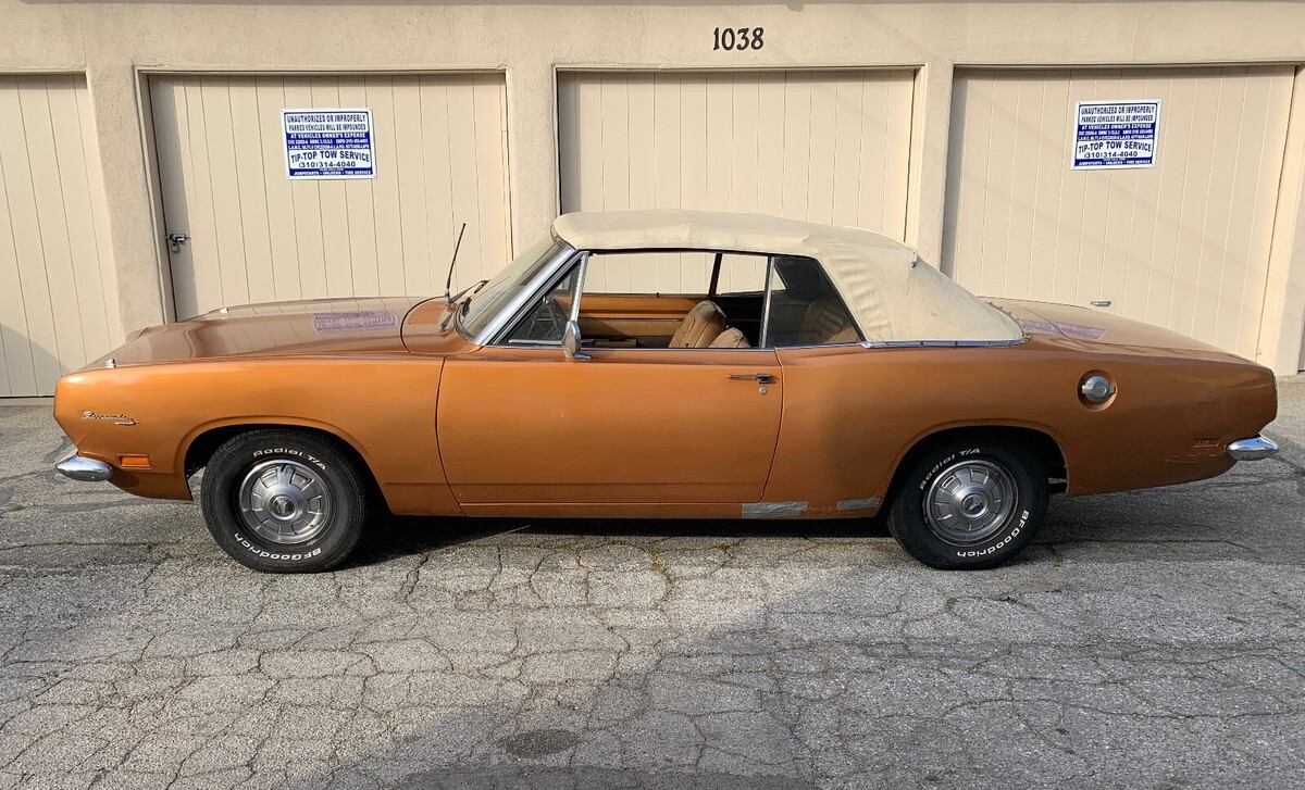 69 Barracuda Convertible with low miles, clean title, bucket seats, 318 engine.
