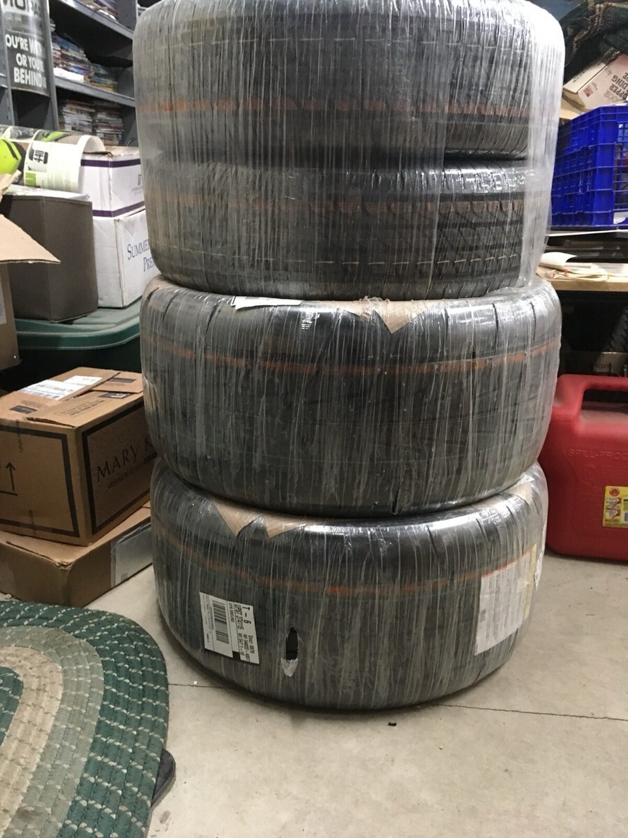 It has custom made red line 325 50-15 Nitto drag radials on the rear and custom red line radials on the front. All mounted on steel wheels for that factory look. The spare tire is original and on an H code wheel.