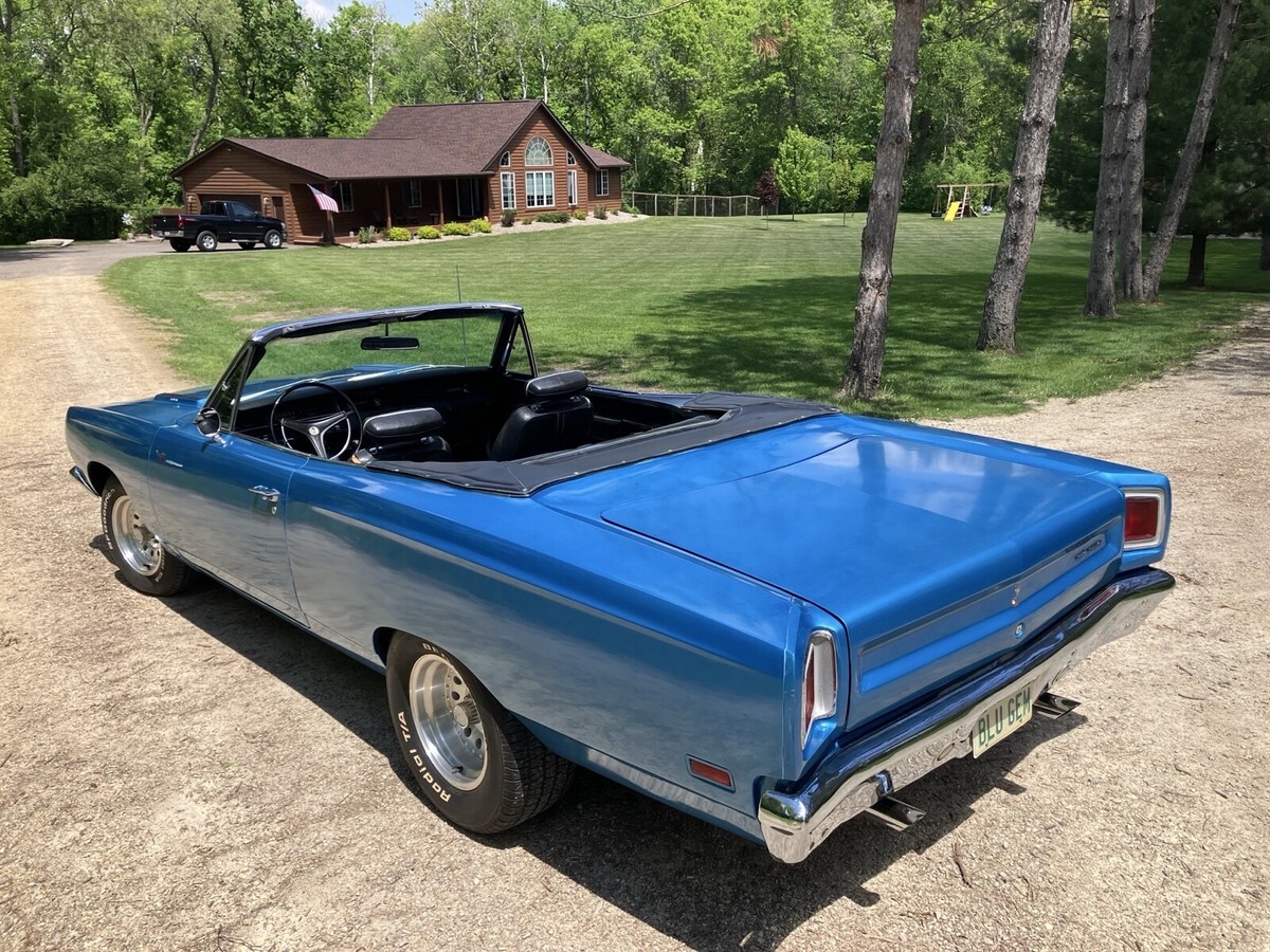 1969 Plymouth Road Runner Convertible, 383, 4 speed, performance axle package (3.55’s), bucket seat car.