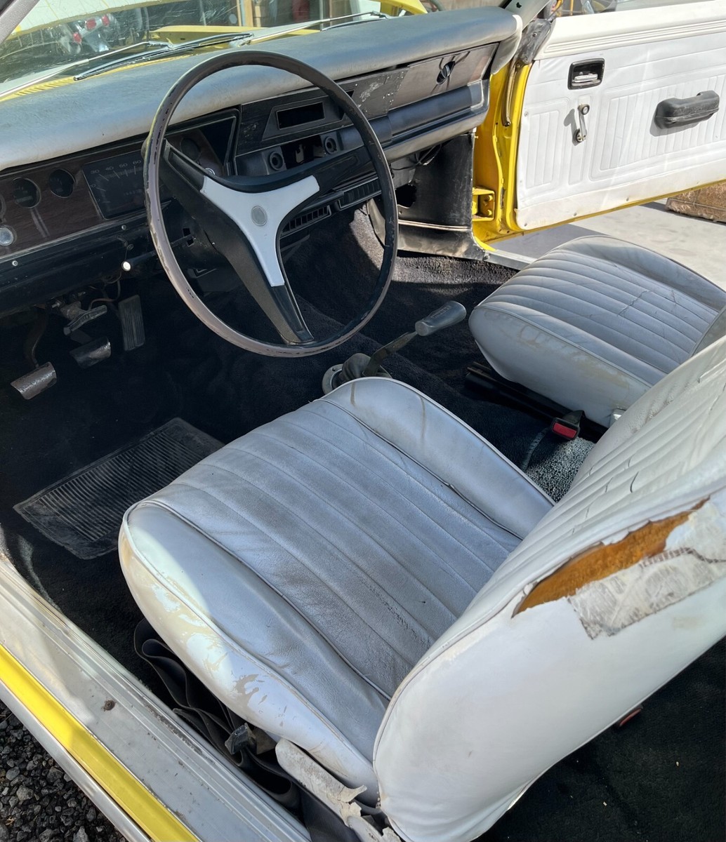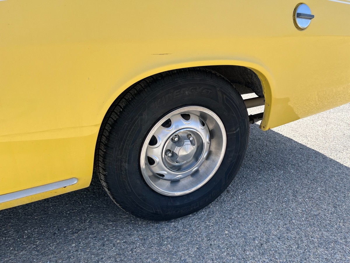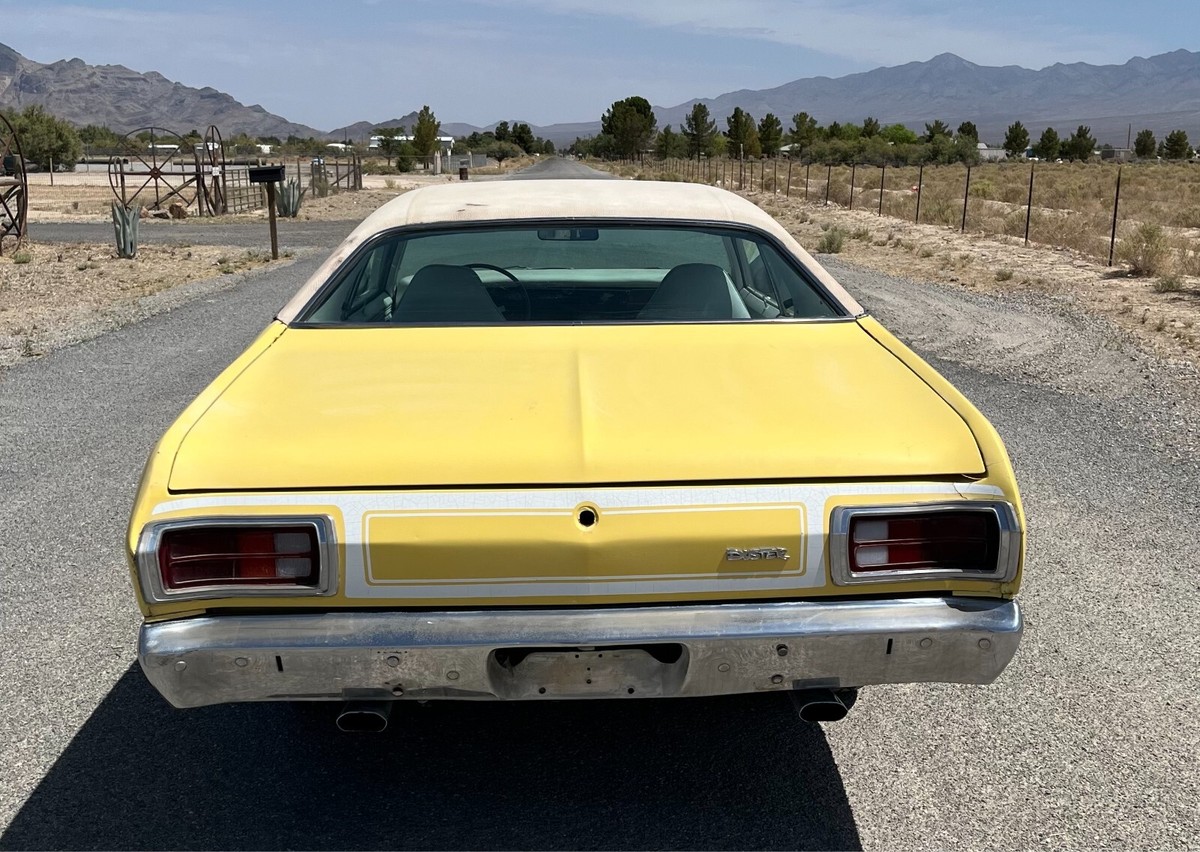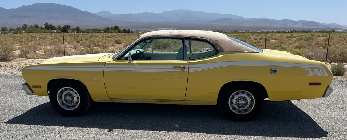 Here's a real nice A body Mopar project,1973 Plymouth Gold Duster with it's original 318ci engine with a Hurst 4 speed that also has a 4 speed steering column installed, it was originally a column shift automatic according to the trim tag..see photos. Original a/c car (missing ac components), the car has the fold down rear seat, solid trunk and floors with a small bit of bubbling on the body, see photos. Was originally gold. Sounds like it might have a cam in it. The car currently has a rebuilt Edelbrock 4 barrel and runs on remote fuel bottle because the gas tank had bad fuel in it, shifts and stops. Has original rally wheels and brand new Hankook tires. As far as the clutch and brakes go they are good enough to load it on a trailer, needs a power steering to drive down the road. It's a solid and straight Mopar project. Could easily be a driving project.Duster Swinger Gold Duster Barracuda A Body MoparTHANKS FOR LOOKING AT MY LISTING. EMAIL ME WITH QUESTIONS OR CONTACT ME7025137885.MEANWHILE, CHECK OUT MY FEEDBACK AND MY OTHER ITEMS THENLET'S MAKE A DEAL. ALL REASONABLE OFFERS WILL BE CONSIDERED. PURCHASE WITH CONFIDENCE, I'M A 25-YEAR EBAY SELLER.I'VE DESCRIBED THIS ITEM TO THE BEST OF MY ABILITY AND IS SOLD AS IS WHERE IS WITH NO WARRANTY EXPRESSED OR IMPLIED, THIS ITEM IS PRE-OWNED AND MAY OR MAY NOT HAVE MINOR BLEMISHES OR NORMAL WEAR UNLESS OTHERWISE STATED NEW (OPEN BOX), SEE LISTING AND PHOTOS FOR DETAILS. BUYER PAYS AND IS RESPONSIBLE FOR TRANSPORT OR SHIPPING COST UNLESS OTHERWISE STATED AS "FREE SHIPPING" IN THE LISTING WHICH ONLY COVERS THE LOWER 48, HI and AK WILL BE ADDITIONAL COST. ALSO, SELLER MUST BE NOTIFIED FROM BUYER AFTER PURCHASE IF ANY ADDITIONAL INSURANCE COVERAGE IS WANTED ABOVE AND BEYOND WHAT THE SHIPPING COMPANY OFFERS WHICH IS TYPICALLY $100 AND WILL BE PAID FOR BY THE BUYER.ALL SALES ARE FINAL. THANK YOU FOR YOUR COSIDERATION!