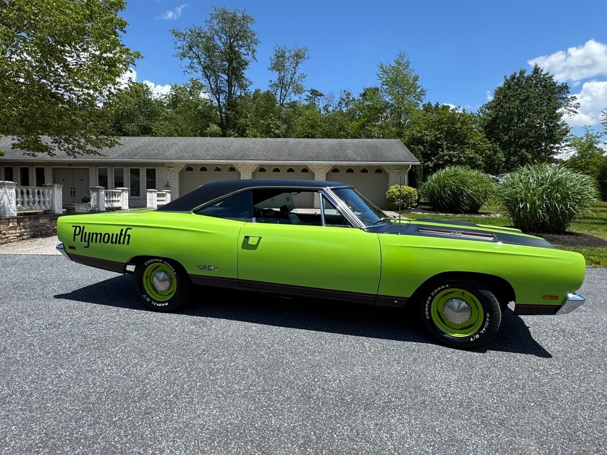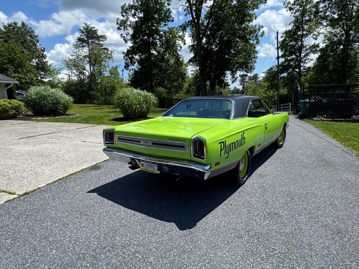 Up for sale is my 1969 Roadrunner ! This is a real RM23 Roadrunner that was restored and turned into a GTX Clone approximately 20 yrs ago. It has a very strong 440 engine that is dated 4/69. This 440 runs really well with 70-80 psi Oil Pressure and runs 180 degrees. It is also equipped with the Air Grabber Hood and all the componants are there ! The 727 HD Transmission shifts well and performs as it should. The sure grip 8 3/4 rear is a 3:91 running gear ! There is no rust that I can find on this car ! The panels all line up and appear straight as can be . The Paint is Lime Lite and it shows really well against the black and orange under the hood ! The interior is very nice with no rips or tears. This car is equipped with factory Power Windows and the original AM FM 8 Track radio but it does not work. Overal, This is a very nice Classic muscle car for the money. Come see it in person if your able to !