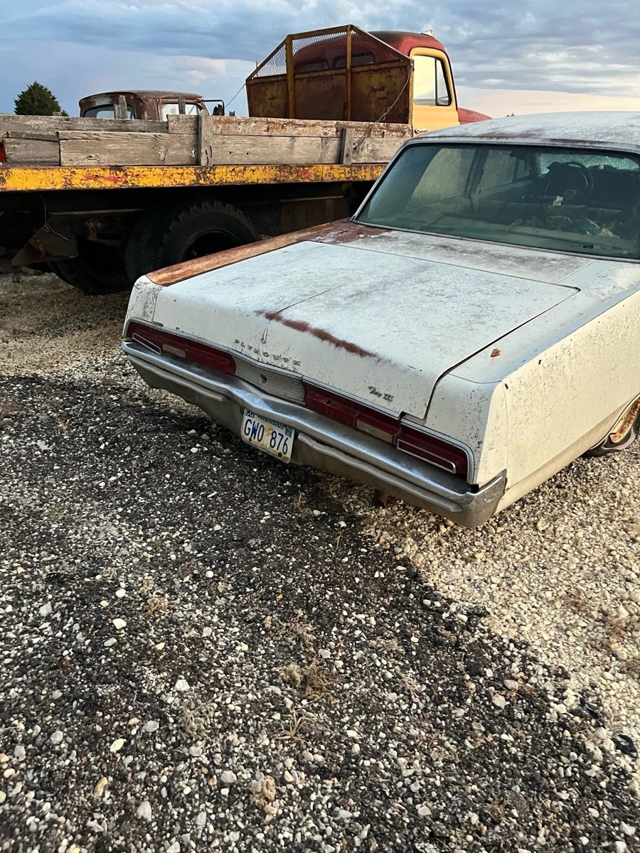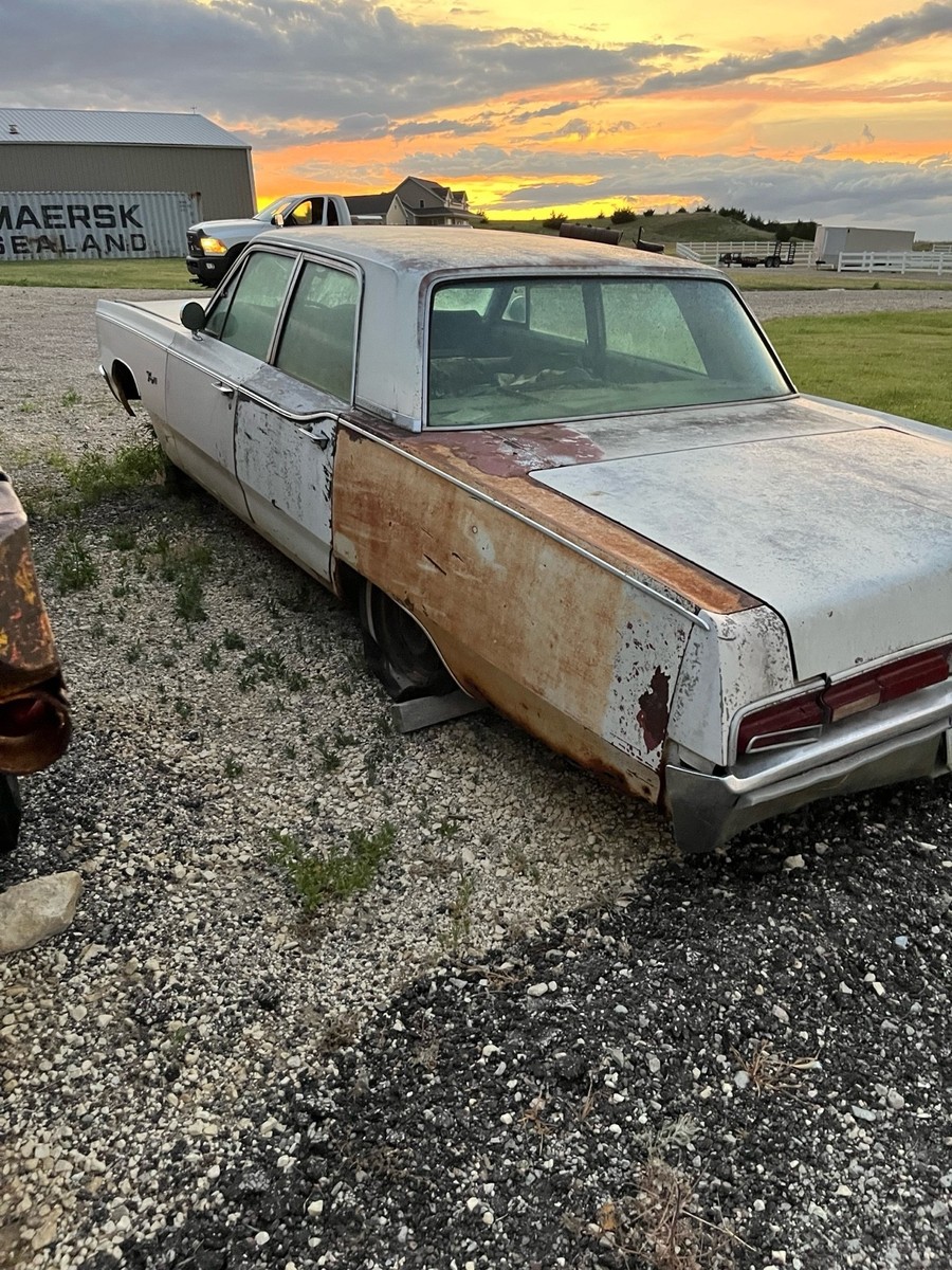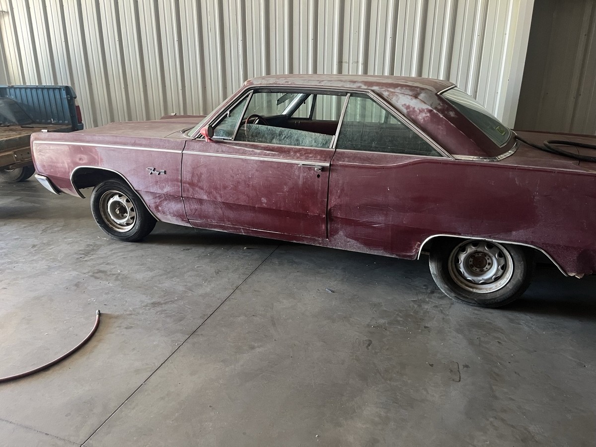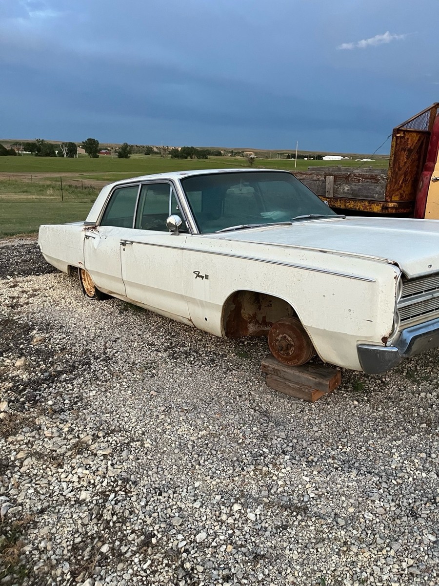 Fresh barn find, 1967 Plymouth Fury III, been in storage for 35-40 yrs. 318 auto running condition unknown. Left rear 1/4 needs to be replaced, otherwise pretty straight body with a little rust on Right lower 1/4. Complete interior with split bench seat not shown needing recovered. Comes with complete 4dr parts car along with extra rear bumper and NOS taillights. New tires