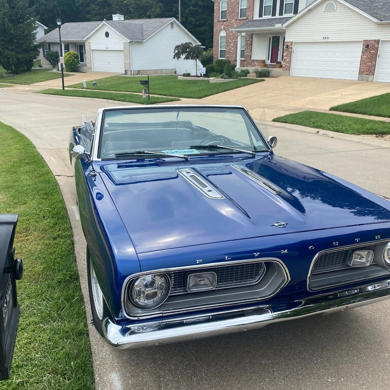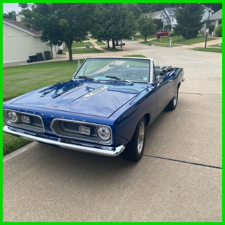 1967 Plymouth Barracuda Convertible For Sale in St. Louis, MO 63129 This Barracuda is powered by a 340 V8 engine paired with an automatic transmission. It is shown with a blue exterior and a black interior. This vehicle has been well-maintained. Features Upgraded Convertible Top Upgraded Vinyl Interior Upgraded Audio System Chrome Accents LED Lights 2” Exhaust Owner’s Notes “For sale is a 1967 Plymouth Barracuda Convertible with a strong-running 340 V8 under the hood. It’s equipped with Edel