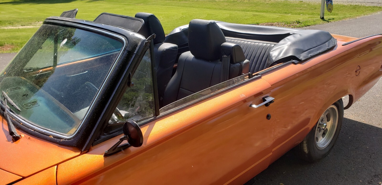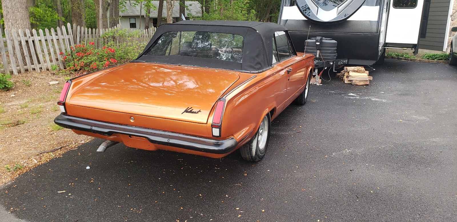 Classic rust free Valiant Convertible with a 225 slant 6, push button automatic. Clifford's intake and headers,TTI 2.5 inch exhaust. Many new components including paint, carpet, gas tank, Mancini steering box, radiator, Convertible top and shift/park cable.