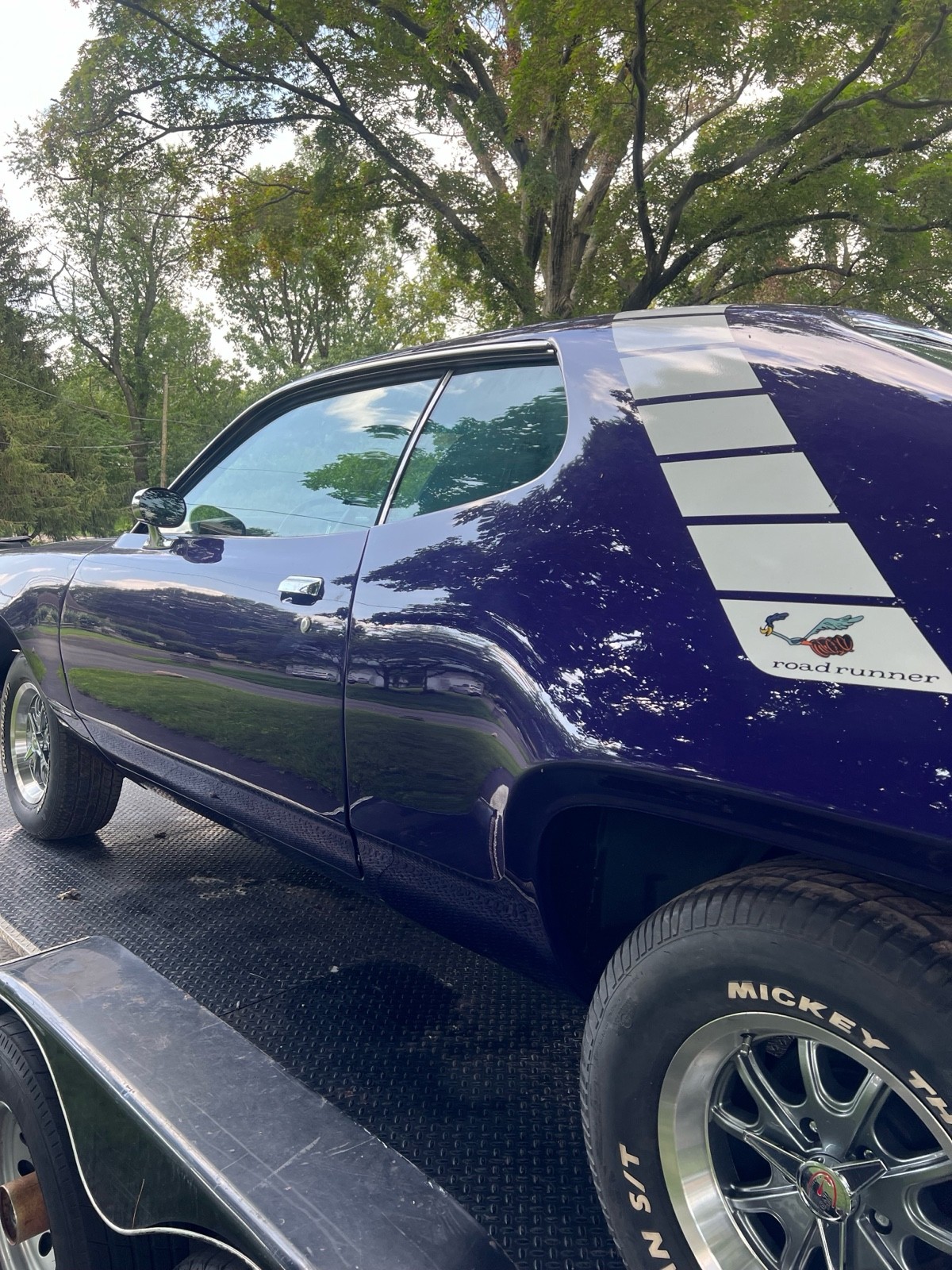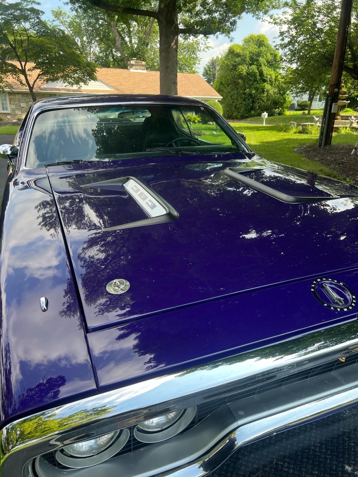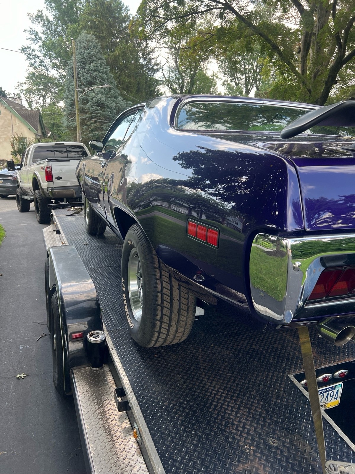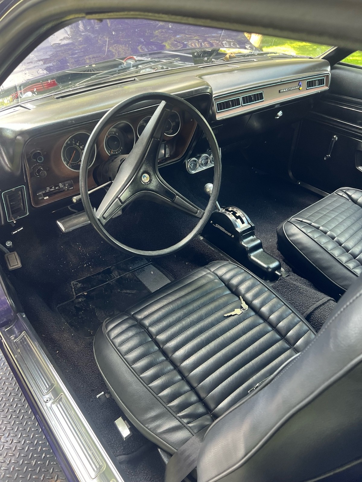 Here is a really nice driver Quality/Local show vehicle. The paint is pretty nice but has some flaws. There is one scuff on the rear quarter panel by the marker minor. The underside of the vehicle is ultra clean. 383 engine and freshly rebuilt 727 automatic brand I had the bumpers re-chrome plated it. It has a holly sniper EFI. Really makes the car run nice and even. Interior really nice with some minor flaws.