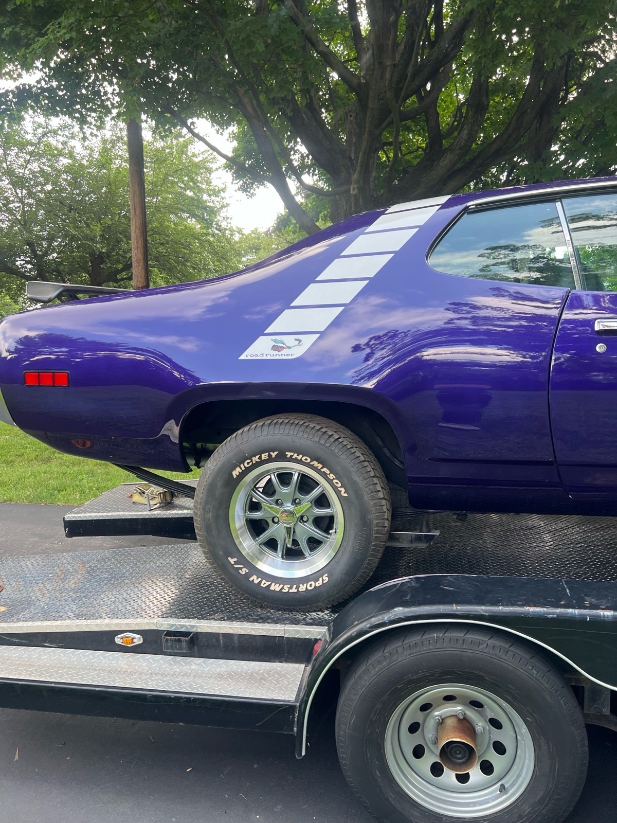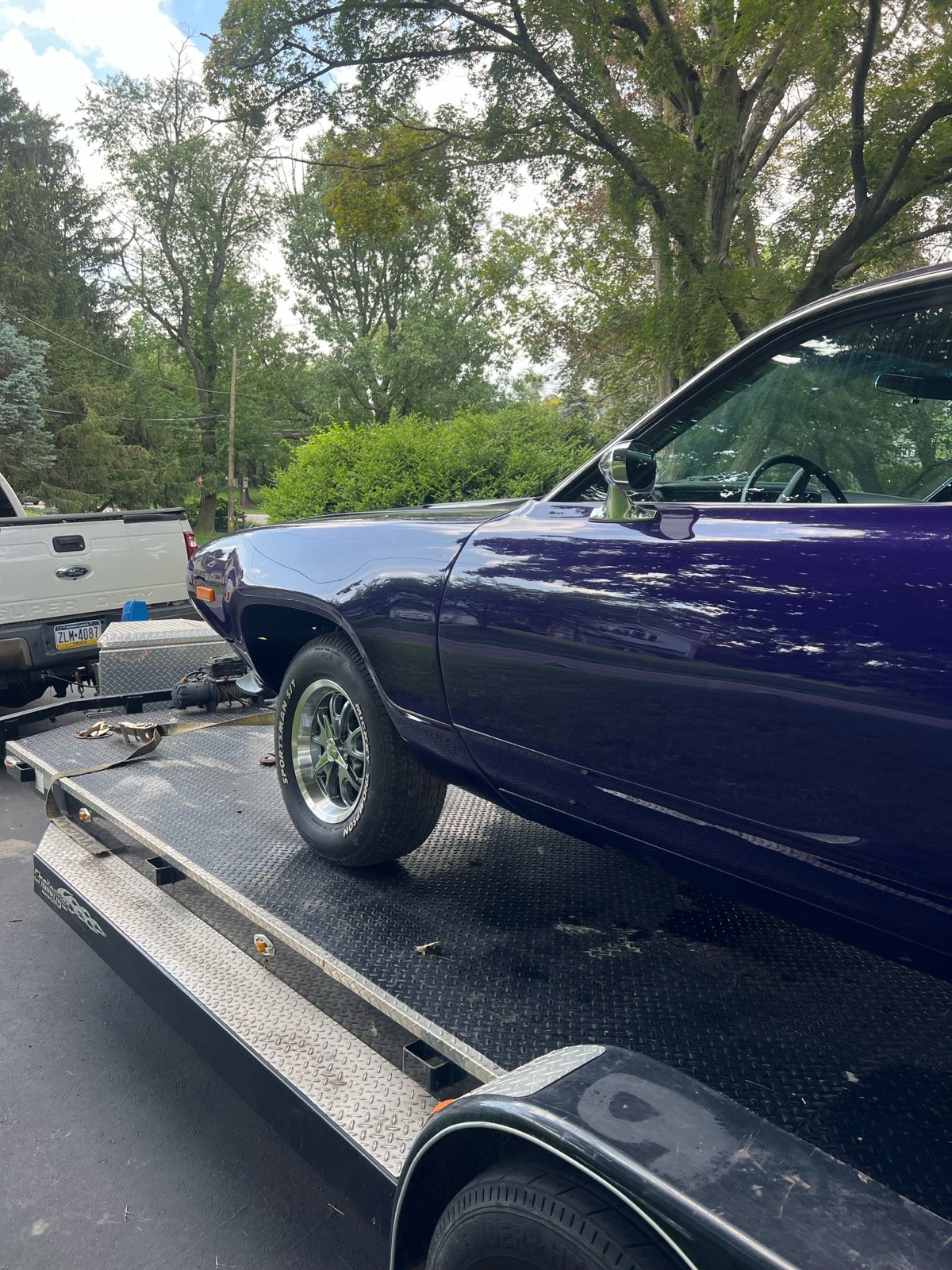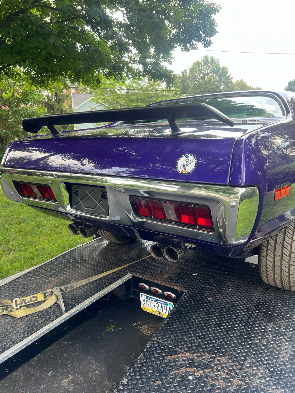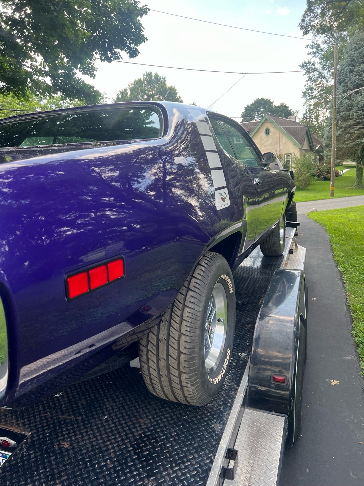 Here is a really nice driver Quality/Local show vehicle. The paint is pretty nice but has some flaws. There is one scuff on the rear quarter panel by the marker minor. The underside of the vehicle is ultra clean. 383 engine and freshly rebuilt 727 automatic brand I had the bumpers re-chrome plated it. It has a holly sniper EFI. Really makes the car run nice and even. Interior really nice with some minor flaws.