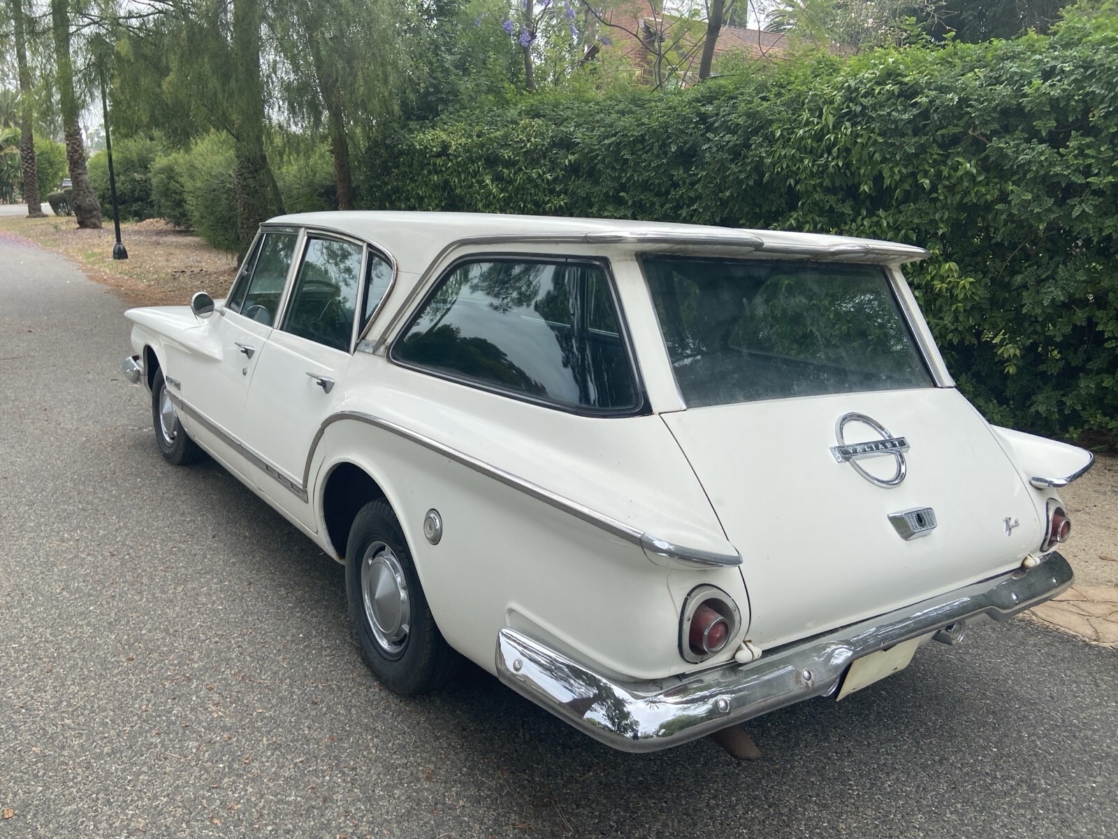 Classic station wagon, very cool/unusual body style, 225 slant six engine, push button auto tranny, ordered from factory with most options offered in 1962, as power steering, power brakes, electric rear window, windshield washer, tinted green glass, back up lights, fairly new tires and water pump, fuel cell, (original gas tank present, couldn’t find a local shop that would boil it out), in storage many years, Runs, drives, stops; Black plated (1963) California car (always in the state, front floors had some pin holes due to rust that were fixed by the previous owner, there’s one small spot of rust on rear left rocker, one more (about 3”) on inner tailgate, some on battery tray, and tiny bubbles here and there; the interior still original, door panels, rear seat are very decent, headliner/carpet will need attention, looks like one old repaint since new, factory white color, repaint looks at least 20 years old and still looks good, tranny oil pan gasket needs to be replaced, body is clean, no dents or signs of major collisions; Clean title under my name, registered in Ca. As non op, so no back fees with DMV