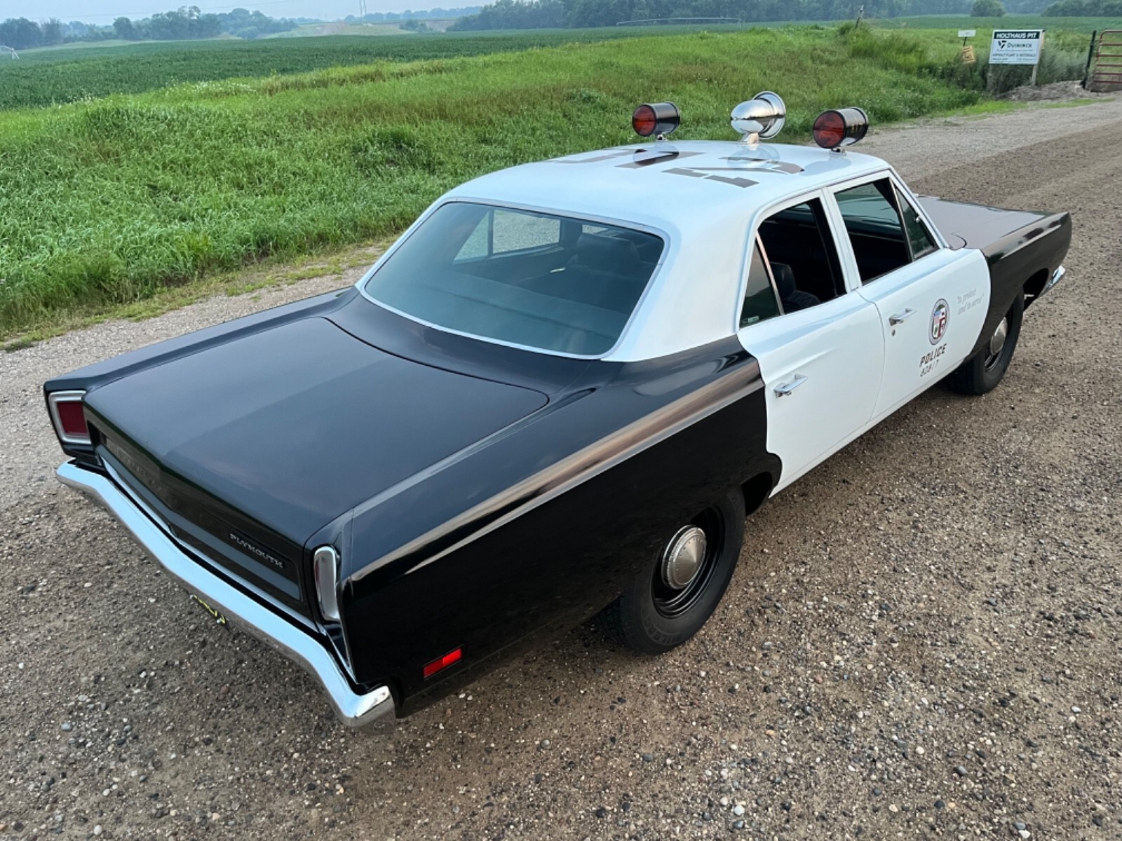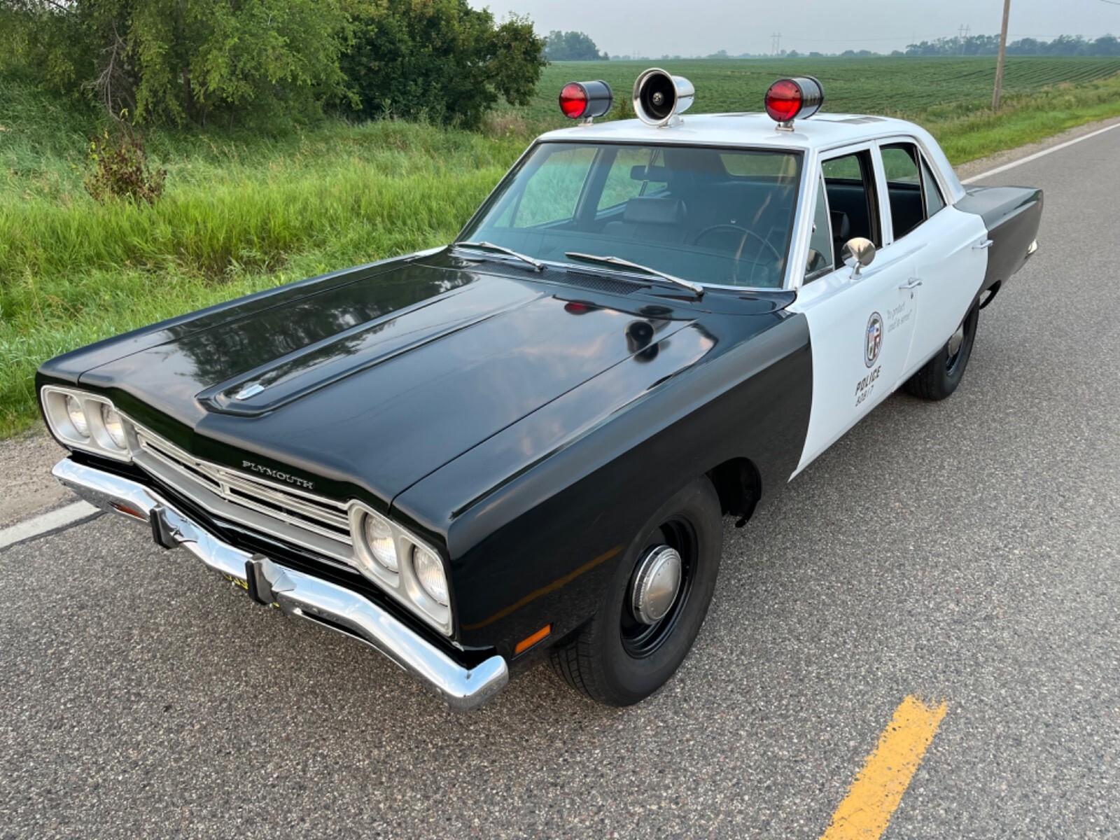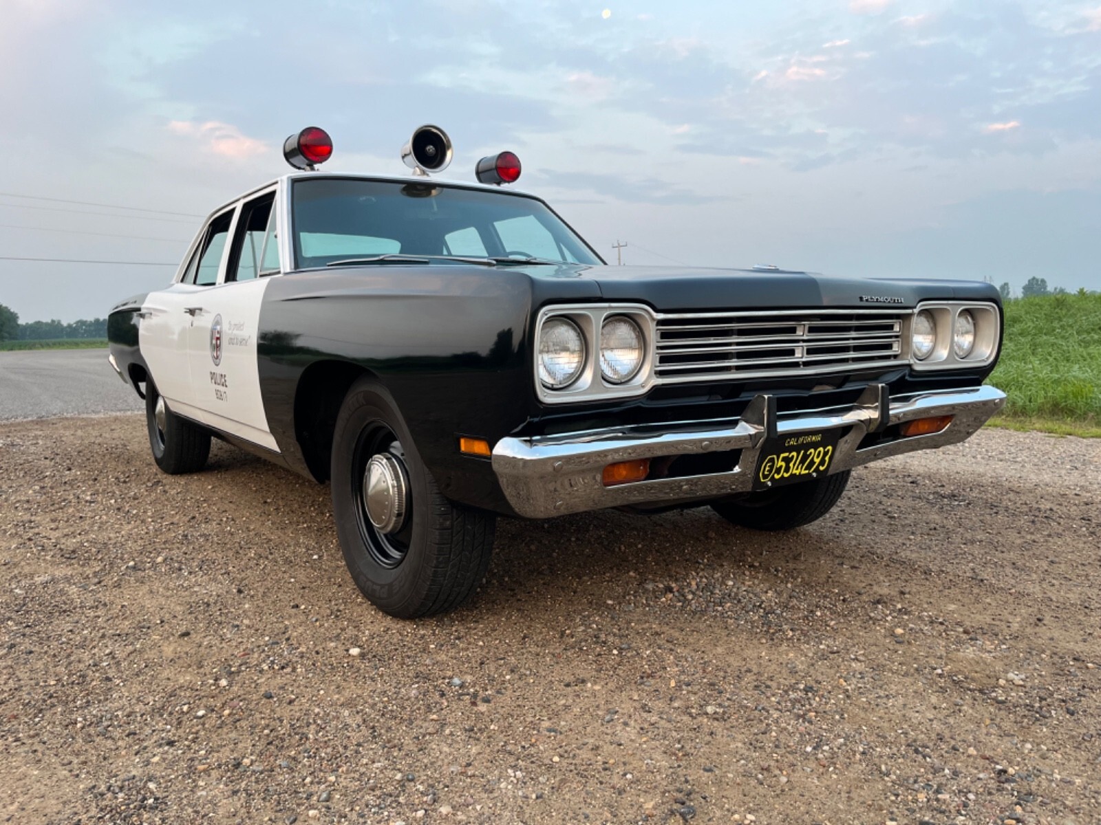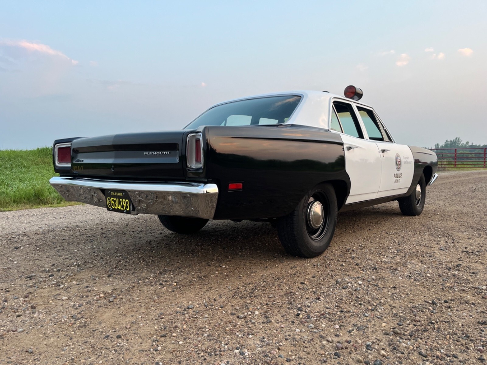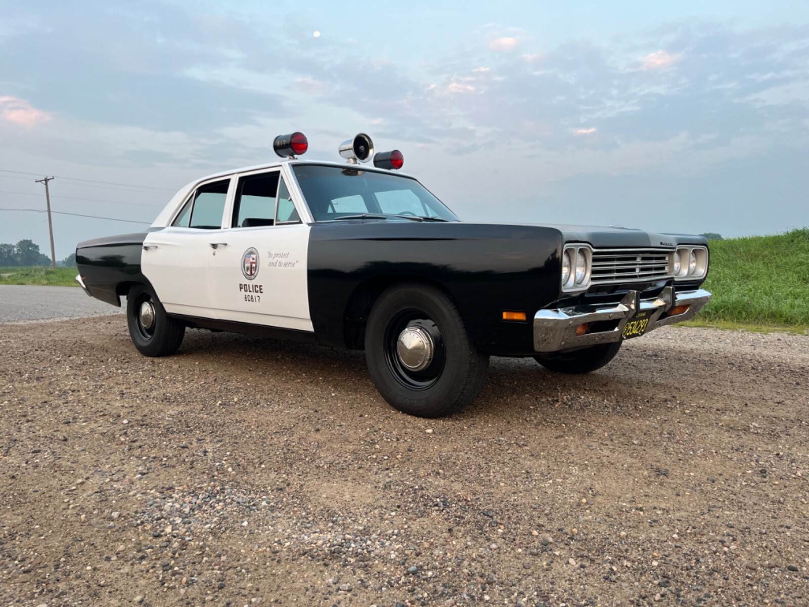 1969 Plymouth Satellite Adam 12 clone. Car has the correct decals, siren, Plymouth division hubcaps, repo trio lights, vanity plates, etc. Seating for 6 with 6 seat belts. Strong 318 with new fuel system to include fuel tank, fuel sender, fuel pump and hoses. New U joints. New brake master cylinder, wheel cylinders, lines and hoses. New carpet, headliner, trunk mat. New front and rear bumpers. The police lights and siren are not functional as the next step was to put in an under hood PA system but that is left up to the new owner. Took this to one car show and it brought more attention than any car that you could show up in besides a General Lee. Automatic transmission with power steering and also has the 26” radiator. Mint original dash pad, solid frame. Payment in cash at pick up or bank check that will need to clear before pick up. You can drive it home or I can be available to assist your shipper with pick up.