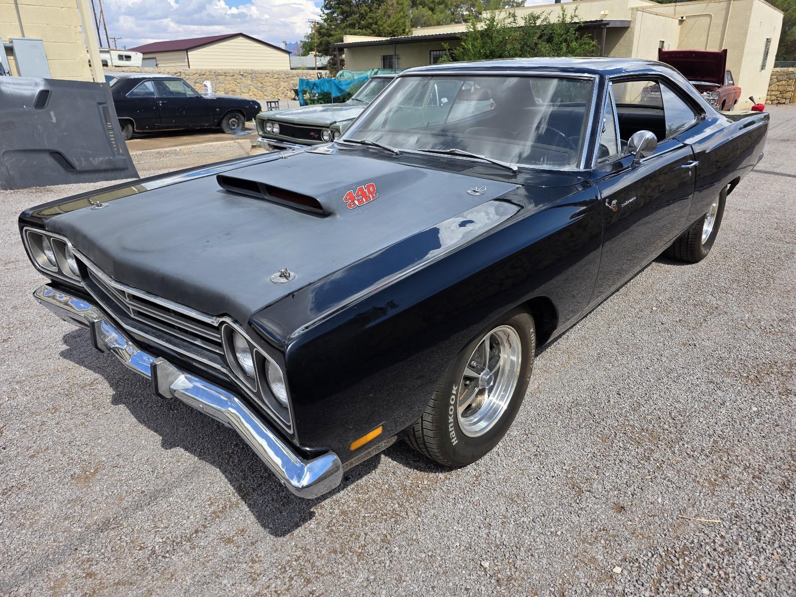 1969 Plymouth Roadrunner. 440 6 barrel, 4 speed manual transmission. Runs excellent, no funny noises or large leaks from anywhere. Has a non numbers matching forged crank 440 in it, cast date May of 1971. 4 speed and 8 3/4 rearend not numbers matching. Has 3.91 posi in it instead of Dana 60. Has reproduction fender tag. Has had bodywork on inner front fenders and both front footwells have been replaced. Torsion bar crossmember soft on passenger side end, see picture. Car was a street racer back in 70's and 80's. Only body stamp i could find was on trunk lip, see picture. Six barrel performs EXCELLENT! No stalling or loading up. Fires right up and idles right. Clutch is good, no chatter. Car has been repainted several times. Does not overheat. Steering and brakes are manual, both tight..Car is a 10 footer, has scratches and dings, etc Not a car for purists or numbers detectives I paid $72k for this Roadrunner several years ago, im going to lose tens of thousands of dollars! I'd drive this car anywhere, hiway driving us a bit of a chore with the 3.91 gears! Titled in my name. Cash or bank wire only, no trades. Bidders under 20 perfect bids will ne canceled unless you call me first. Sold AS-IS. Call John at 575-528-8786.