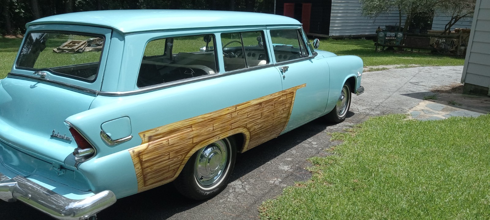 This is a Rare 1955 Plymouth Plaza 2 Door Suburban Sation WagonToal restoration in the early 1990's I have a picture book of the restoration processCar is a daily driver it has some flaws and scratches in the paint, but nothing majorOriginal L6 Flathead Engine with 3 on the tree manual transmissionUpgraded electrical to 12 volts with alternatorNew Aluminum RadiatorHEI Distributor, so no points to mess withAll new wiring harness with modern fuse blockPioneer stereo systemNew TiresFront disk brakes with rear drums, new Master cylinderBrakes work, but need to adjust them has some play in peddleInterior in good condition no tears or damageRuns down the road at 65 Mph great gas mileageShow winner at several eventsI have a Brand-New Set of window seals for the rear windowsComes with 3 totes full of extra partsTruly a one-of-a-kind car, I just don't use it like it should be usedAsk questions if you're interestedI can assist in loading