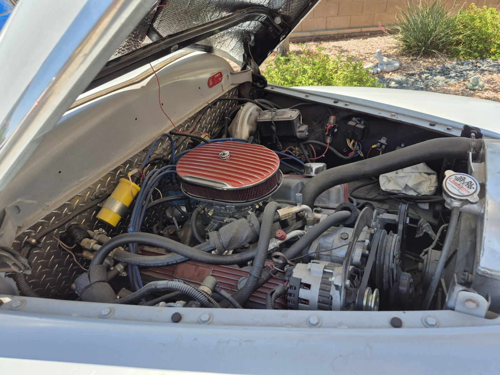 Project car, needs completion. Rebuilt engine and transmission, vintage air conditioning, front end and steering rebuilt. Power windows installed without glass, glass included. Power front disc brakes. Wiring harness new, damaged under the dash in theft attempt. Passenger side windshield frame slightly out of alignment, has lexan sheets to be fitted. Fuel system needs cleaning