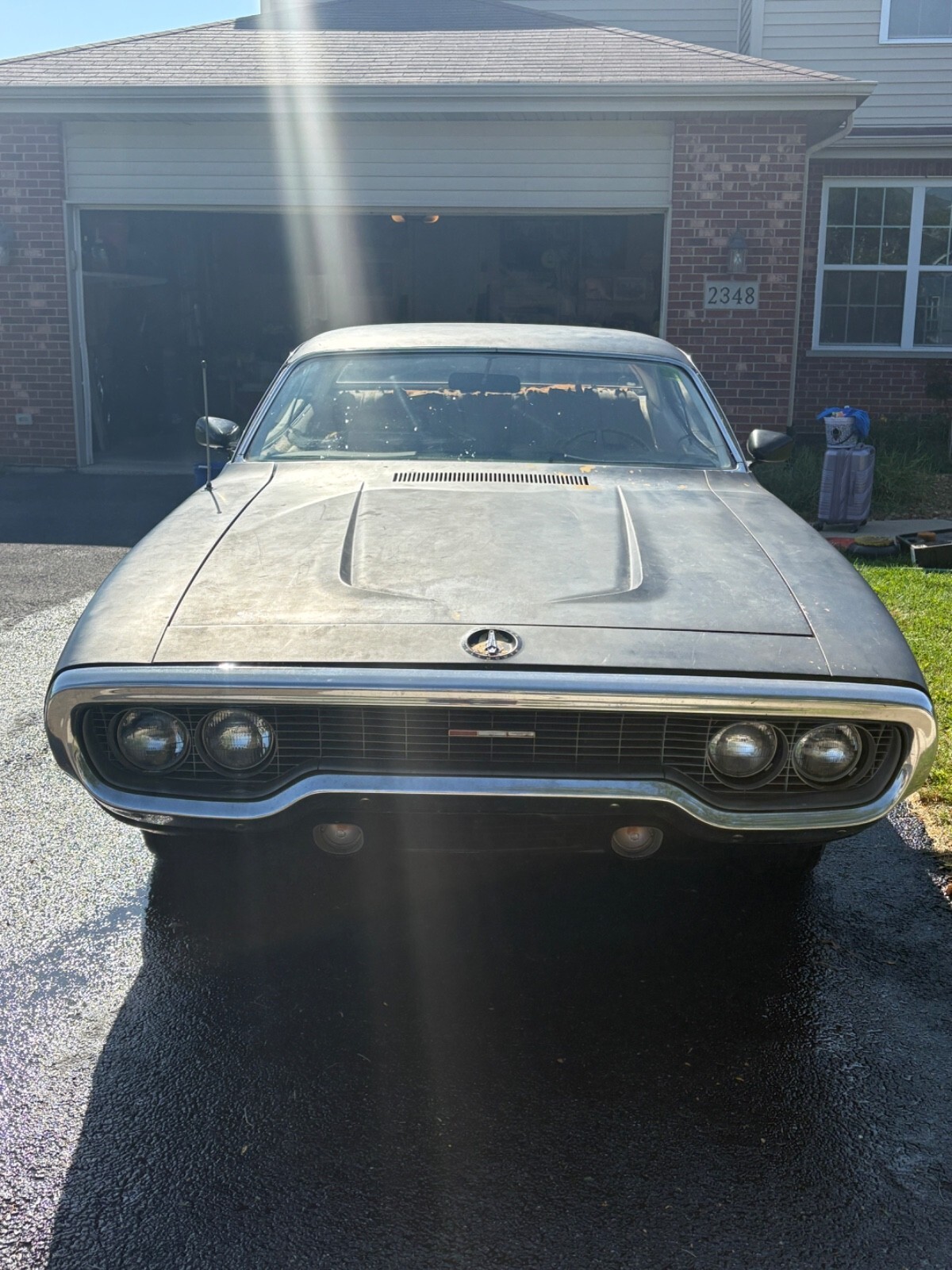 1971 Plymouth Satellite Roadrunner. Garage kept. 318 cubic inch engine. Numbers matching. Build sheet included. New Carpet. New Headliner. Runs well. New Lenox. IL