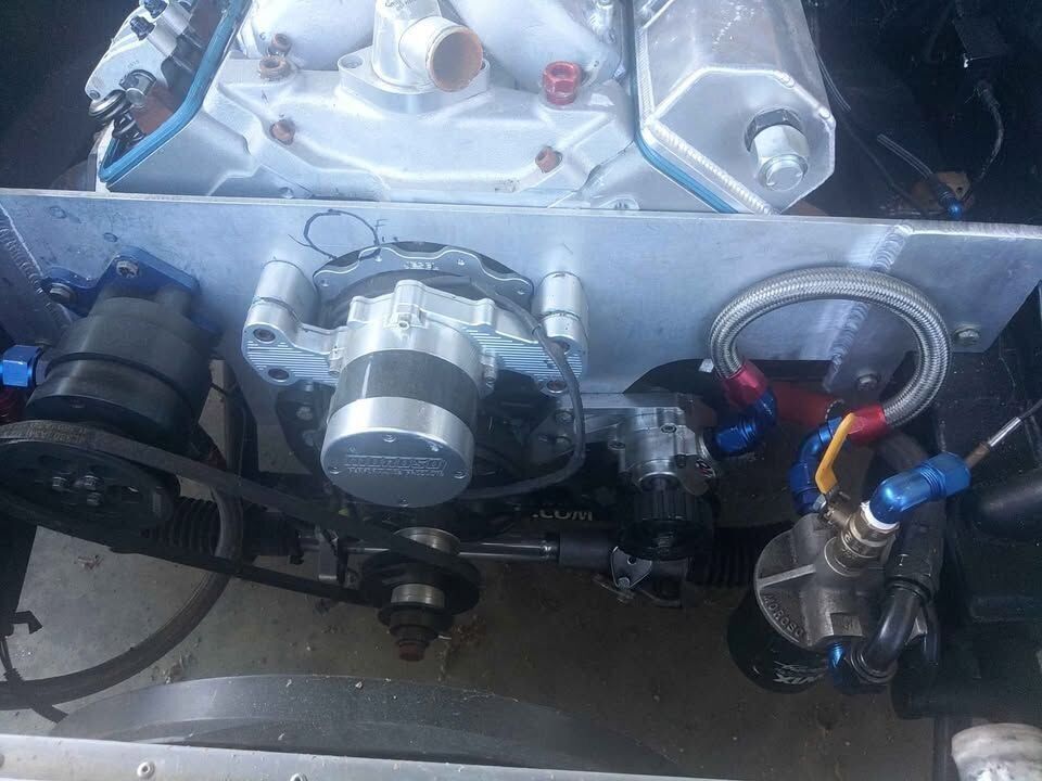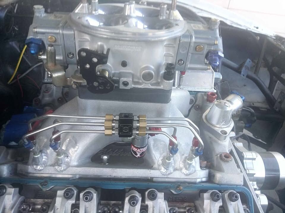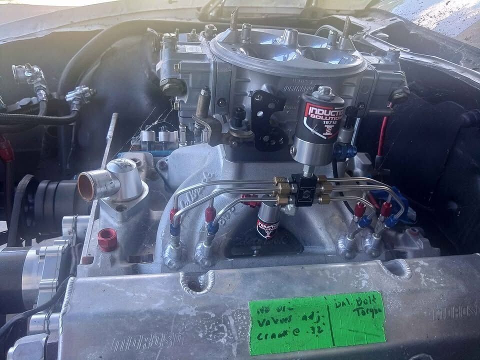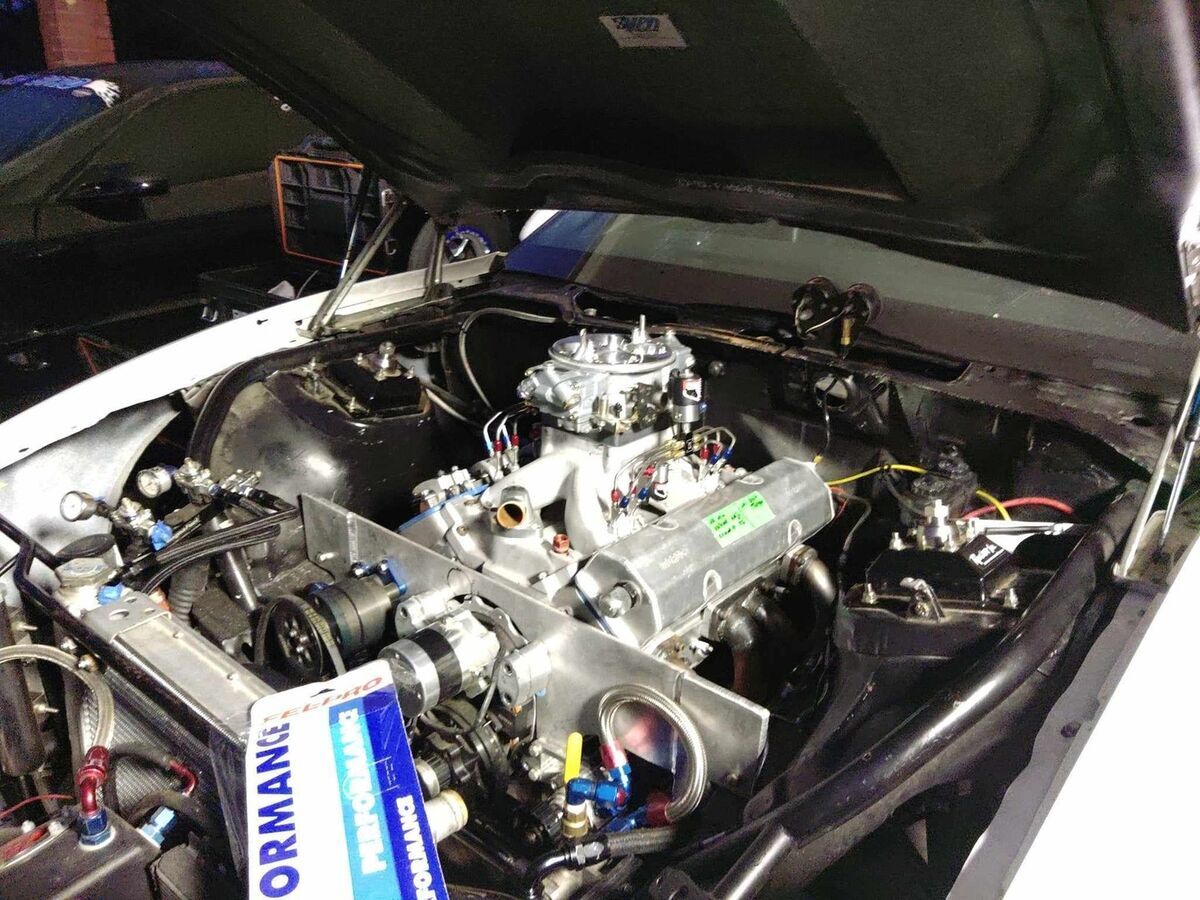 Engine: a newly built 447 cubic inch Small Block Chevy engine with 18-degree aluminum heads, a new 1150 carburetor, and intake for improved air-fuel mixture.