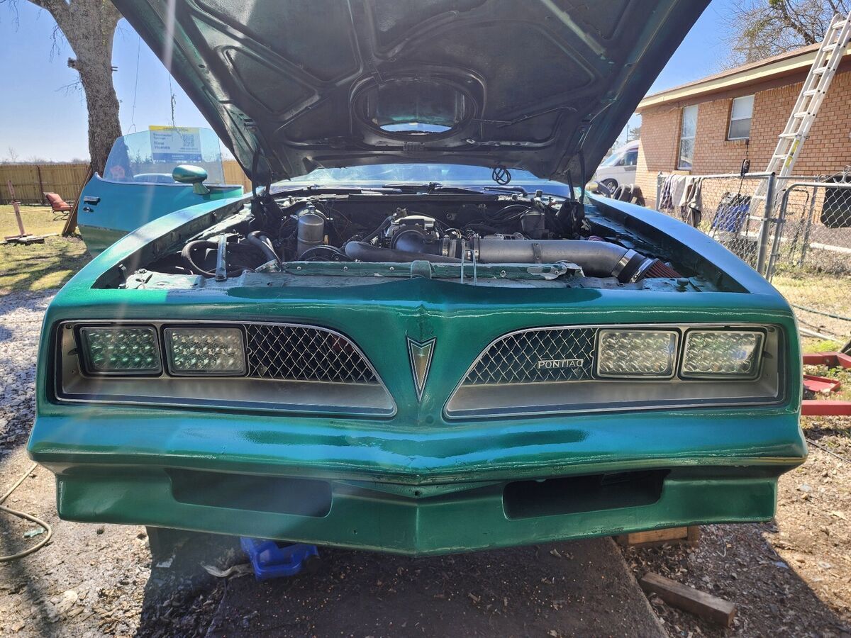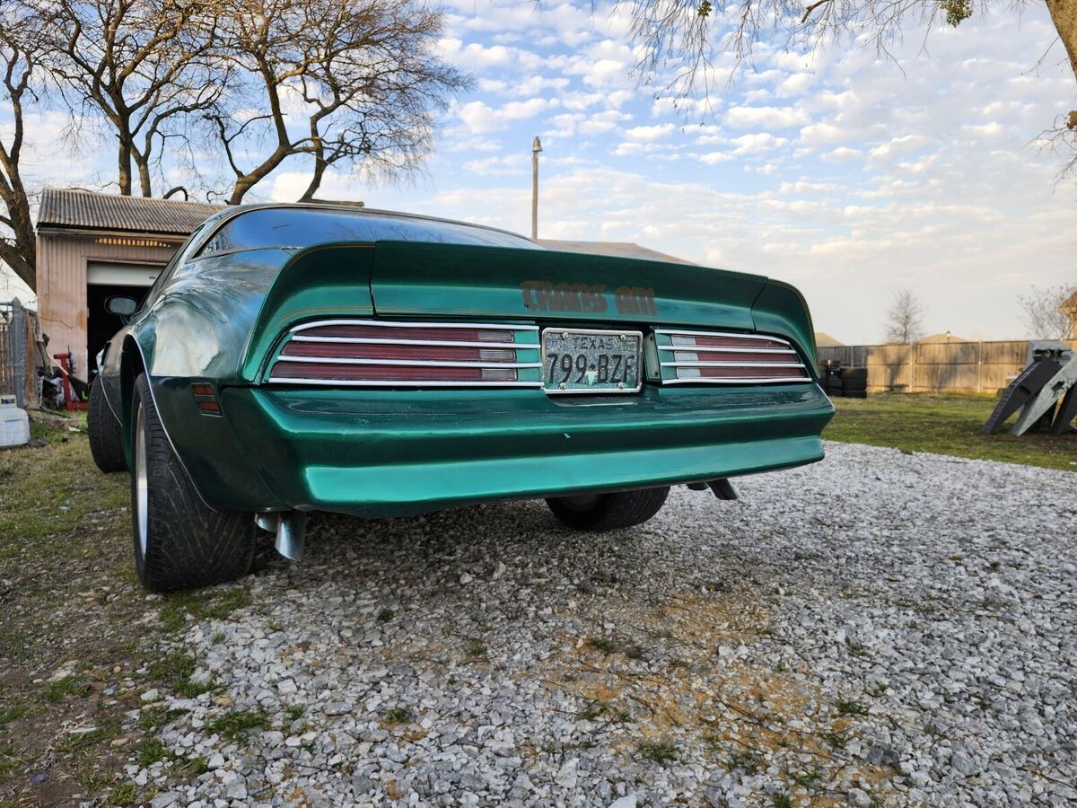 Vehicle was acquired about 10 years ago. Was black primed, and painted at home without body work. I painted it Emerald Green with good intentions but bad results. original color was possibly brown. Original Engine 400 (pontiac) was seized short block was sent to be rebuilt and was lost. The rest of the drivetrain is still with me and included with purchase. Currently running a low miles 5.3L LS Has a rebuilt transmission 4l60 none electric, 17" honecomb wheels year one, brake lines, floor deadening, carpet, fuel lines, all lines have been replaced, new front end, joints, LED headlights, interior green lighting LED etc... most everything has been done. Still needs some FAN cables and small parts connected, NEEDS a trip to the mufler shop to weld pipes, have original open Texas clear title in hand. Plz ask if need more info.