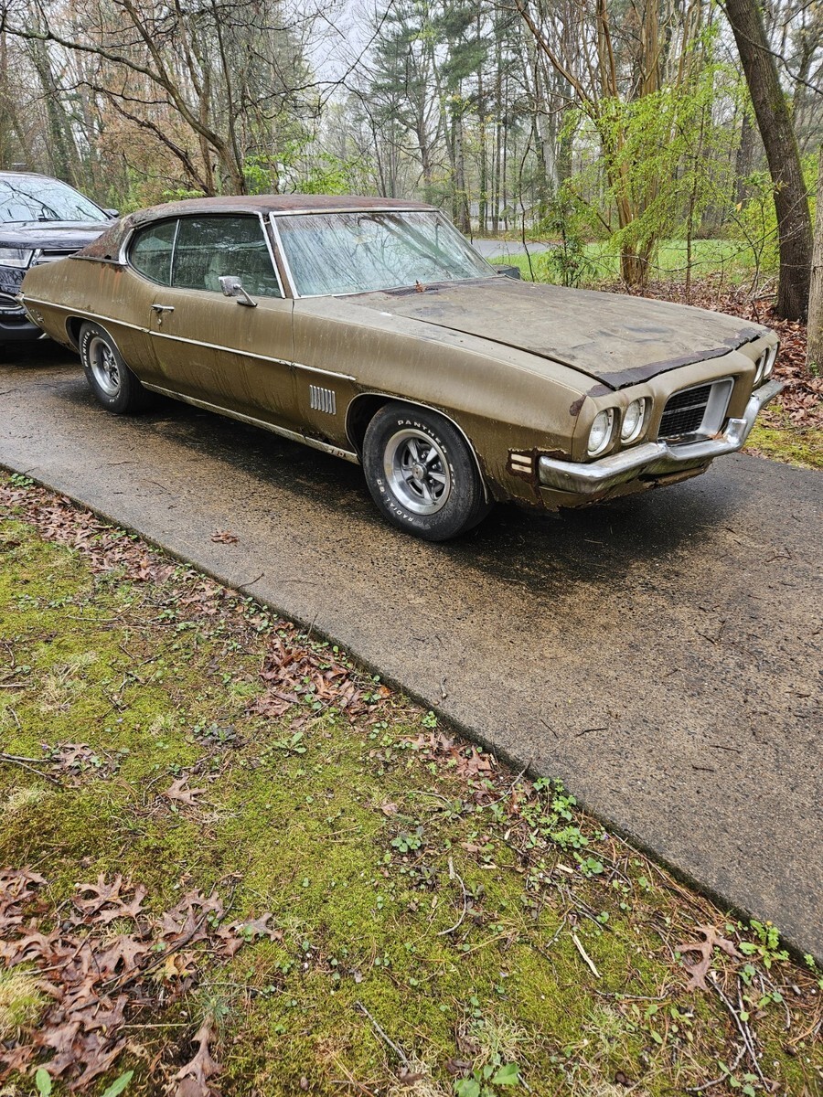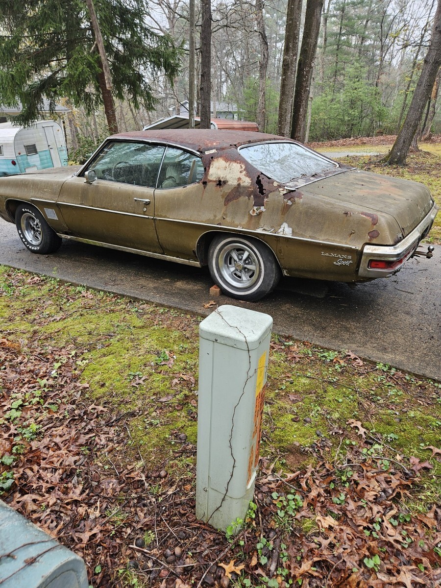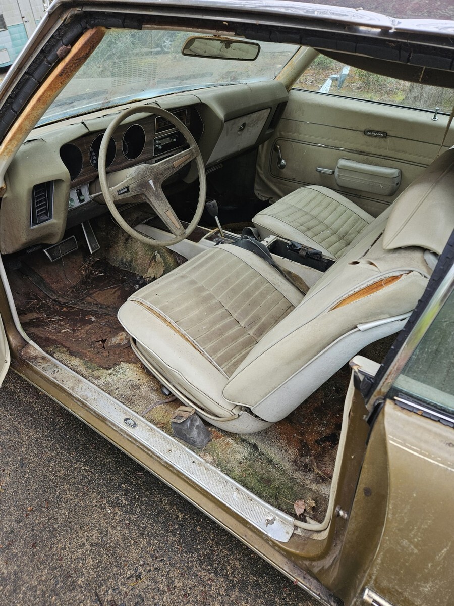 1971 LEMANS SPORT 350No reserve bid to buy!!70,000 miles.Features bucket seats, console floor shifter. Same interior as gto. Car has power disc brakes, power steering,rally wheels. Vynal top mouldings, wheel opening mouldings. Tinted glass, air conditioning complete setup. Car has sat since 1992, I rebuilt carb, new fuel pump, changed oil. and got the engine running from a gas can. Runs great! Quiet and smooth. There is no brakes, so I couldn't drive it. The body panels are rusty, the car is an ambitious restoration, or great parts car. The frame looks solid, doors are decent. Header panel grills are nice, front bumper good.. Rest panels will need replacement.I do not have a title, it was lost by the previous family. Would need to bond it. I can meet your transporter, get the car where it can pucked up easily.I would prefer to sell the whole car, as I don't have time and space to part it out. I'm sure it's worth more in parts.Ask questions....