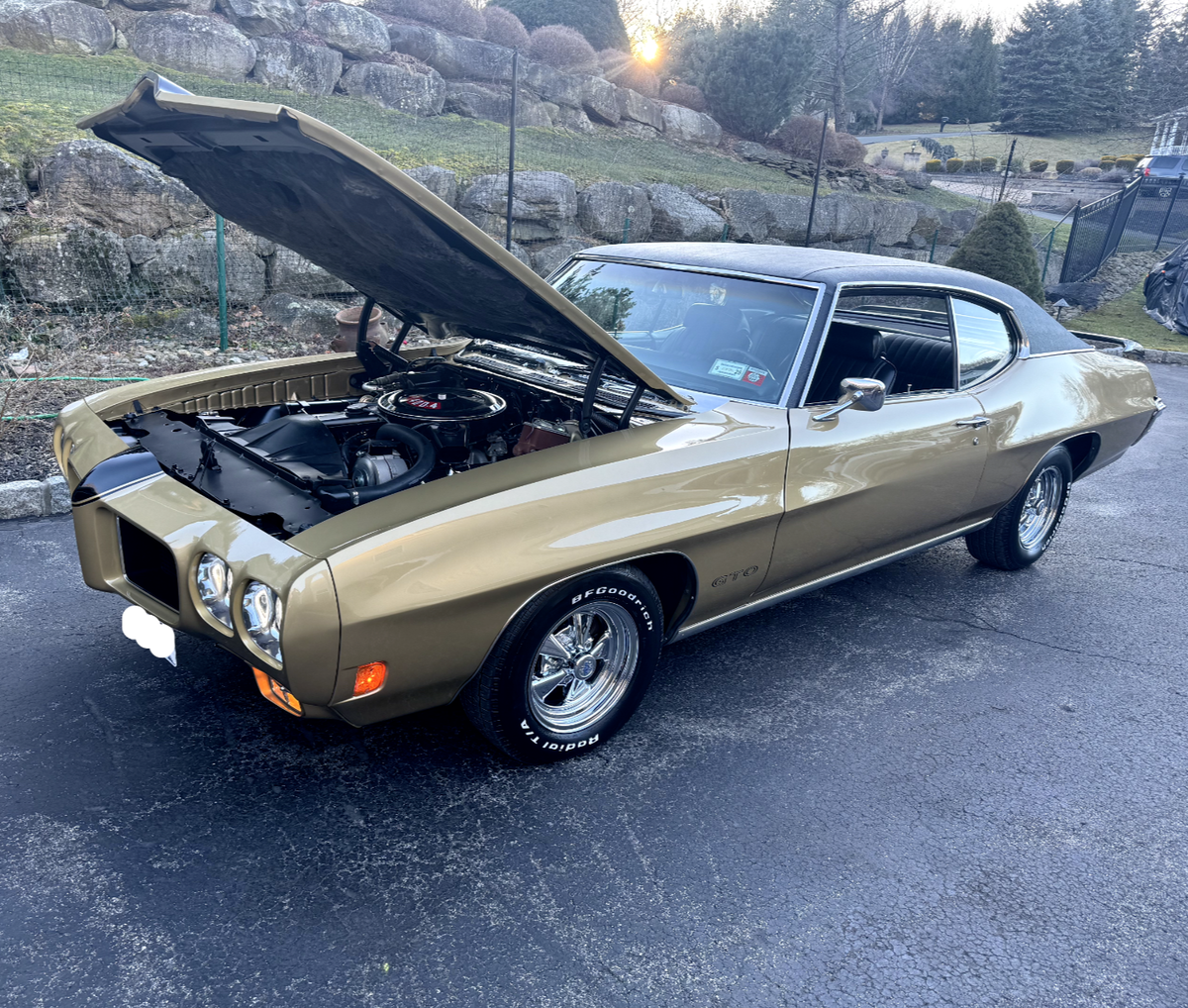 ???? Upgrades / New ComponentsPlease note that the pictures featuring the black rear spoiler were taken after the body upgrades were completed. • New front and rear windshields. • New alternator • New power steering • New battery • New brakes & calipers • New windshield wipers •New Cragers and radial tires (tires with less than 75 miles of use) •The package also includes the factory rims, factory front disc brakes, and modern tires that were originally part of the car.???? Additional Features:• The original owner’s manual is included. • The chassis is in pristine condition. • Rebuilt transmission with original matching numbers.This GTO, with only one previous owner, comes with a meticulously kept collection of maintenance and restoration receipts. After an exhaustive year-long search, I found this meticulously restored model to perfection. Unfortunately, space constraints and limited time prevented me from fully enjoying it, so I’ve made the difficult decision to sell it. This rare opportunity presents the chance to own a piece of automotive history that has been meticulously cared for as if it were a cherished family member.???? Pricing & PaymentPrice:$68,500 – A premium price for a premium car! Recent sales of 1970 GTOs in similar condition have ranged from $70,000 to $88,000 (2024). Open to reasonable offers from serious buyers.