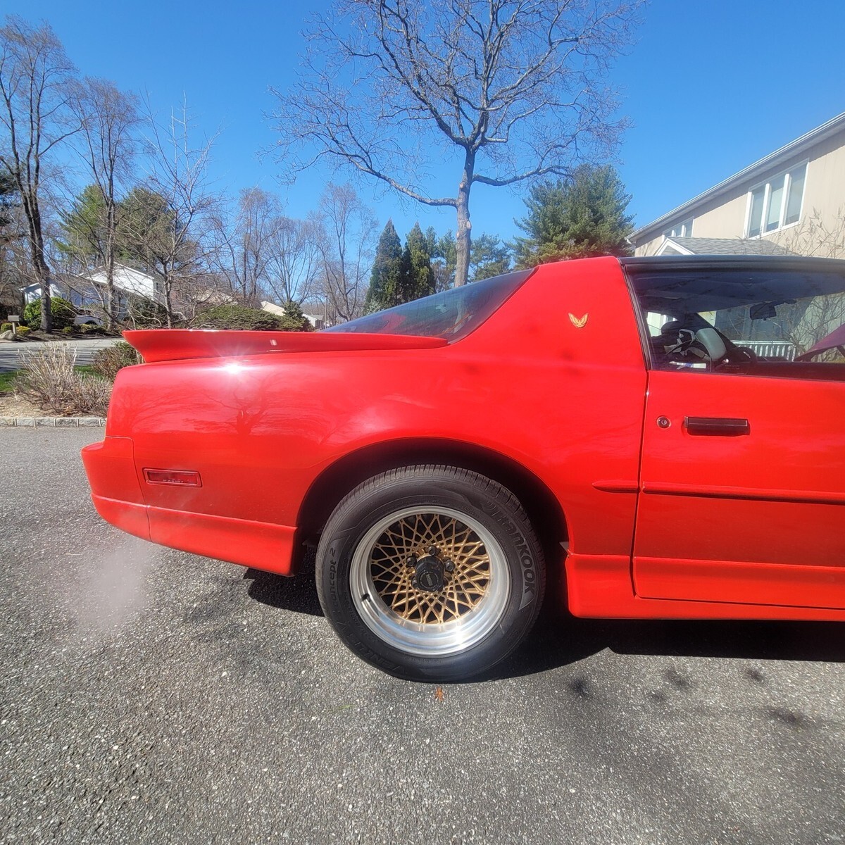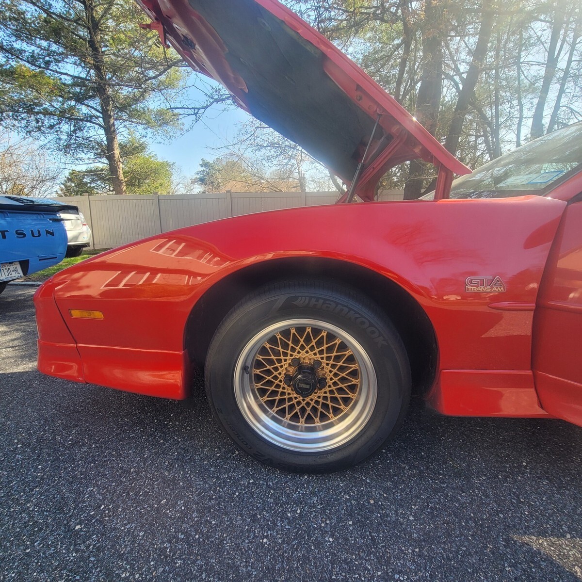 1989 Pontiac Trans Am GTA, 5.7 liter V8, 5 speed manual swap with 98,000miles. This car has everything going for it, stunning red paint, T-tops, exhaust system, gray leather interior, WS6 suspension, disk brakes, and more. The 16" gold spoke wheels are a square set up so the fronts have a wider dish to fill out the wheel well. The most interesting modification is the 5 speed manual swap. This car only offered a manual on the 5.0L but this car has the 5.7L w 5 speed matched up for a perfect package.I just had new injectors and plugs installed along with a new mass air flow sensor, new brake pads, new tires, new ball joints, new coolant tank, and new headlight motors, new AC compressor, new alternator, new battery. Known issues are a small leak from the rear differential i just haven't gotten a chance to fix it before i decided to sell. The car drives very tight and has plenty of pull, the aftermarket exhaust has a nice tone and you can actually enjoy the V8. It's definitely a head turner, there are no blemishes in the paint, the wing is not cracked, all of the rubber gaskets are in great shape and no leaks. Garage kept and looking for a new home. I can assist with arranging shipping if you're not local.