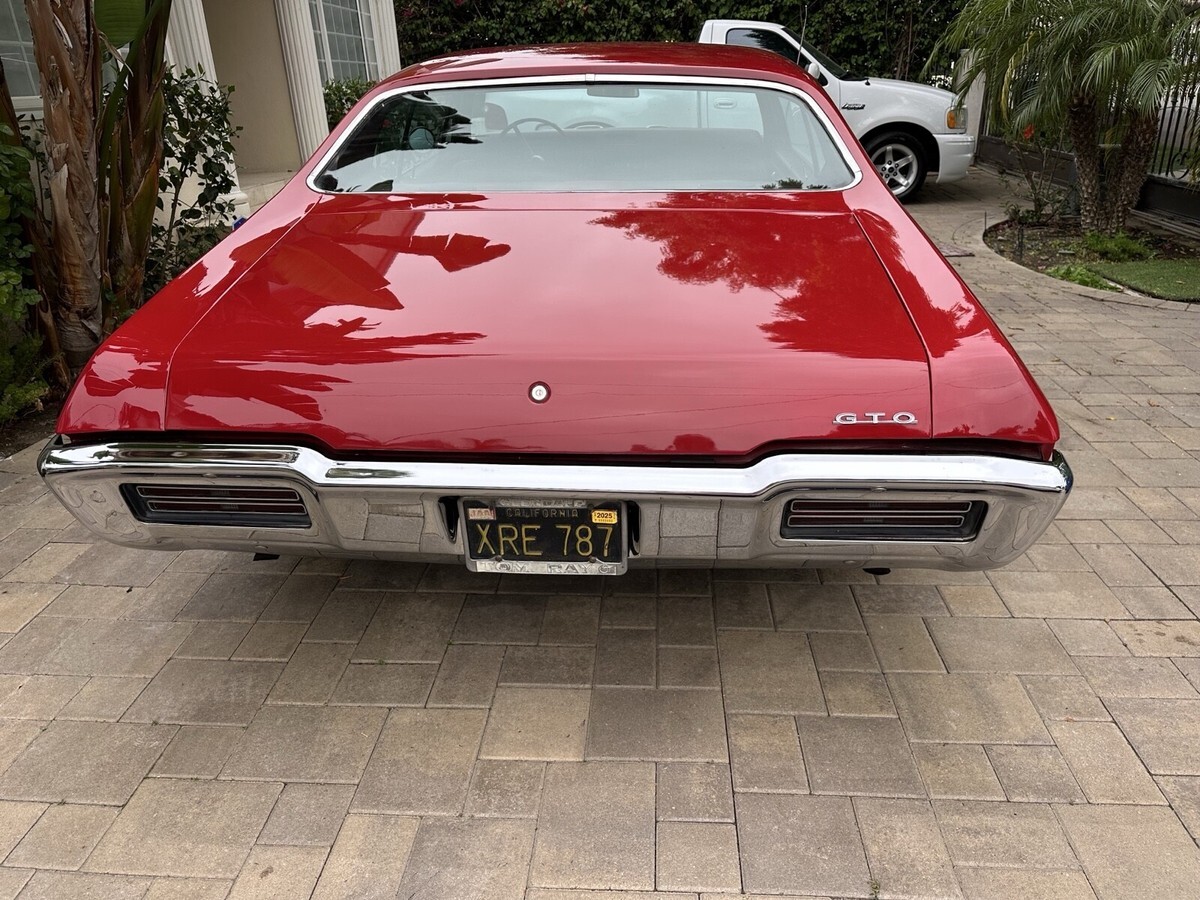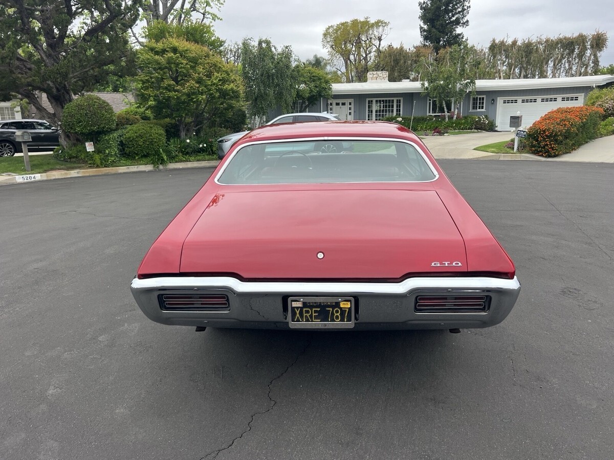 1968 Pontiac GTO, matching number 400 automatic with his in her shifter power steering power brakes factory AC original factory red on red car The paint is very nice. The body is straight All Original body panels. Clean underside with no rust. Original rally II wheels. With a set of brand new BF, good rich radial TA tires All the chrome and trim is good. All the glass is good no cracks The interior is mostly original and is in great shape . The car was purchased at Tom Ray Pontiac in Glendale, California. Has been a local car since original California black plates runs and drives great if you have any other questions or would like to look at Message me thanks