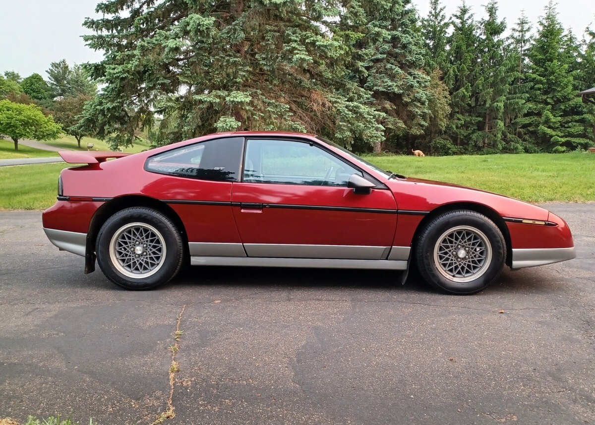 1987 Fiero GT with the most desirable drivetrain combination of the V6 & 5 Speed Manual . Only 54,xxx Original Miles (Carfax verified) Only driven 3k miles over last decade. I bought it only a month ago from the estate of the 74 year old previous owner. I've only put on about 100 miles.Runs/drives very well. Starts right up and runs smoothly, no engine lights. Well equipped car with many options including AC, Cruise Control, PW, PM, Remote trunk release, etc. Still looks good, but sat outside for many years & has clearcoat fading/peeling on horizontal panels. Interior decent, but driver's seat has some mended tears and headliner sags in a couple spots. In-person inspections are welcome, and encouraged. A picture may be worth a thousand words, but an in-person inspection is worth a thousand pictures. The video makes the car appear kind of orange-ish in color, but it is the original Fiero maroon color. We are being affected by the Canadian fires right now with smoke and haze in the air, and I think that is causing the video to looking orange-ish. Many areas underneath had some corrosion (even though it wasn't driven much it was still a Wisconsin car) and several areas were wire brushed and had Eastwood rust encapsulater and rust preventative paint applied. Tires like new. Battery 1 yr old. Fresh Mobil 1 oil change. Includes 100s of $ of new parts; 3 new rotors (1 already installed), stainless brake hoses, brake covers & repair manual. Aftermarket (Pioneer Stereo/CD). More pics and videos can be sent if interested.Why is it priced so low? The aforementioned problems plus the parking brake doesn't work & AC not cold.Selling because I need something slightly bigger, this car is too small and low to the ground for my aging body (with back and shoulder issues) to get in and out of.PLEASE, do not waste my time (or yours). I'm happy to answer questions from serious perspective buyers. Clean WI title in my name. Located in Hudson, WI (about 20 minutes east of St. Paul, MN).