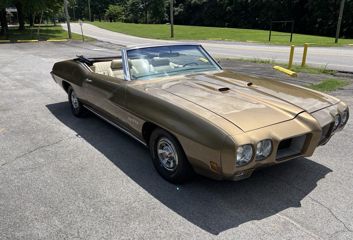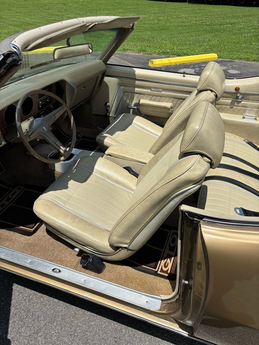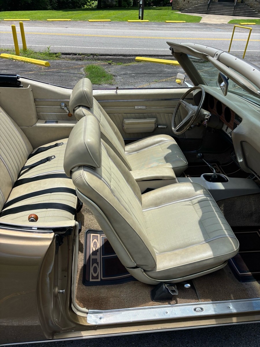 Selling my highly original, 1970 GTO 4 speed convertible. True GTO! All numbers matching! I am only the second owner of this beautiful car, the first owner purchased it new in November of 1969,and I still have the receipt(pictured) along with many other documents. This is a rare car being a 400, 4 speed manual convertible. From what I have found online there were only around 1,200 GTO’s built in 1970 with a 4 speed manual transmission, and the 400 engine. This car has only 91k miles, was always babied, and garage kept. It is still the color it was from the factory “Granada Gold”, the paint almost changes in different lighting from gold to greenish to brownish, and gets compliments all the time. The interior, like the exterior is in great shape, and it has an upgraded Bluetooth stereo and upgraded speakers so you can enjoy your music while cruising with the top down. The power top works great and is in great condition. Lights, horn, gauges… etc all function. As you can see from the pictures underneath, this car is solid and not rusted out. The underside is really as solid as the pictures look. It has never even been coated like a lot of people do to cover the underside of their classic cars. The trunk has a few brown discolored spots, but most of the factory green trunk coating is still intact. You can just get in and drive this car anywhere. It runs great, shifts smooth, rides smooth, and it cranks right up. I don’t really want to sell the car but another investment opportunity has come up, so if it sells, I will do that, but if not, trust me, I’ll be happy to keep it. It is a blast to drive, gets looks, waves, and thumbs up everywhere I drive it. I am asking 53k or feel free to make me an offer. You will not find a better condition, better running and driving, 4 speed 1970 GTO convertible for this price. Clea, clear TN title in hand. Please message me with any questions or offers. 615-972-1118 Thanks.