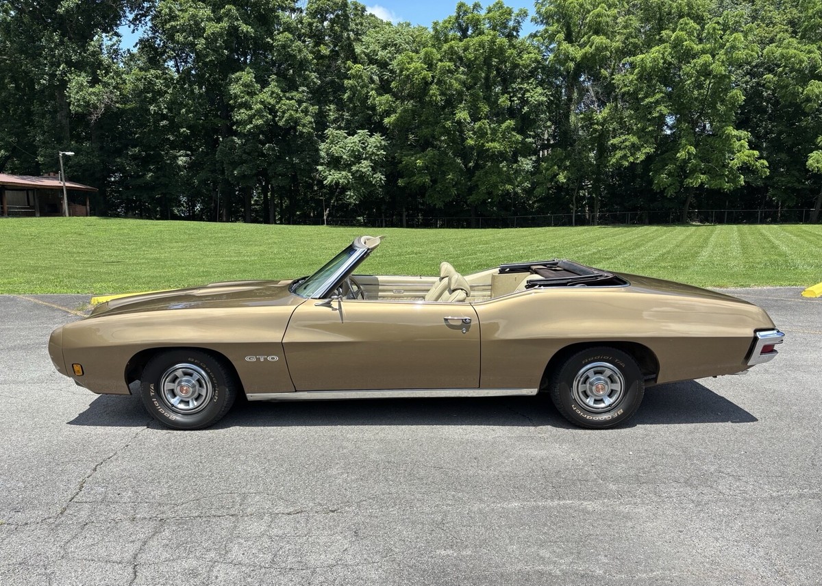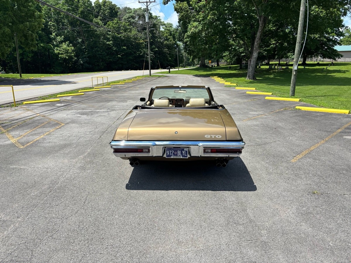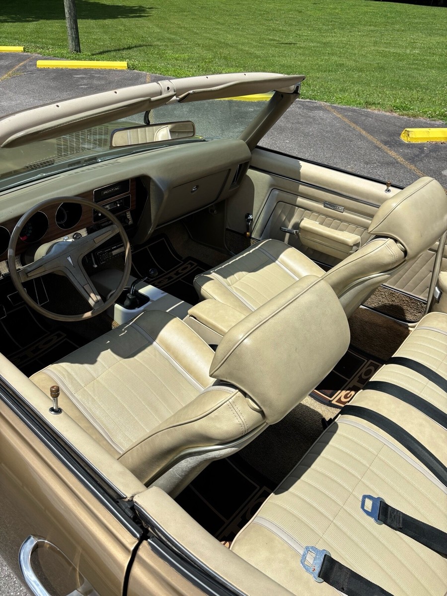 Selling my highly original, 1970 GTO 4 speed convertible. True GTO! All numbers matching! I am only the second owner of this beautiful car, the first owner purchased it new in November of 1969,and I still have the receipt(pictured) along with many other documents. This is a rare car being a 400, 4 speed manual convertible. From what I have found online there were only around 1,200 GTO’s built in 1970 with a 4 speed manual transmission, and the 400 engine. This car has only 91k miles, was always babied, and garage kept. It is still the color it was from the factory “Granada Gold”, the paint almost changes in different lighting from gold to greenish to brownish, and gets compliments all the time. The interior, like the exterior is in great shape, and it has an upgraded Bluetooth stereo and upgraded speakers so you can enjoy your music while cruising with the top down. The power top works great and is in great condition. Lights, horn, gauges… etc all function. As you can see from the pictures underneath, this car is solid and not rusted out. The underside is really as solid as the pictures look. It has never even been coated like a lot of people do to cover the underside of their classic cars. The trunk has a few brown discolored spots, but most of the factory green trunk coating is still intact. You can just get in and drive this car anywhere. It runs great, shifts smooth, rides smooth, and it cranks right up. I don’t really want to sell the car but another investment opportunity has come up, so if it sells, I will do that, but if not, trust me, I’ll be happy to keep it. It is a blast to drive, gets looks, waves, and thumbs up everywhere I drive it. I am asking 53k or feel free to make me an offer. You will not find a better condition, better running and driving, 4 speed 1970 GTO convertible for this price. Clea, clear TN title in hand. Please message me with any questions or offers. 615-972-1118 Thanks.