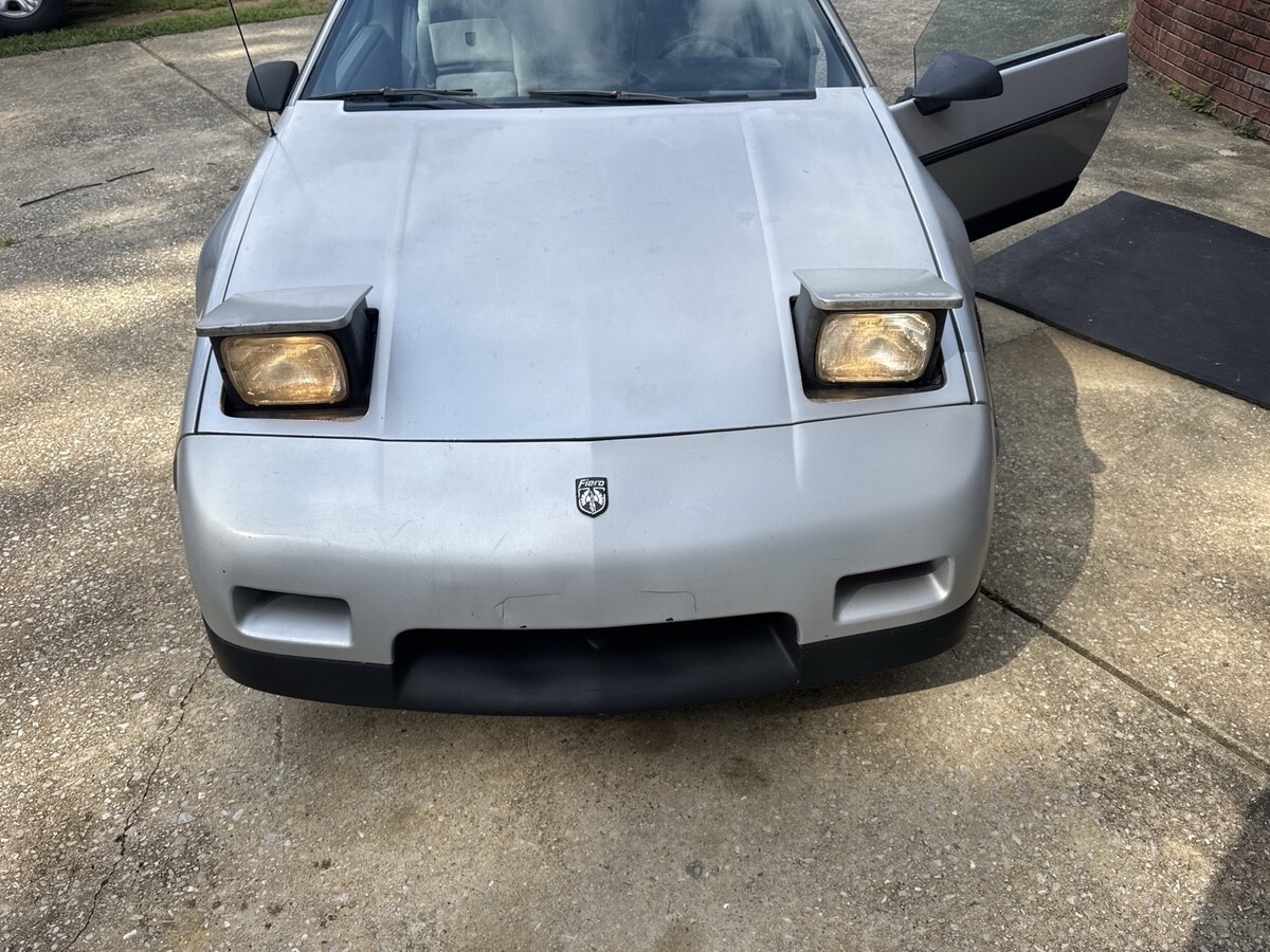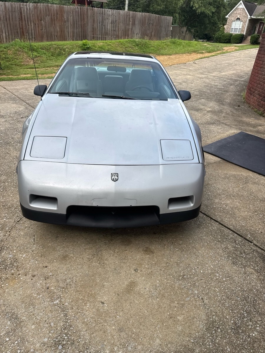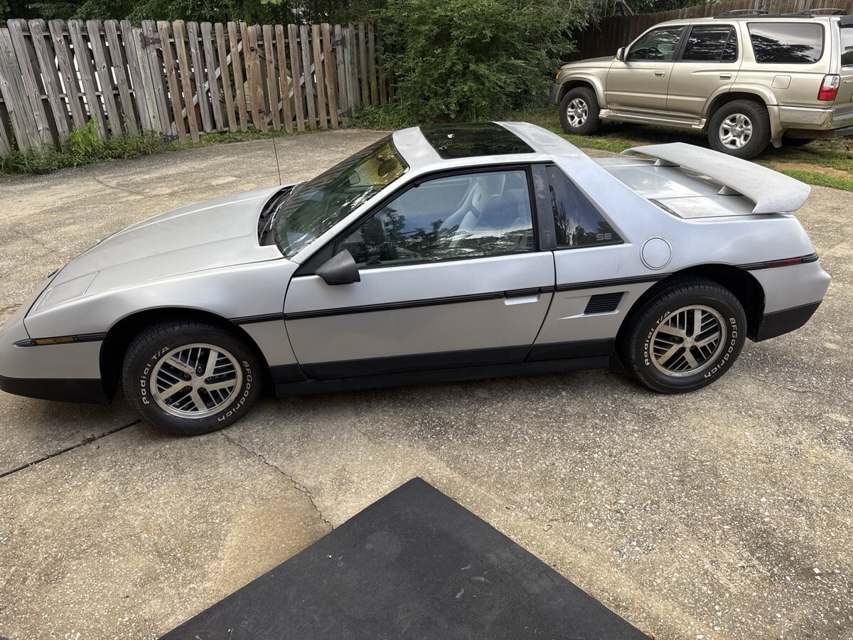 1986 Pontiac Fiero 2M6, V6/4 speed/ac/pdb/ps. new battery. The little car runs and drives. I have driven it 70 miles on the interstate with no issues the air conditioner blows cold. The gas gauge may need a sending unit is showing full. The rest of the gauges, work, speedometer and tachometer as well. The car needs paint some exterior weatherstripping probably will need a cable for the hood latch. I have not tried to latch and lock it as I’m afraid I might not be able to get it unlatched. The tires don’t look like they have many miles on them at all. The car is solid, rust free, and would be a good candidate to just restore build a Lamborghini kit car like a lot of people do I have no idea what the kits cost. They’re probably expensive, or just drive as is. I have not seen any kind of oil leaks or fluids. It does have a exhaust leak. I can hear. I was told these have Muncie 4 speed transmissions. It shifts out good clutch feels good. Brakes are a little spongy. It has had some money spent on rebuilding some of the front end including calipers and pads. This vehicle will be sold with a current registration and a bill of sale. Alabama does not require vehicles over 35 years old to have titles. Feel free to call or text before bidding Dalton 205337445Seven.
