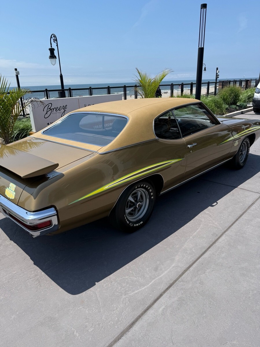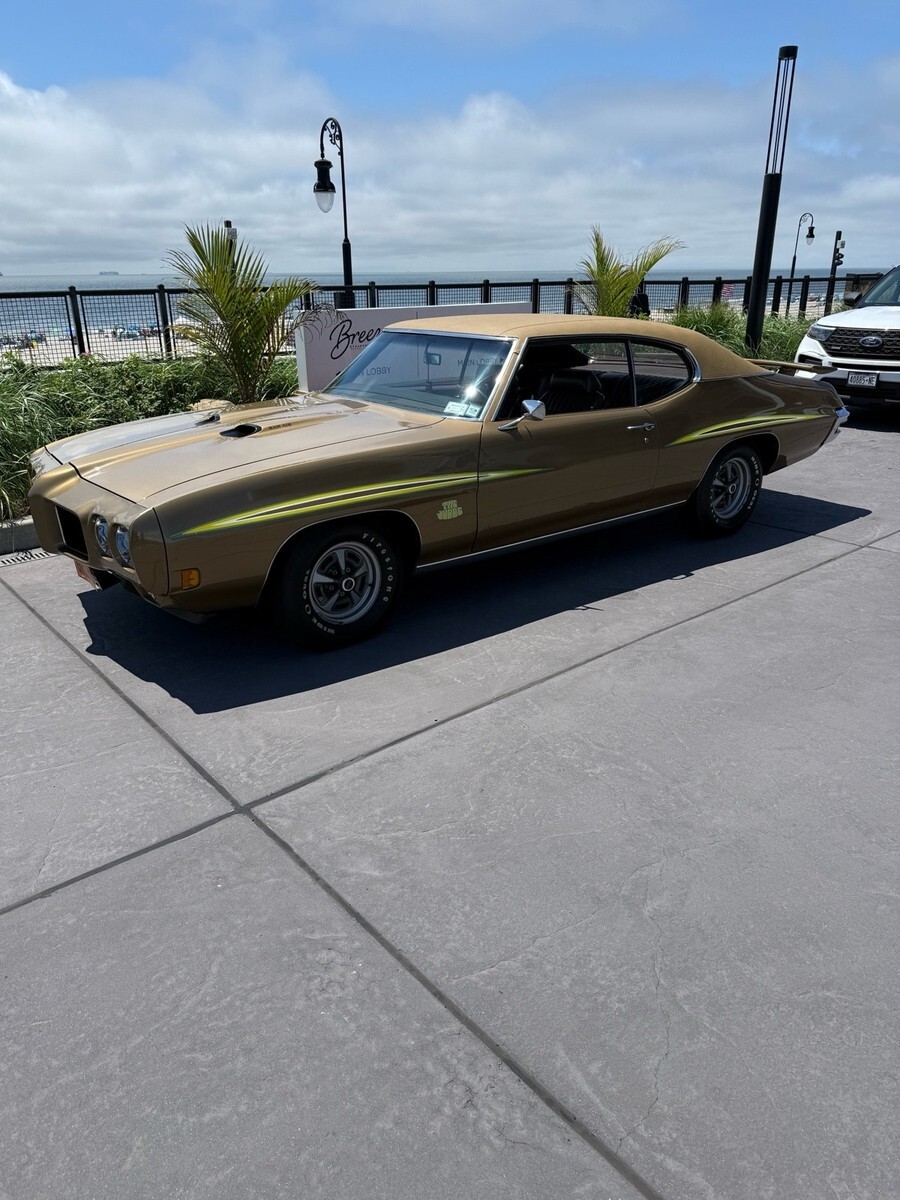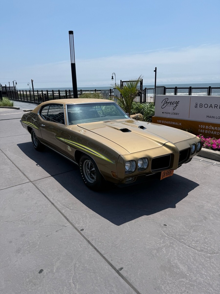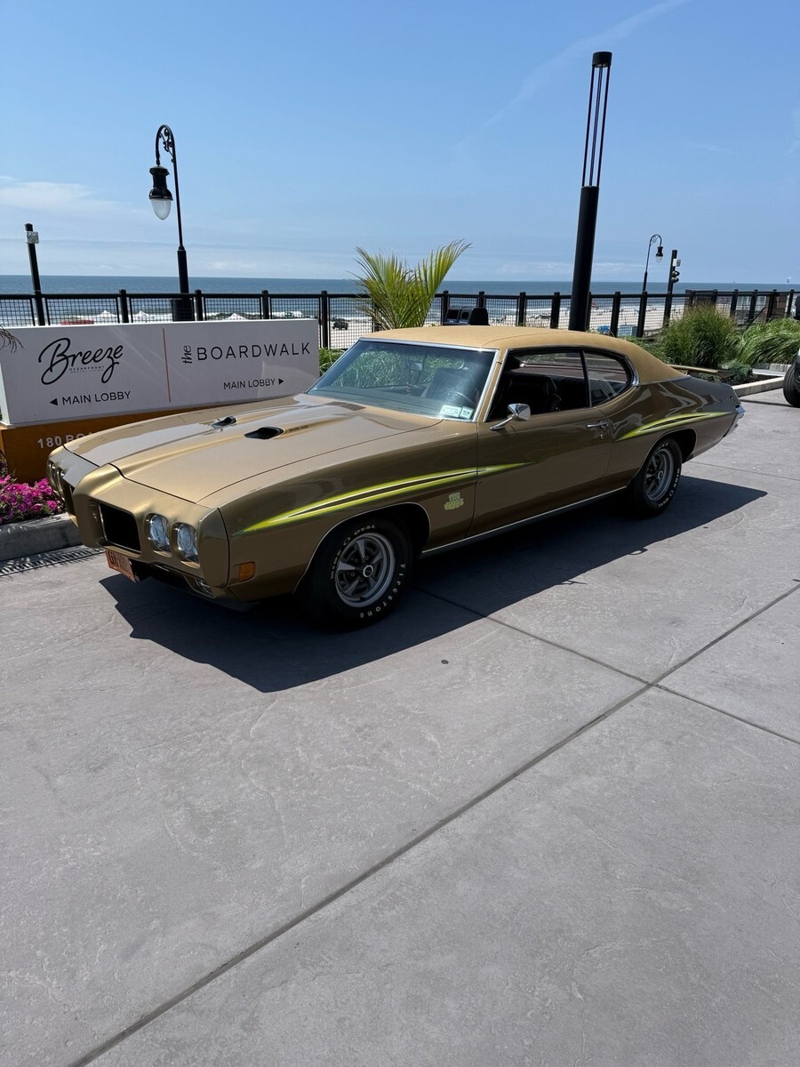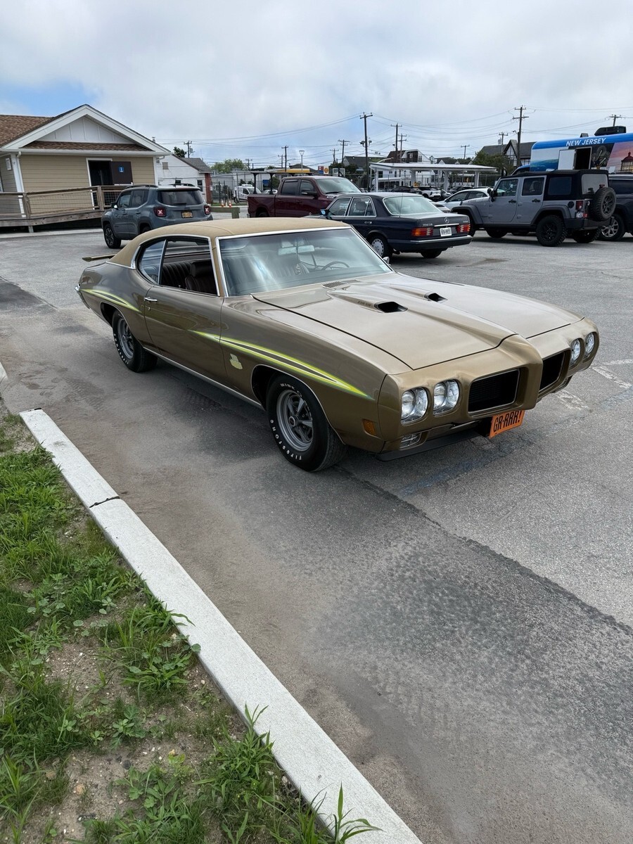 Original, numbers matching 1970 GTO Judge. The car has, what I believe to be 40K original miles, and drives straight and strong through all 4 gears. The car presents exactly the way It was built in September, 1969 making it one of the earlier 70 Judges produced. Nothing has been added or deleted over its nearly 56 year lifespan. The color is Granada Gold with a cream factory vinyl top and brown interior. The interior is original and in amazing shape.