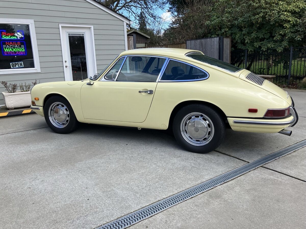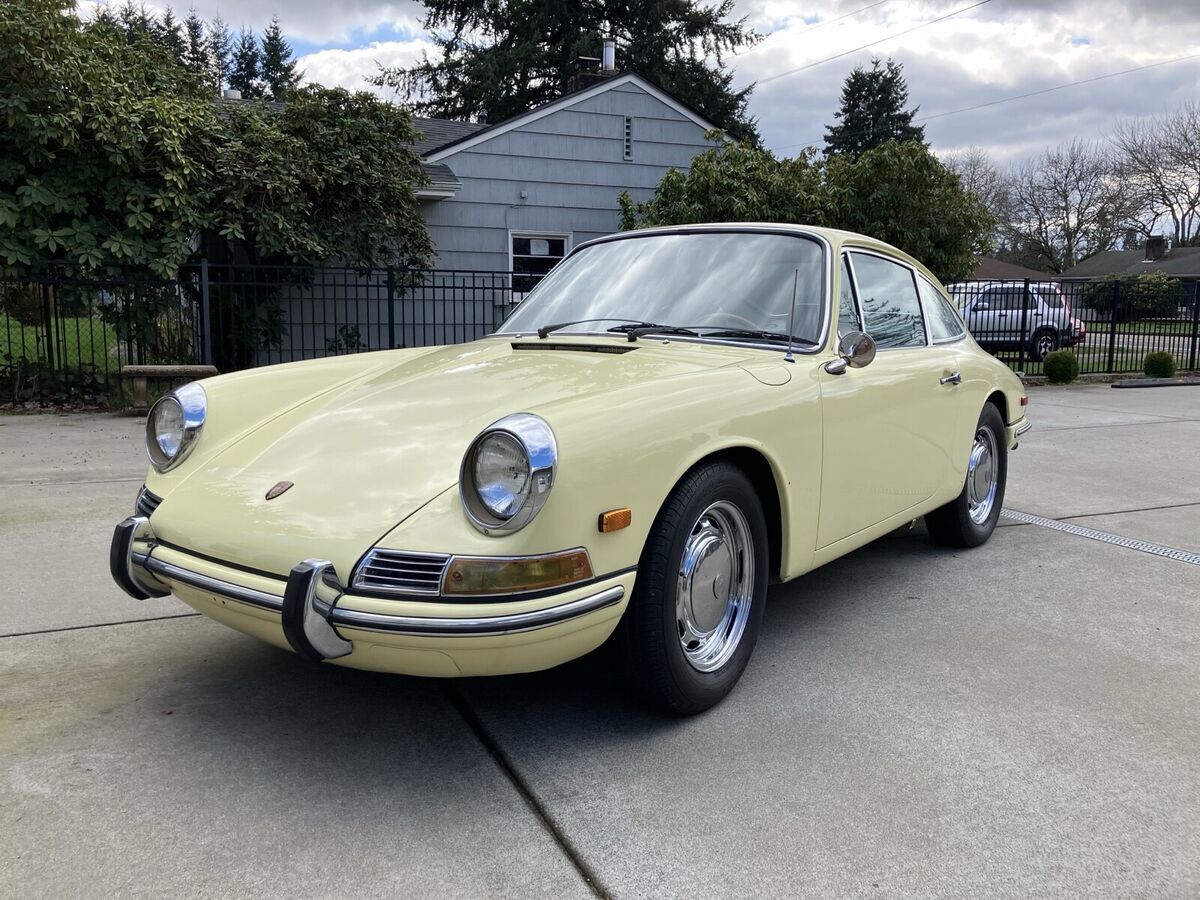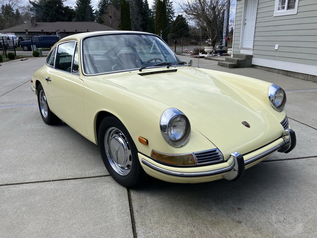This Porsche has lived in Southern California unti I bought it last year now in Washington state. The previous owner completed a spectacular glass out respray in Its lovely Champagne Yellow color (original Sand Beige) Reassembled with all new rubber window and door seals. Zero rust on this car. The matching motor and transmission was rebuilt 4,000 miles ago as well as the Weber carburetor rebuild with documented receipts. The car runs and drives amazing. Shifting is flawless with no grinding or popping out of gear. The clutch feels great. The interior was also refreshed at that time with new dash and reupholstered front seats. All electronics work flawlessly expect the clock. The original wood steering wheel was optioned when new from the factory and remains on the car to this day. This car has the Kardex showing matching motor number and transmission and imported to Culver City California.