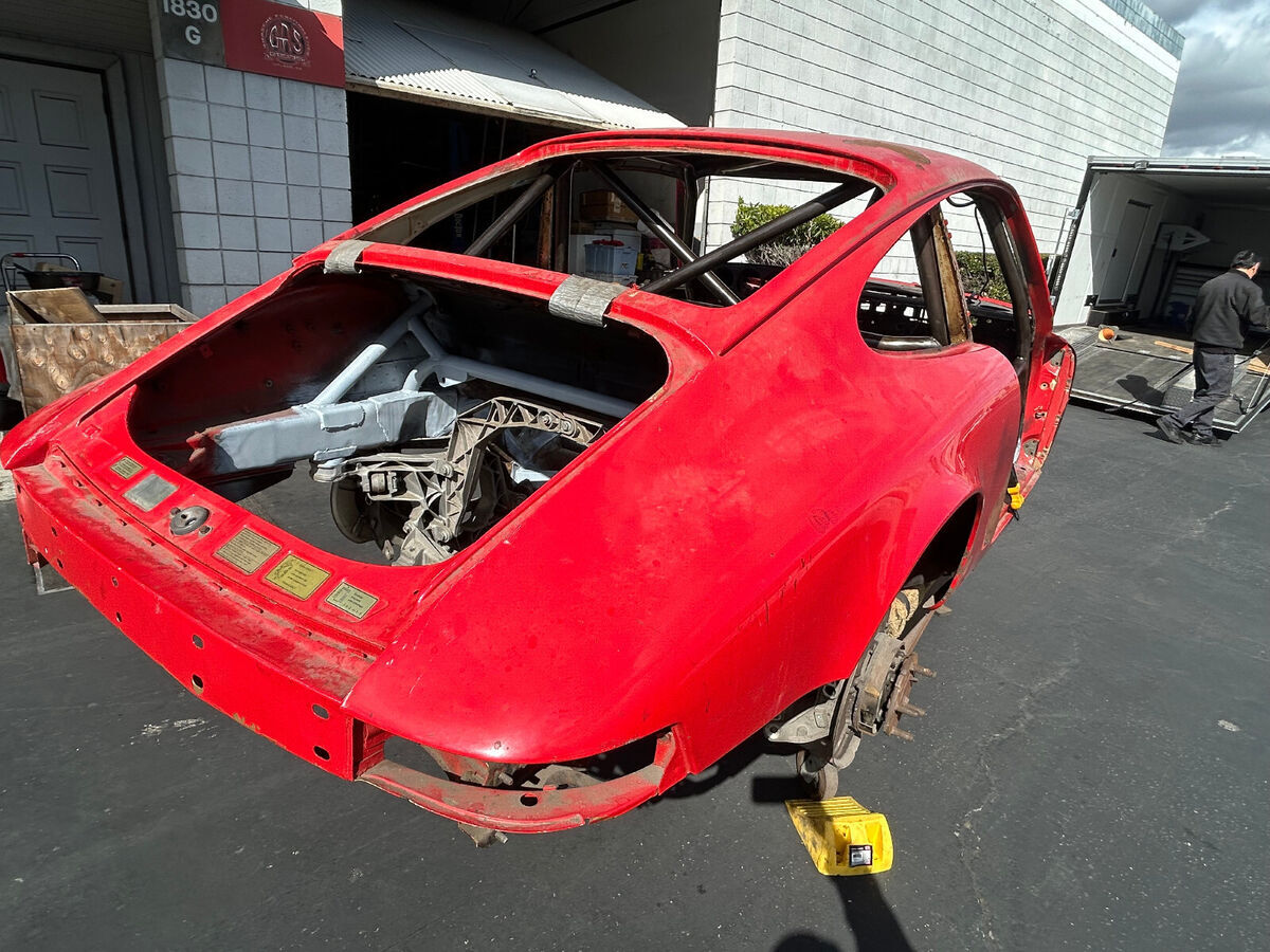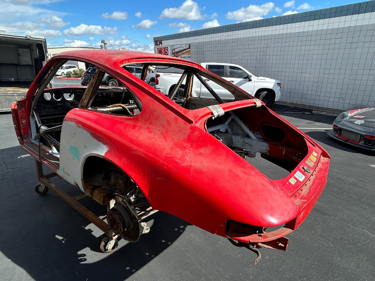The car original panels are in very nice rust free condition, with no crash damage apparent anywhere. There is a little surface rust from atmosphere on a few fabricated areas where car was stored indoors for many years. Tubes are mostly WD-40d to keep from surface rusting. It would make an ideal highly competitive racecar chassis as we have built and raced several copies outperform many of Porsche Motorsports latest Gt3 offerings nationally. or extreme aircooled (or LS?)Hotrod with body style of your choice. It comes with a fiberglass 3.8 tail base, and a fiberglass hood, a pair of 993 axle, and new Bilstien custom Valved rear coil over shocks made to suit. There are no front struts, but the rest of front original suspension is there as shown. It does not come with the rolling cart but we can assist transferring it to 2-3 small carts you bring to make loadable. The chassis weighs approximately 450 lbs fully caged as shown. at extra cost.All sound deadening and most undercoating inside has been removed.Does not include the G50 -01 transmission but one is available.We also can assist w sourcing a High Performance engine or bodywork set-up as desired. A 930 Turbo engine was planned. The wire harness (original) is mostly intact 90-95% and needs a splice in the rear where accidentally cut near tunnel, approx 8-10 wires.Car will be sold on a Bill of Sale, and has been in our possession for approx 24 years(saved as spare tub) .No smog requirement in Calif since a 1974 VIN.Buyer is responsible for Sales Tax if a California resident where applicable.Pick up Only after cash payment or wire transfer. We can assist w shipping after you choose your transporter.