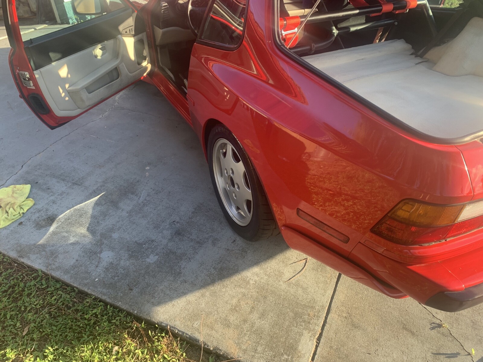 UP for sale is an excellent 1989 Porsche 944 S2 with 120,233 miles on it (still drive it so mileage may vary).The Paint is ORIGINAL (don’t paint them like they used to).EVERYTHING on this car is FACTORY, EXCEPT the KENWOOD RADIO w/SIRIUS and a few modifications (lowered,roll bar, racing seats).EVERYTHING on this VEHICLE WORKS 100% except for the few notations below that I will explain.STORY:Although it says I am the 3rd owner, I consider myself part of the 2nd owner. My old boss and CEO, who I knew or over 25 years, used to RACE 944 s2’s. If you know, you know, that the 3.0 4 cylinder will beat a C4 Corvette. He and I rode motorcycles together (all brands), raced Porsche's and was the best boss I ever had.Anyhow, sadly, he suddenly passed away in a plane crash a few years ago (he was pilot as well) and he ‘willed’ this Porsche to me. His widow sent me the paperwork she could find, so I have some, but not too much. I know it has a new timing belt within the last 15-20k miles on it. Brakes, clutch, Rotors, tires, etc....under 10k miles, as said, needs a fluid change. It has NEVER been raced on a track, but it was starting to be setup to BE raced. It was lowered and a roll cage installed. IT HAS NEVER BEEN ON A TRACK. He died before we could complete it and race it. This roll bar is a BOLT on roll bar.With any car this age, what I do have is, the paperwork that SAYS the AC was fixed 3 times, well, guess what? It still leaks somewhere...I have to recharge it every now and then, and then it works for 6+ months, I have put DYE in it, but alas....still leaking somewhere.... It HAS been converted to r134a. But, compressor etc is all fine, every time I recharge, it works fine again for the 6+ months.It does NOT leak ANY FLUIDS whatsoever and, I honestly would get in it personally, and drive it from Florida to California and not be worried.It is generally stored in my climate controlled garage, and I try and drive it twice a month for 10-100 miles so the mileage WILL be HIGHER than listed. Whether or not I drive it, I have my detail guy detail it once a month and I have the oil changed.I, unexpectedly had to go out of country for a few months, and when I came back, she started right up, but...the clutch was on the floor...after priming and pumping, and driving it, I ended up replacing the master and slave cylinders and adjusted the clutch and pedal and I moved the Slave bleeder screw up to inside the engine bay.The speakers NEED to be replaced! Everything in this Porsche is OEM (including the AMP and speakers from 1989), the only thing newer than that is the Kenwood RADIO with XM.I do oil changes every 3 months with MOA by BG, driven or not, if you know, you know.....Carpet is in great shape, so is the dash, interior, exterior, etc...sunroof works PERFECTLY to open close or remove (just know, if you are a Porsche enthusiast-you have to KNOW how to operate it correctly).It currently has RECARO racing seats in it, again, we were setting it up to race...But, I have the original, LEATHER seats included. Leather on both the FRONT and rear seats (folded now due to roll bar) are in GREAT condition. And NO, the Original leather seats will NOT fit in the back hatch/seat for you to drive away with them if you choose to pick it up and drive it home.....I've tried....Airbag etc lights on the dash are on, because....well, it has the racing seats in it with no plugs, however, when the original seats are plugged back in, those AirBag lights will go off.It has NO RUST at ALL! It does have CLEAR UV window tinting as well.I was given this Porsche because I care for ALL my vehicles and maintain them flawlessly. I want this nice and original Porsche 944 S2 to go to someone who will care for it, and enjoy it, my son wants it so badly...If it doesn't sell, he will definitely get it one day.For being 36 years old, this car, is, in EXCELLENT shape. No shakes or shimmies at 100mph on the interstate, corners fine, rides smooth, brakes work, etc...only the AC flaw is still there.I get lots of honks and conversations at gas stations on the car, if you appreciate old classic Porsche's, this one will turn heads, and it's mostly STOCK!Look at all the phots and the engine video.USED VEHICLE AND IS SOLD AS IS!!I will try and answer any questions you may have, if you need additional pictures and it's allowed, I will take them for you. I can only tell you what I know, my experiences driving this fantastic 944 S2, be assured, I am honest, but, only to the point of what I know. If I can not answer a question for you, I will be honest and say I don't know.Cheers!