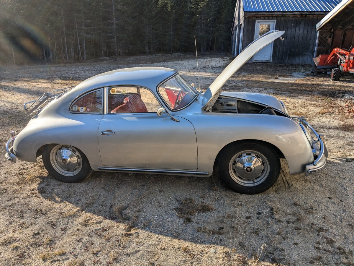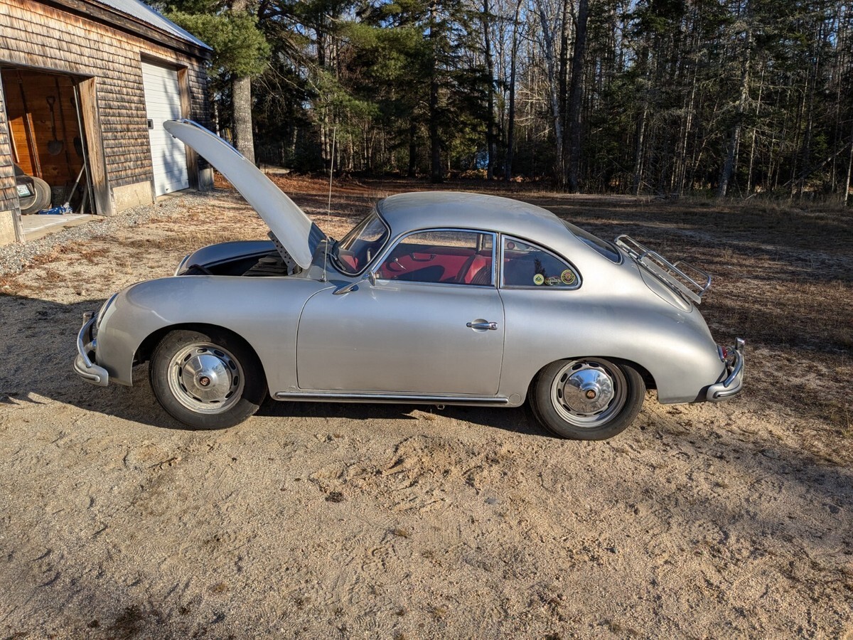 FRESH OUT OF LONG-TERM STORAGE IN A CLIMATE-CONTROLLED PERSONAL COLLECTION, THIS IS A MATCHING NUMBERS, KARDEX VERIFIED EXAMPLE OF THE RARE 1959 PORSCHE 356A 1600 SUPER. 78k MILES ON ODOMETER (TMU). REUTTER KAROSSERIE BODY SERIAL #106662, ENGINE # P*83344*. PAINT CODE #608 (SILVER) WITH ONE OLDER REPAINT UNDER PREVIOUS OWNERSHIP (IN THE 1970S) WHICH DOES SHOW SOME BLEMISHES, BUT STILL PRESENTS VERY NICELY. ALL GLASS AND TRIM ARE IN VERY GOOD SHAPE. RED UPHOLSTERY LOOKS GOOD OVERALL, BELIEVED TO HAVE BEEN RE-DONE IN THE 70S AT THE SAME TIME AS THE PAINT. DRIVERS SEAT HAS A SPLIT IN THE BACK REST (SEE PHOTO). DIALS, GAUGES, KNOBS, BEZELS ARE ALL UNRESTORED AND ORIGINAL. HEUER "MONTE CARLO" STOPWATCH, AND THE HEUER "MASTER-TIME" CLOC, AND THE FIRE EXTINGUISHER AND AUXILIARY HORN BUTTON ON THE STEERING COLUMN ARE THE ONLY VARIANCES FROM STOCK. (HORN RING IS BROKEN).THIS CAR WAS VERY LOVINGLY OWNED AND OPERATED HERE IN NEW ENGLAND, AND PARTICIPATED IN CLUB EVENTS AND RALLIES. FLOORS AND FRAME ARE WONDERFULLY PRESERVED BY OLD SCHOOL UNDERCOATING TREATMENT. ( I HAD TO USE A WIRE BRUSH TO EXPOSE THE TRANSMISSION AND GEARBOX NUMBERS).PLEASE NOTE THAT I DIDN'T WASH OR EVEN DUST THIS CAR WHEN IT CAME OUT OF THE STORAGE BUILDING. THE CAR COULD USE A GOOD DETAILING, BUT I DIDN'T WANT TO DO ANYTHING TO MESS WITH ITS "BARN FIND" QUALITY. THAT CAN BE DONE AT THE DISCRETION OF THE NEXT OWNER. NOTHING HAS BEEN DONE COSMETICALLY TO THIS CAR FOR OVER 44 YEARS. IT CAN BE ENJOYED AS-IS OR BEAUTIFIED. I LIKE IT THE WAY IT IS....I HAVE MORE PHOTOS AND VIDEOS TO SHARE IF INTERESTED, AND AM HAPPY TO WORK WITH ANY TRANSPORT COMPANY YOU HIRE.THIS VEHICLE HAS BEEN PROFESSIONALLY APPRAISED AND VERIFIED AS A TRUE NUMBERS-MATCHING SUPER 1600. ITS A GREAT LITTLE CAR.PLEASE DO NOT MAKE A DEAL ON THIS CAR UNTIL YOU HAVE ALL THE FUNDS IN PLACE.THANK YOU FOR LOOKING!!