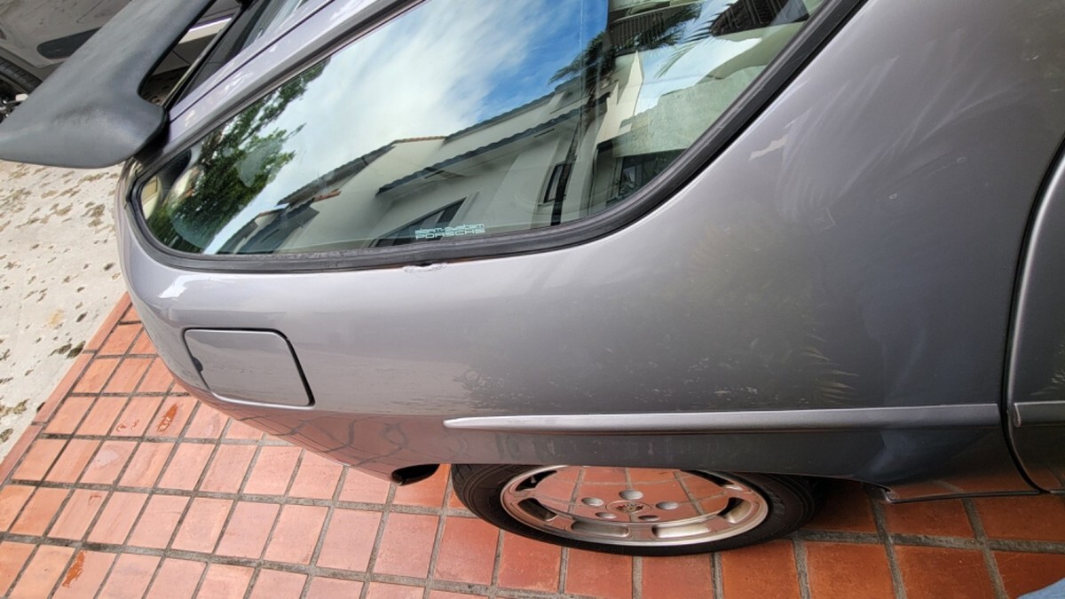 Collectors will recognize a small chip area is visible and being managed in a lower spot of the passenger, rear quarter panel window (pictured). (Common design issue with the long-running 928 model.). The area is treated and unmolested.