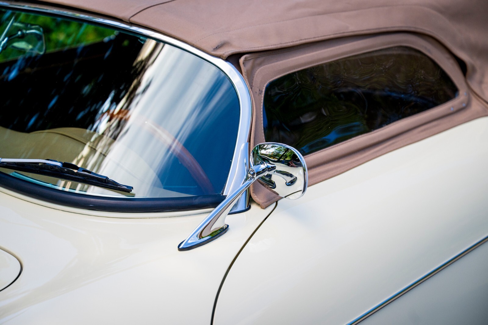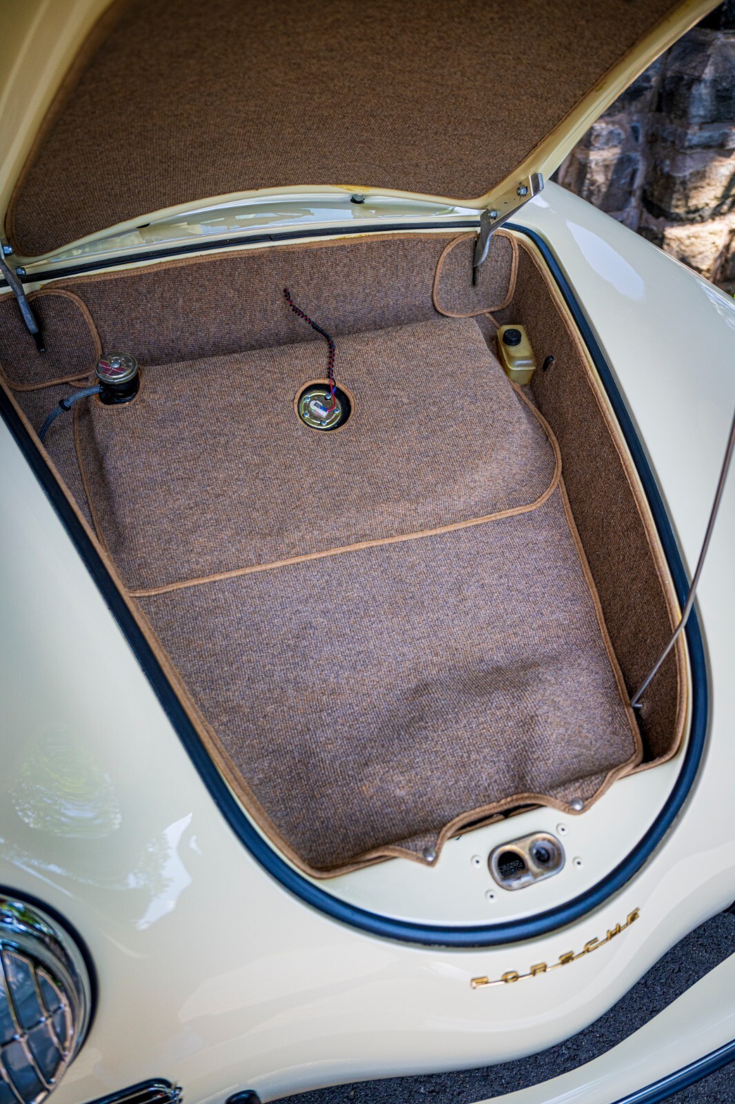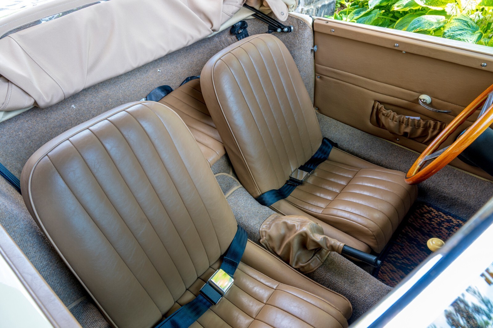 This example is finished in a very period ivory paint over a rich teak tan interior with an authentic Nardi wood steering wheel & Cocoa floor mats. It's powered by an air-cooled 1915cc engine mated to a 4-speed manual gearbox. It has disk brakes in front, tan canvas top & side curtains, plus matching tonneau cover...and luggage rack (with vintage leather luggage for fun!). Note; luggage rack is easily removed/added as owner desires.