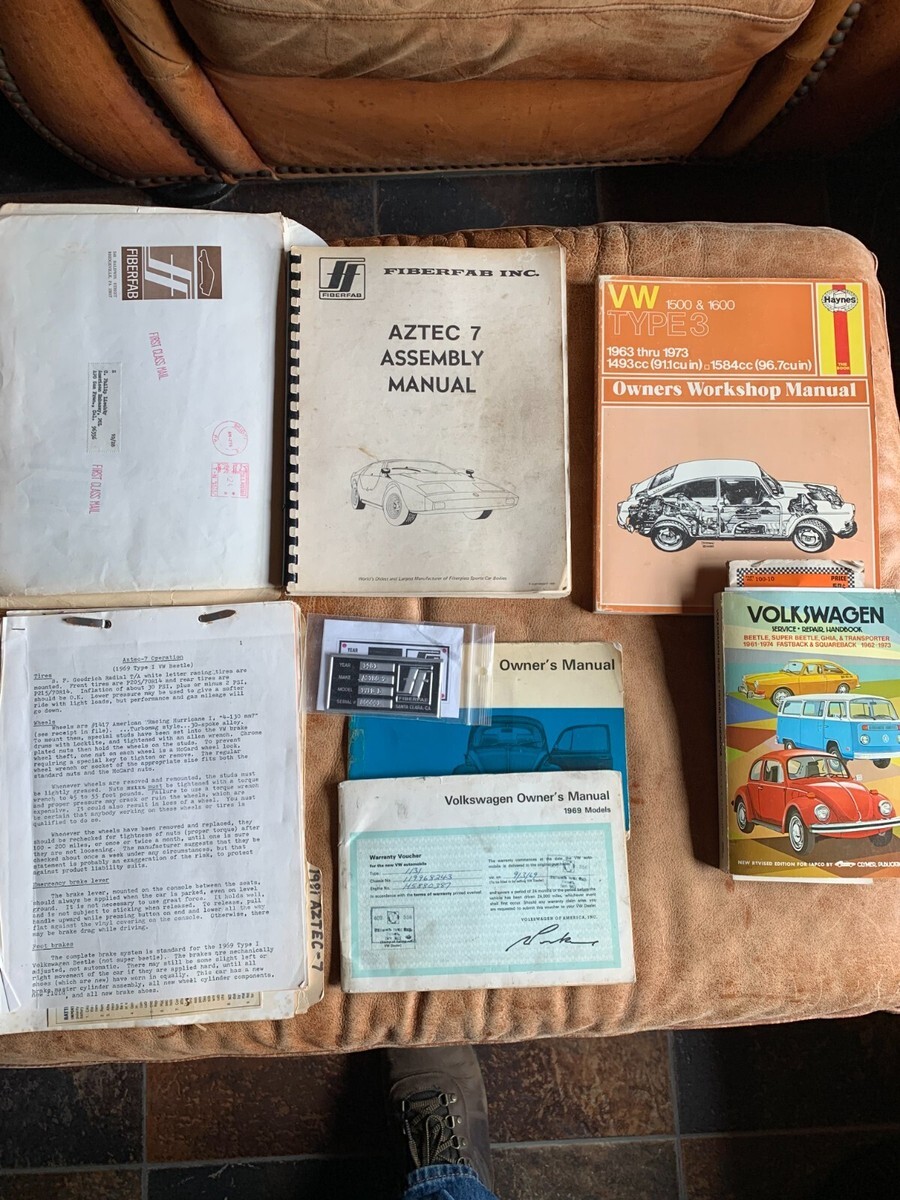 1981 Fiberfab AZTEC 7 on a 1969 VW frame.Vehicle Features:--Gullwing doors.--6686 miles on it.--The car has black rubberized undercoating.--Keyless entry and door poppers.--Kenwood speakers.--Backup sensors.--Wraparound bucket seats.--Wood steering wheel.--Hurst Indy shifter.--American Racing rims.--In 2002 major rebuild (new carburetor, fuel pump, etc.)--In 2005 new California Vehicle Information Label, registration, and smog certificate issued.--Aircraft gauges & drag chute handle in dash added by aircraft enthusiast owner.--Original VW & Fiberfab Aztec manuals and paperwork.--CA title is clear and in my possession.Transaction closes as soon as funds are transferred. Car is sold as-is, buyer pays shipping.Any questions...ask. Inspection by appointment. I'm not a car guy, but I will do the best I can.No reserve. Priced to sell.