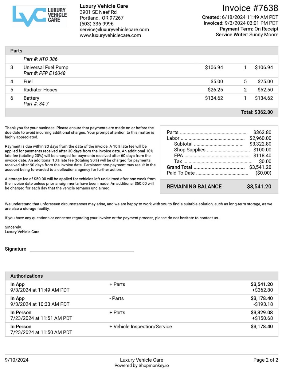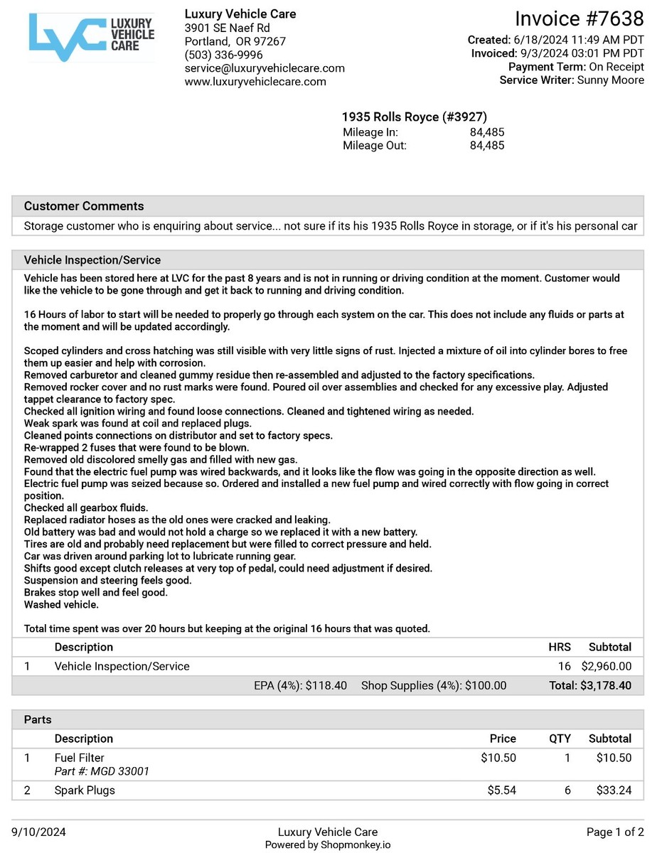 In September 2024, I had the car thoroughly serviced and restored to running condition. As noted in the attached service invoice, the mechanic stated that the suspension, shifting, steering, and braking were all good. The total cost of this service was just over $3,500.Generally, the body and interior are in good condition. There is some damage at the front passenger door that resulted when the shipper forgot to latch the door before it was driven to storage. There are also a couple of dents in the front fender that could probably be easily popped out. The sale price is for the purchase of this car as is. Any and all taxes and fees are the responsibility of the buyer.